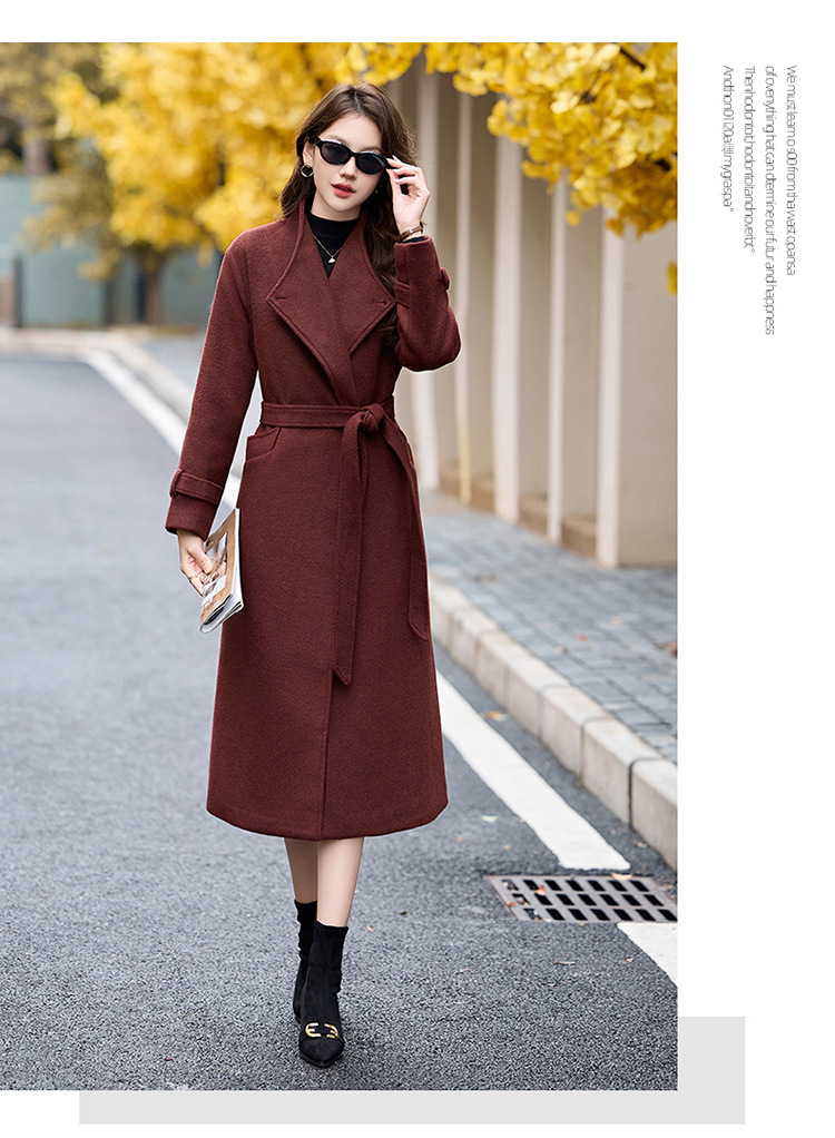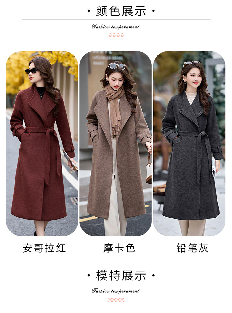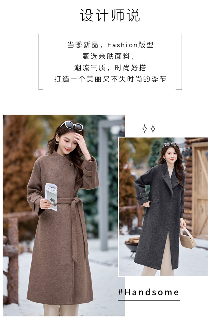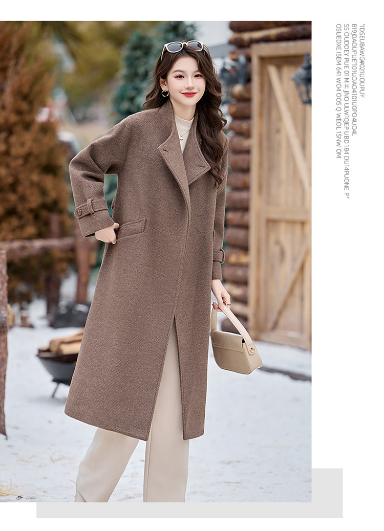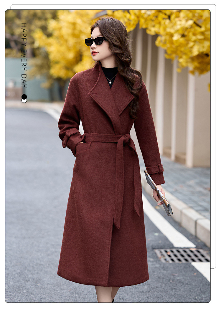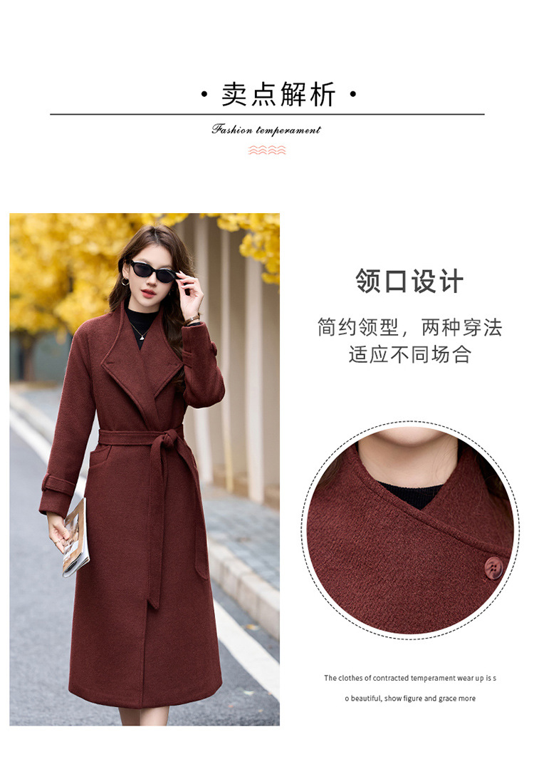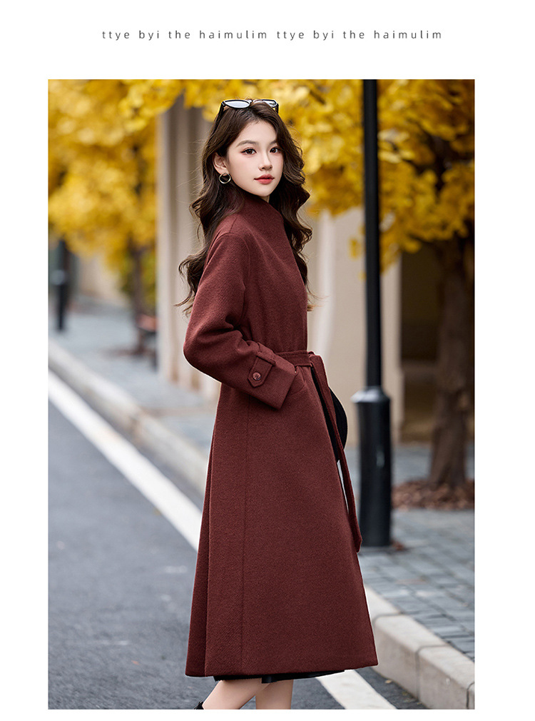 HR HBLJRA1218毛呢大衣外套气质翻领中长款外套