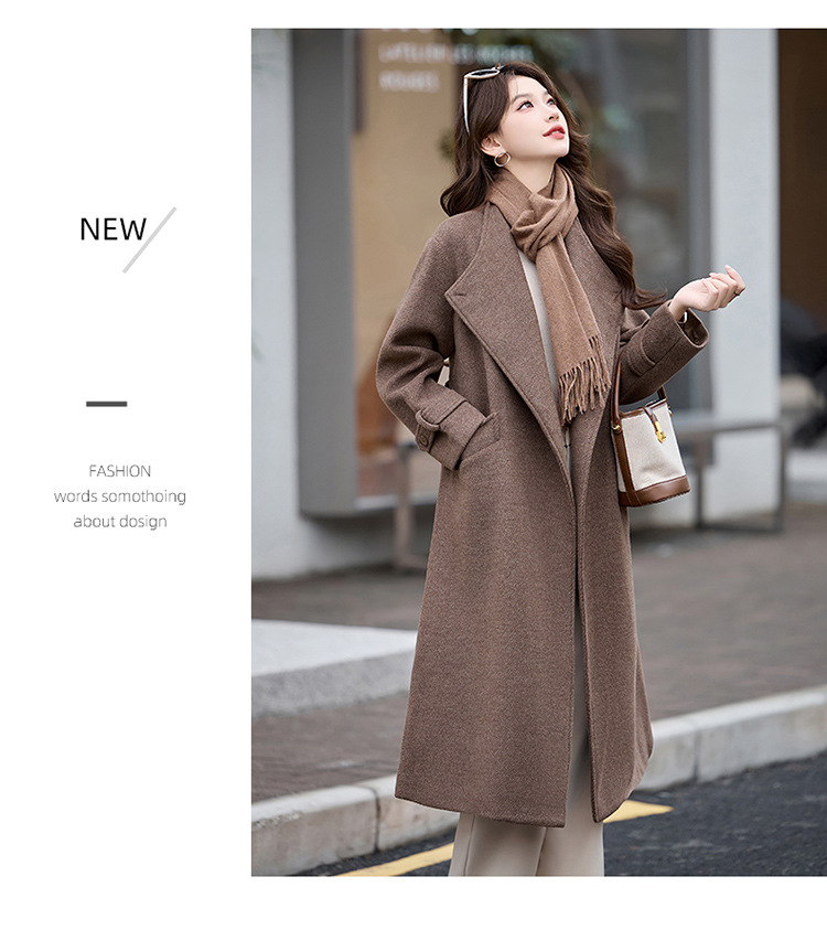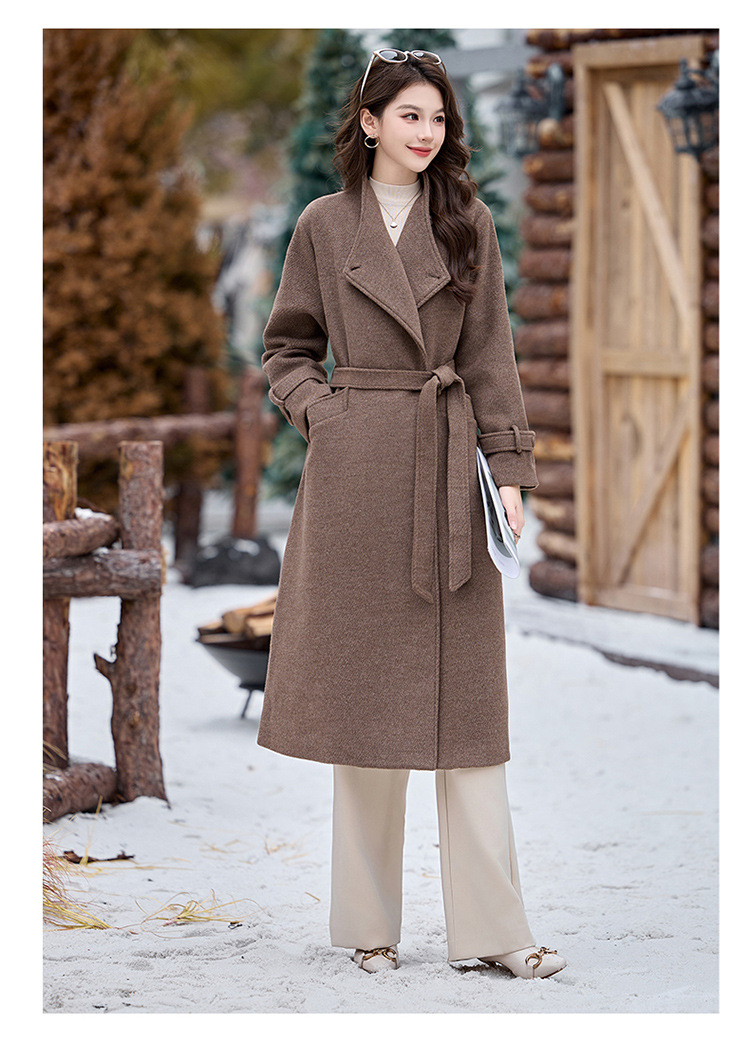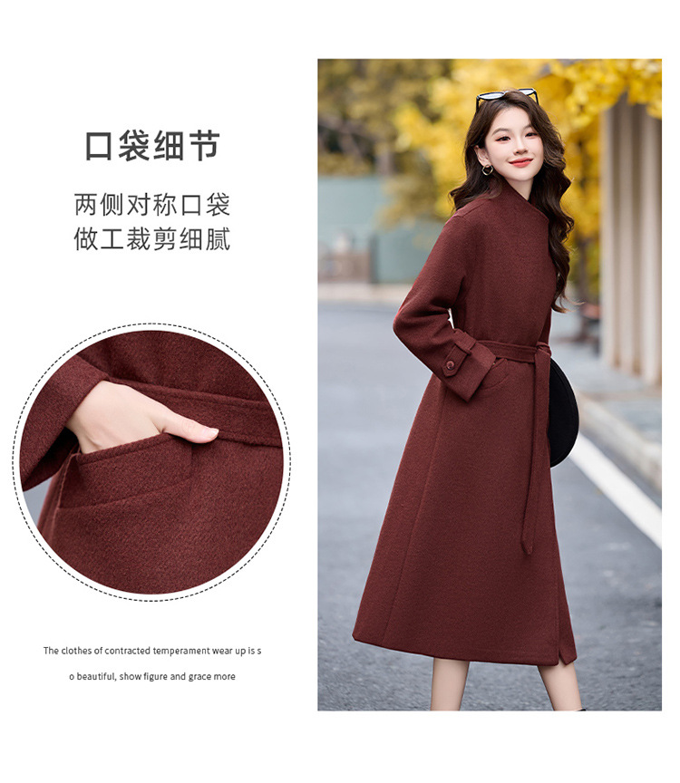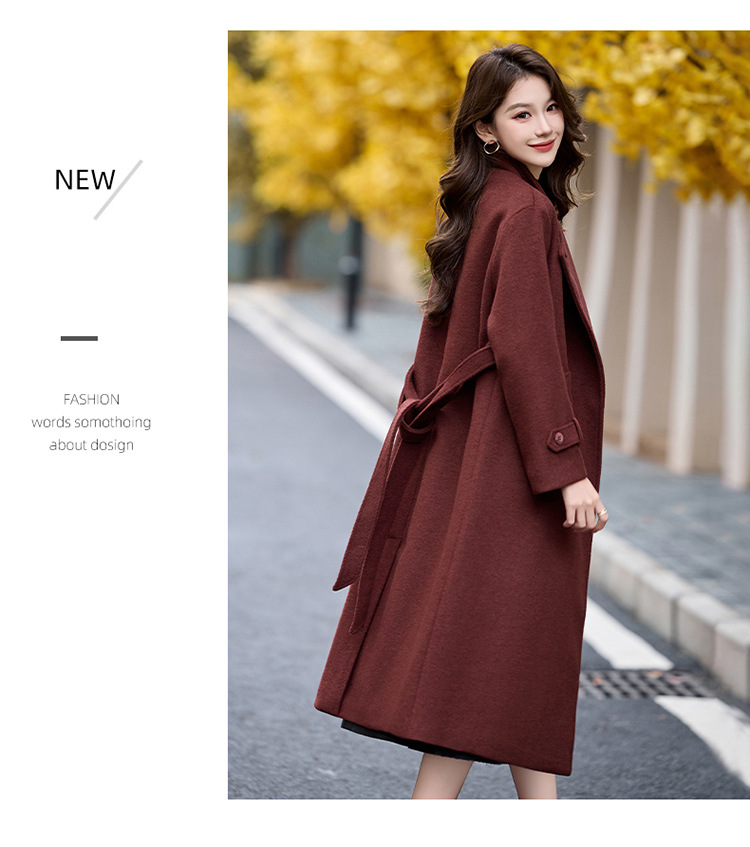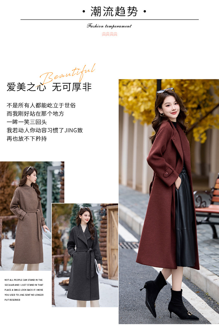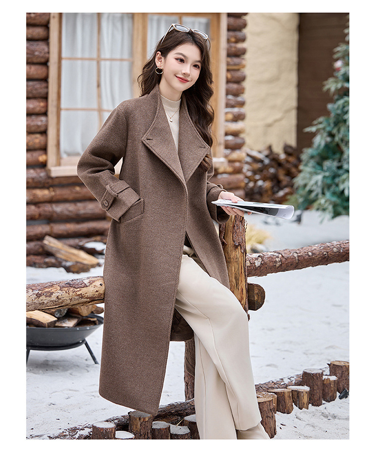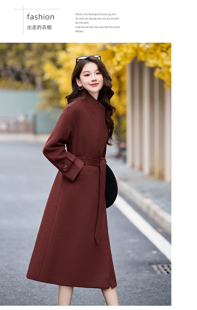 HR HBLJRA1218毛呢大衣外套气质翻领中长款外套