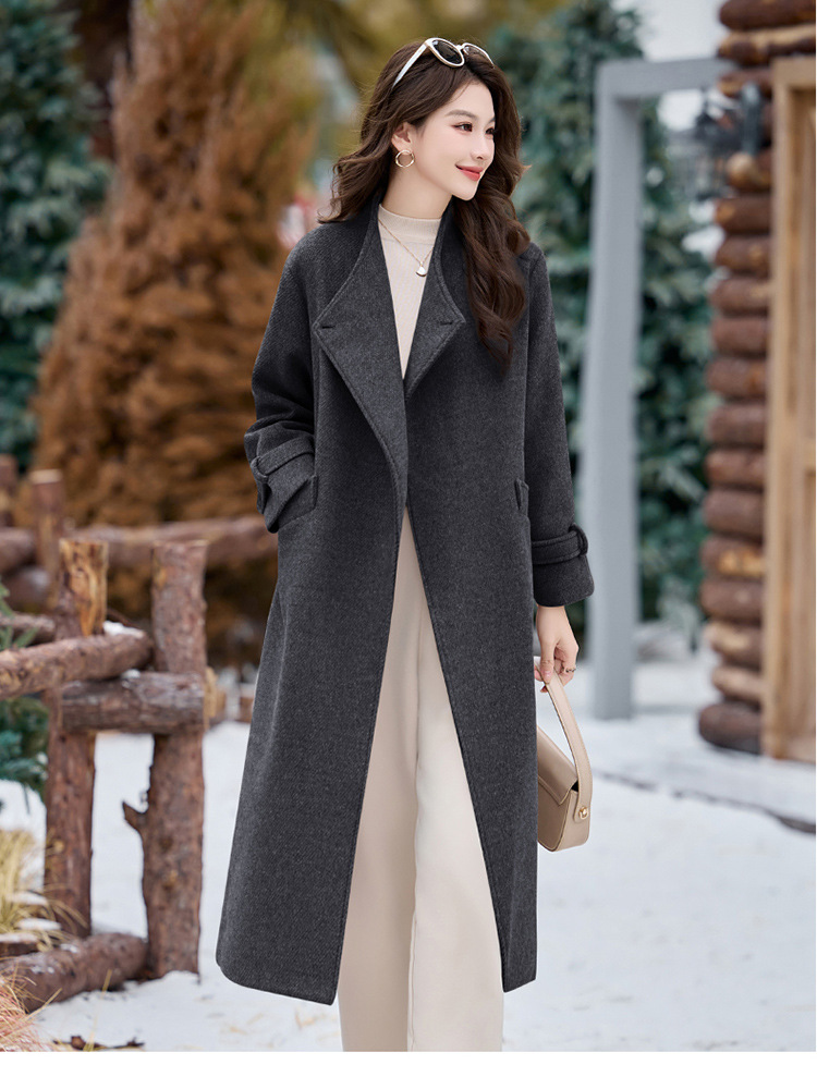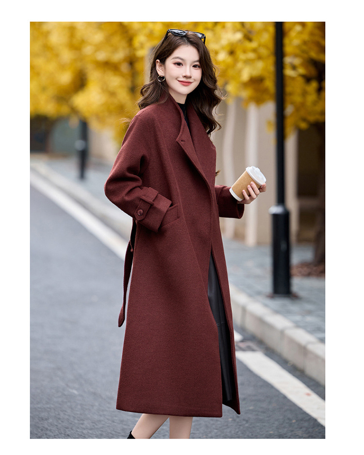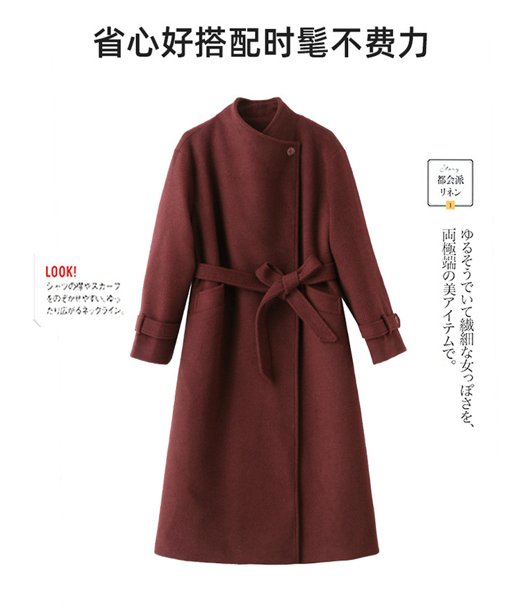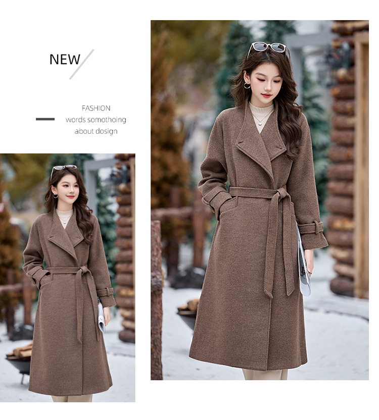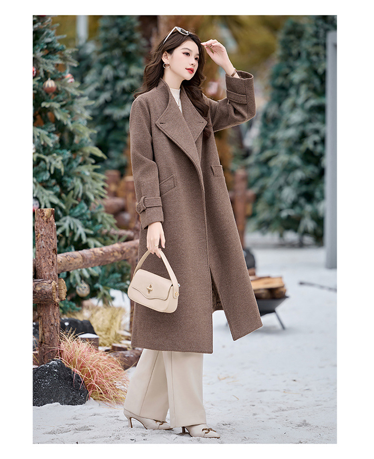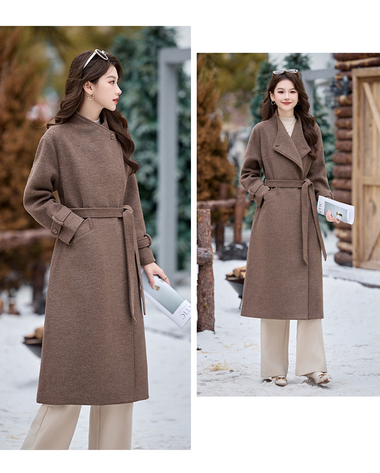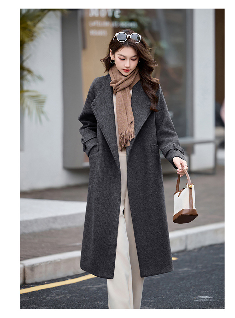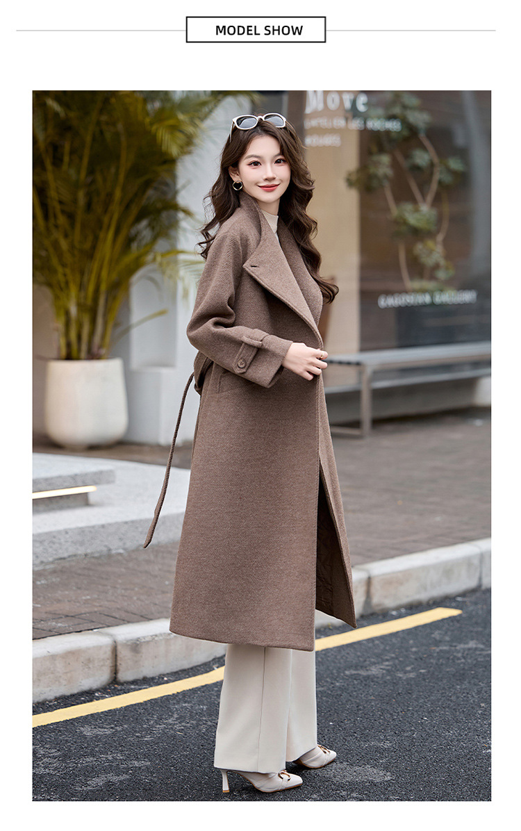 HR HBLJRA1218毛呢大衣外套气质翻领中长款外套
