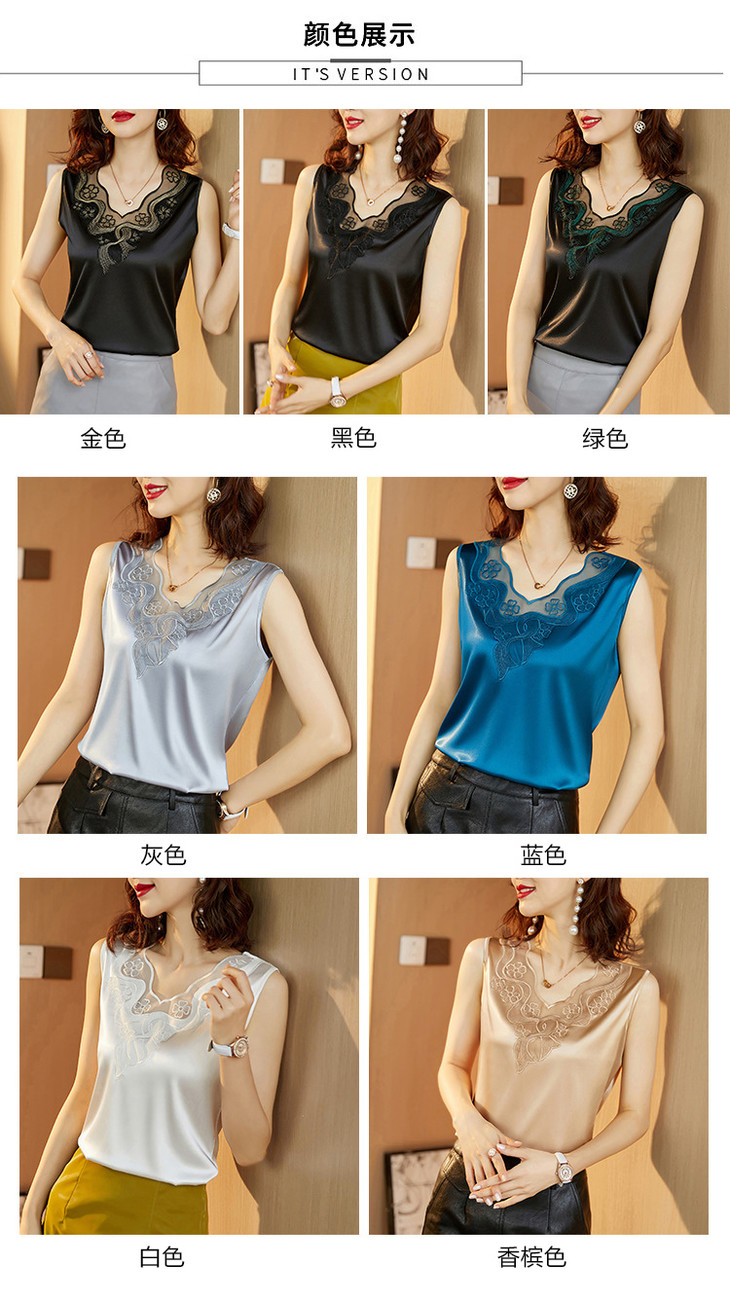 TYL583 2021爆款蕾丝小吊带背心春夏宽松洋气内搭丝绸缎面无袖上衣