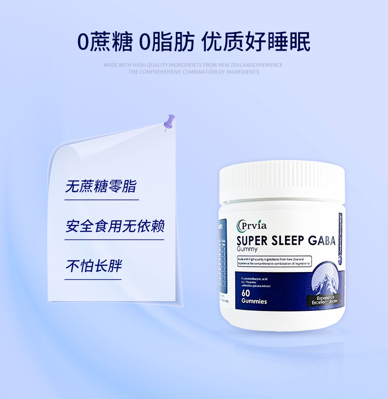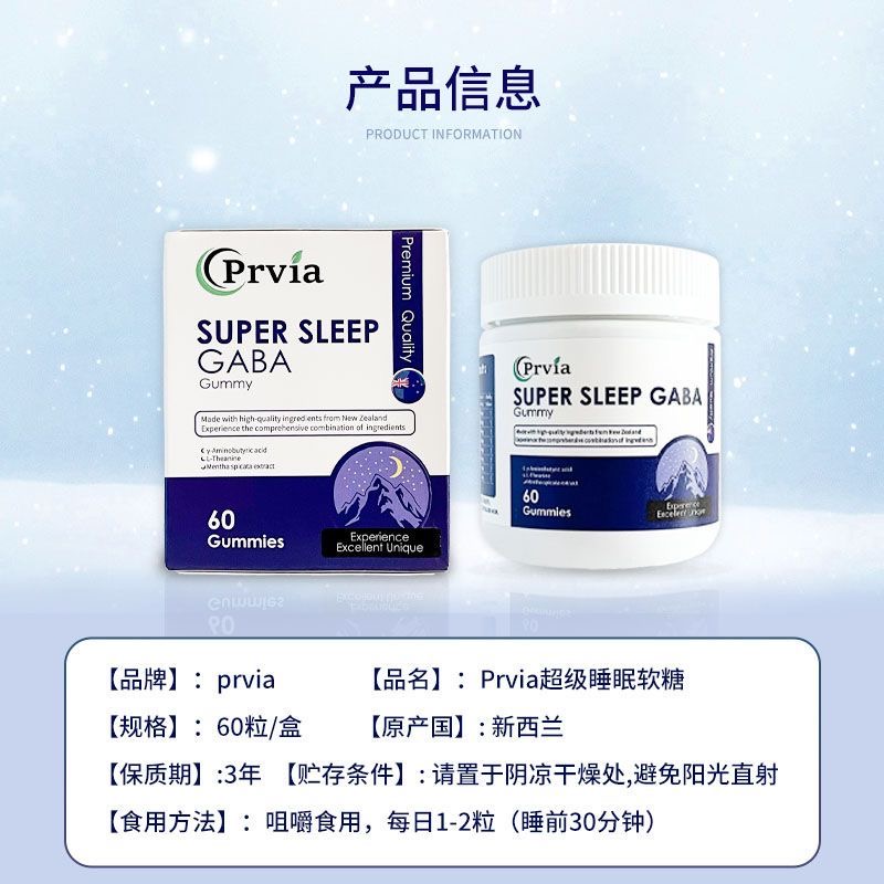 【香港直邮 新西兰进口🇦🇺】Prvia睡眠软糖 帮助快速入睡 改善睡眠质量 每颗含GABA250mg 维生素B6 温和安全无副作用 酸甜Q弹 睡前30分钟吃 60粒/瓶