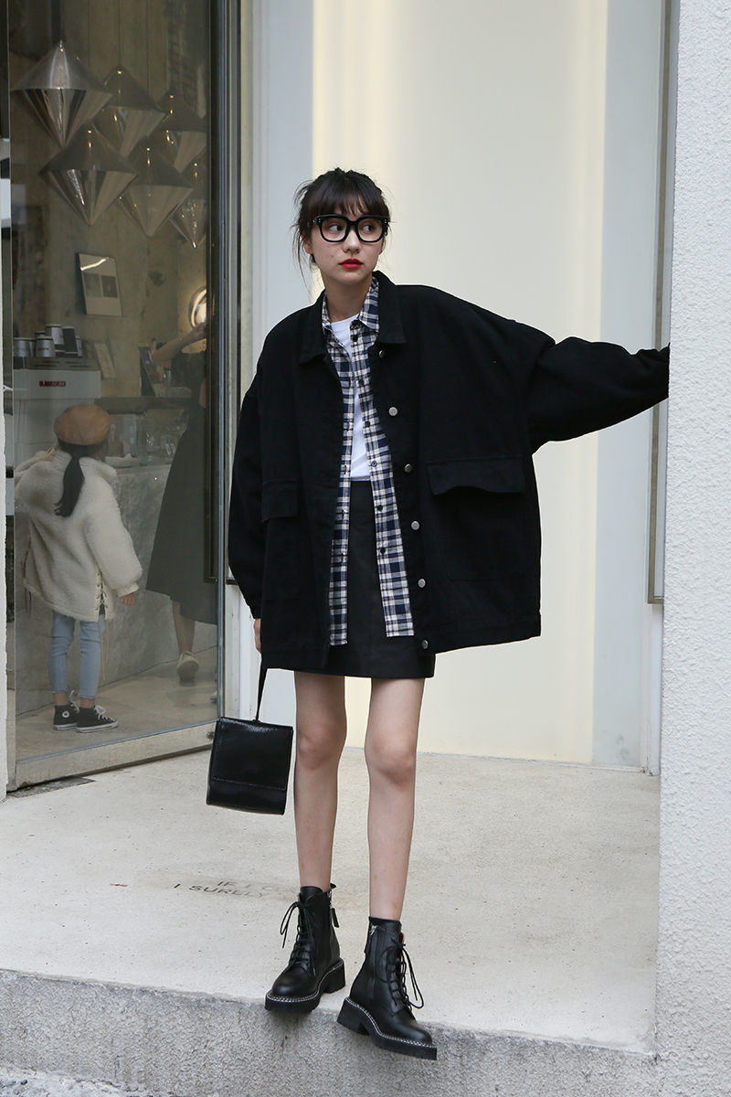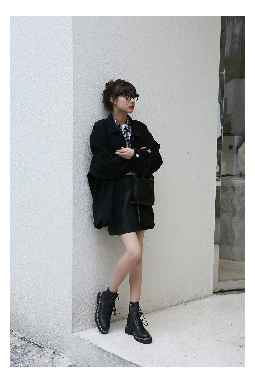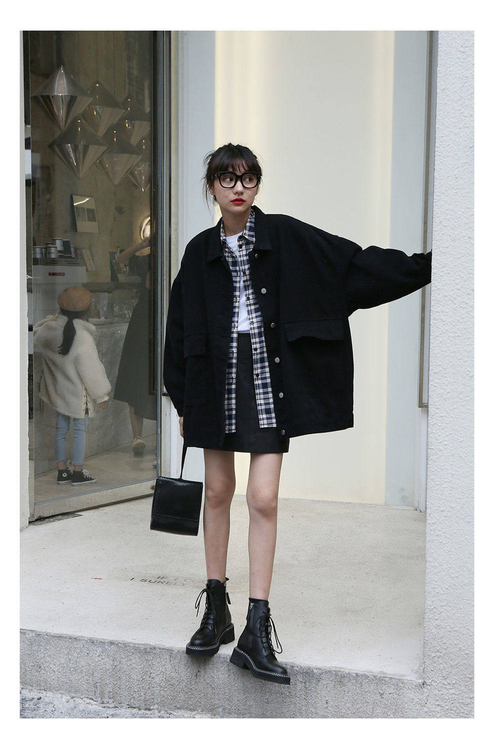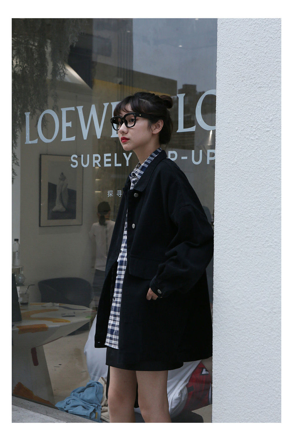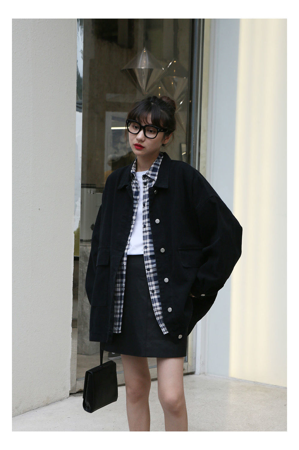 工装外套女潮ins秋季韩版宽松学生百搭复古新款长袖外穿黑色上衣