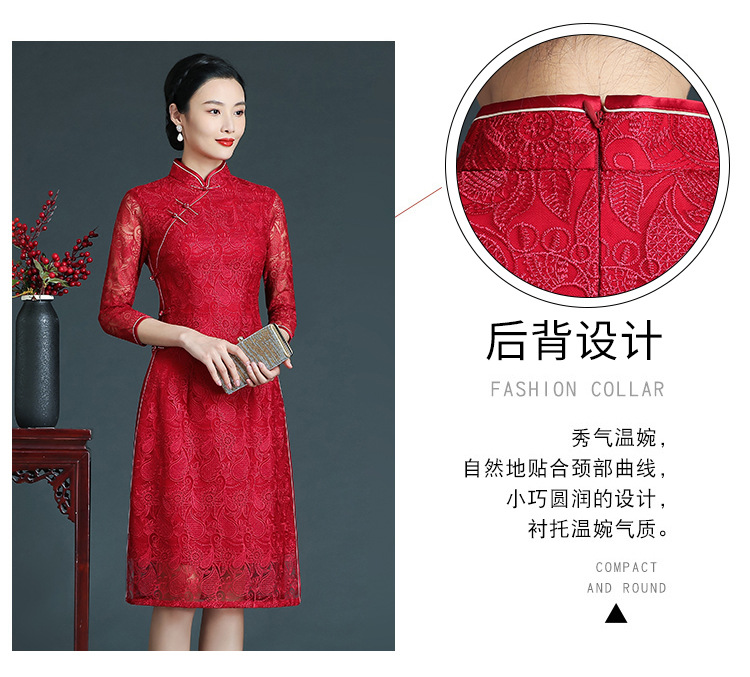 上海旗袍厂ZY-Q5666秋新款复古中国风旗袍改良婚宴喜庆蕾丝连衣裙