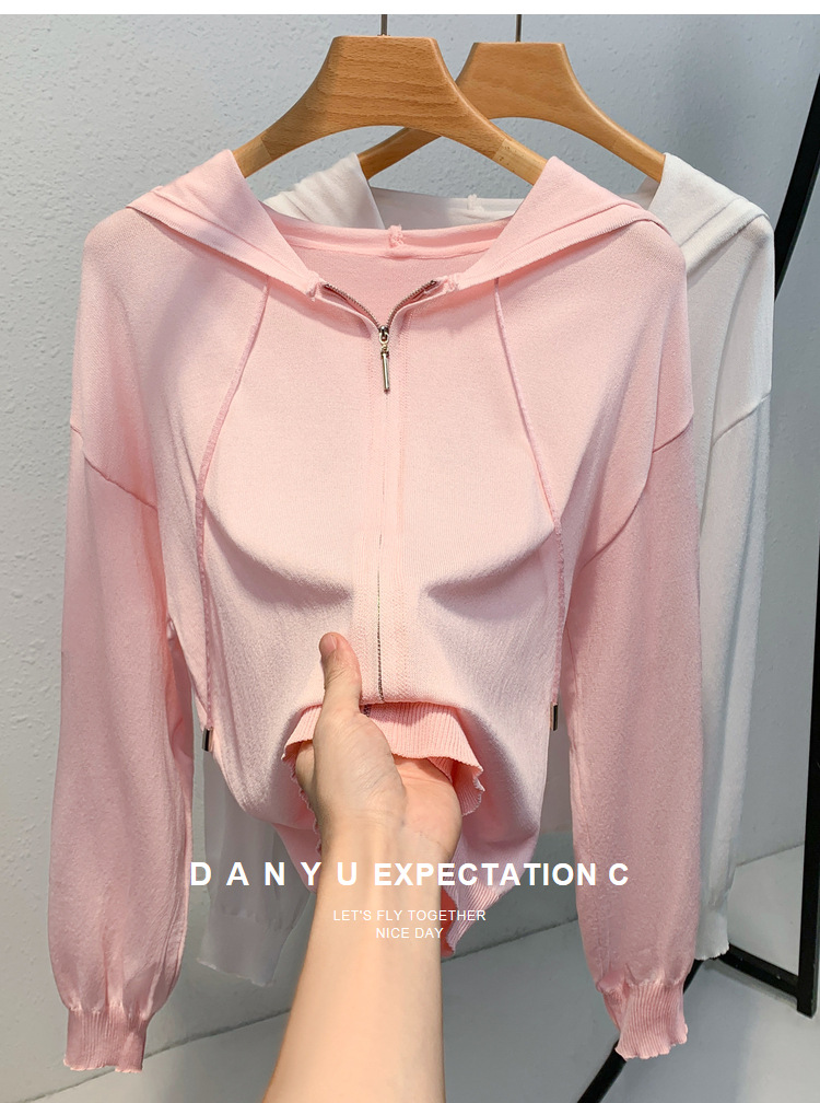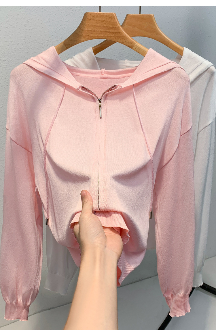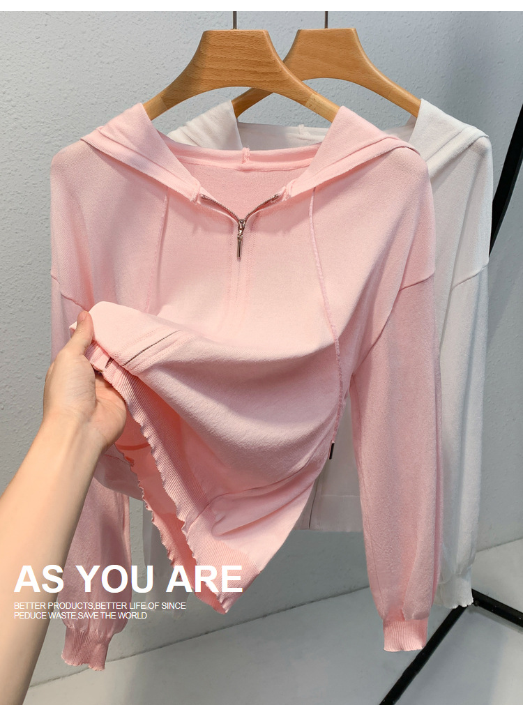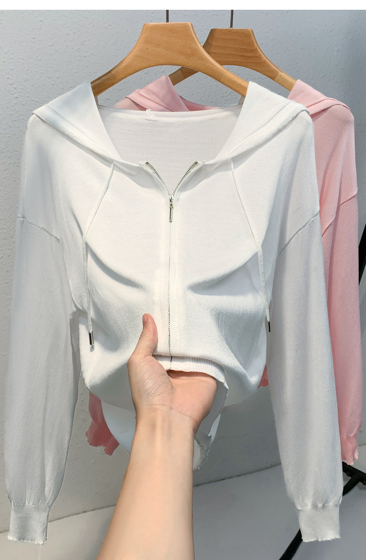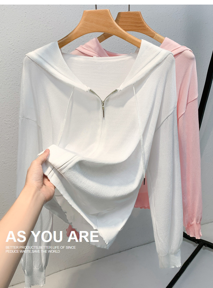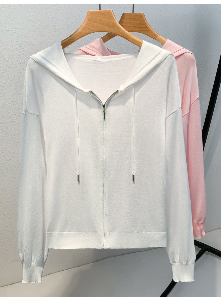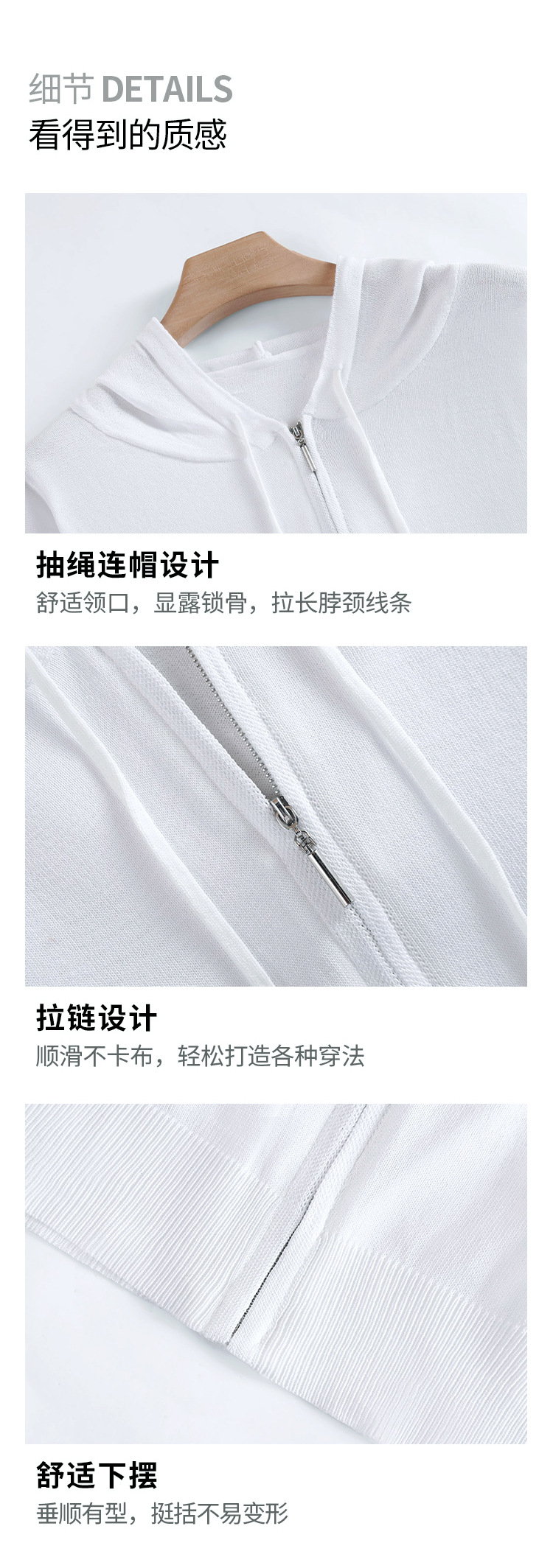 白色连帽卫衣,薄款外搭早秋新款时尚带帽拉链长袖薄款开衫SG-Y3X0767