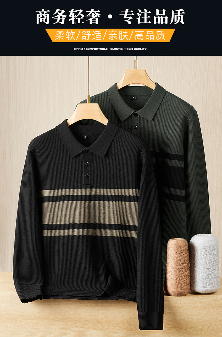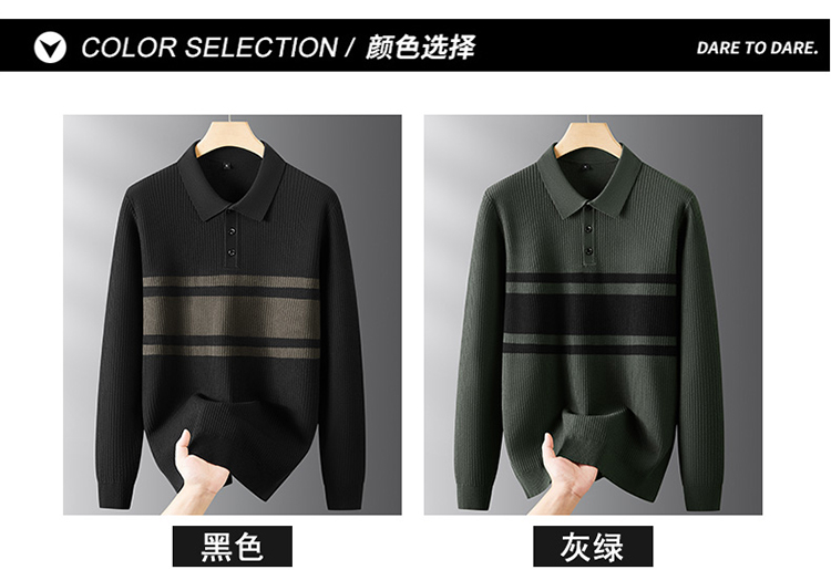 【DPF】大依优型大码男装长袖针织衫翻领毛衣秋季商务休闲简约POLO衫气质轻奢打底衫弹力舒适