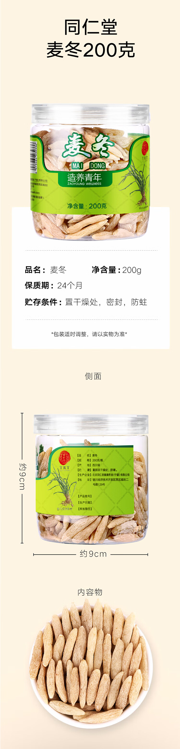 北京同仁堂 麦冬200g 四川原产 饱满大粒 拒绝硫熏 入水膨胀SY