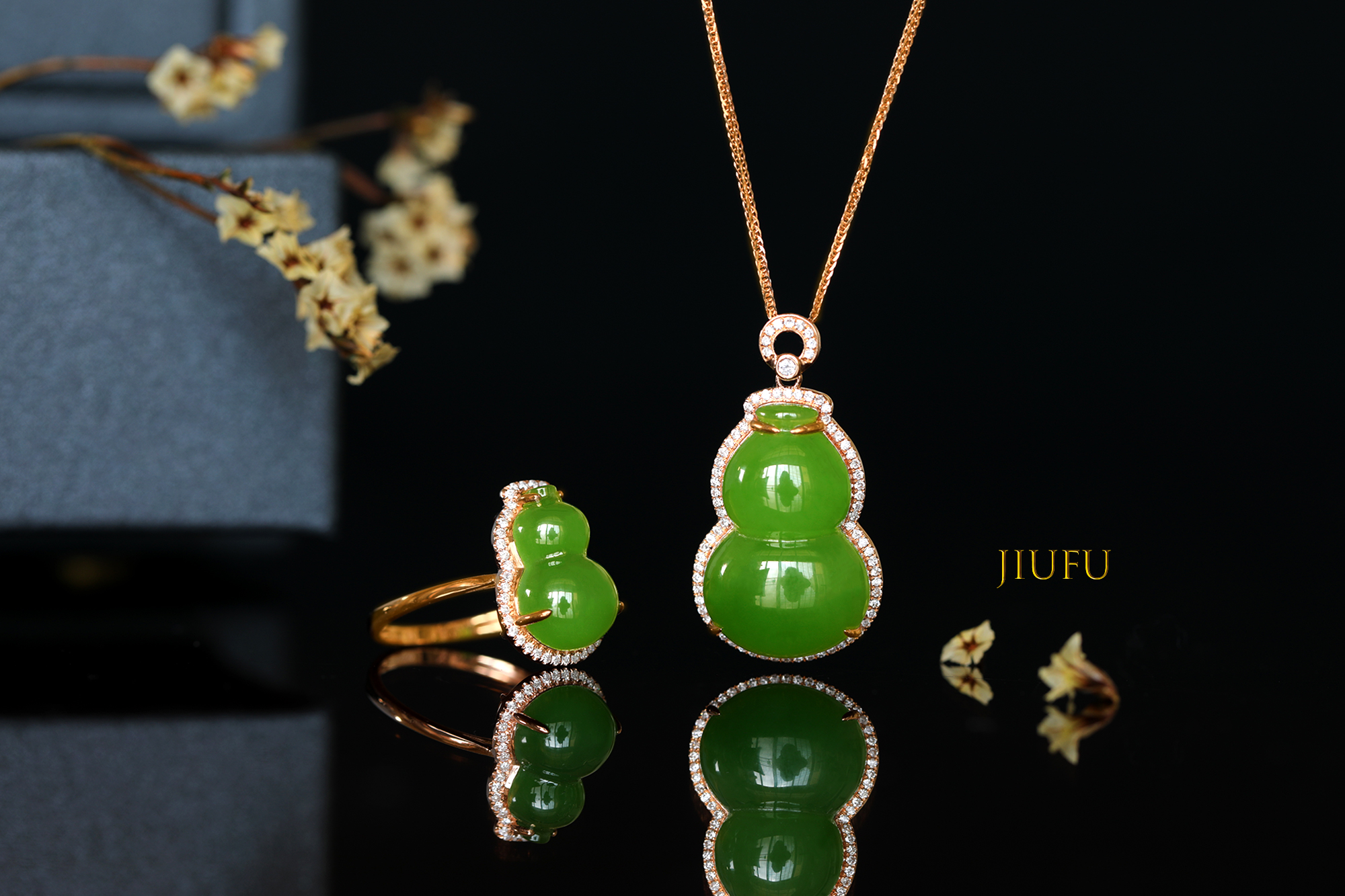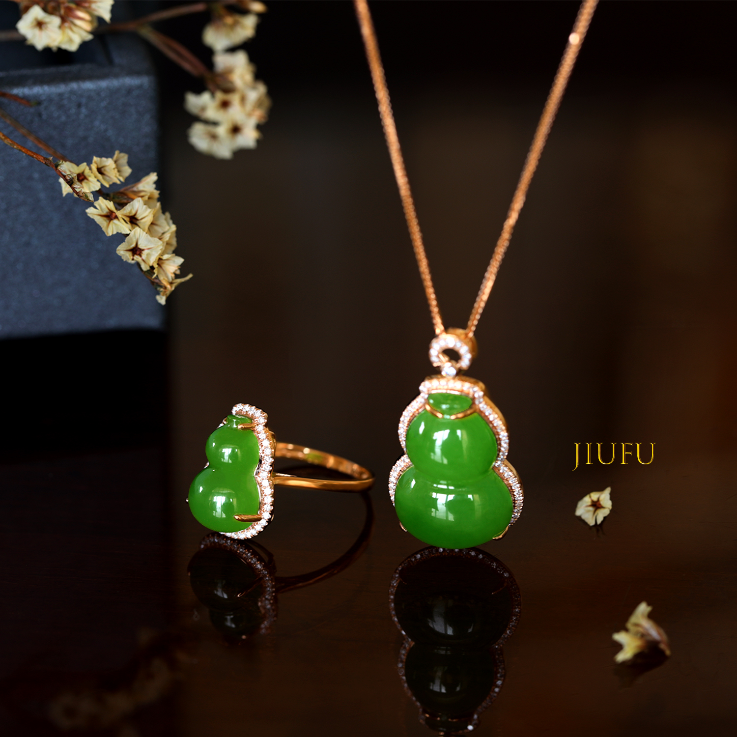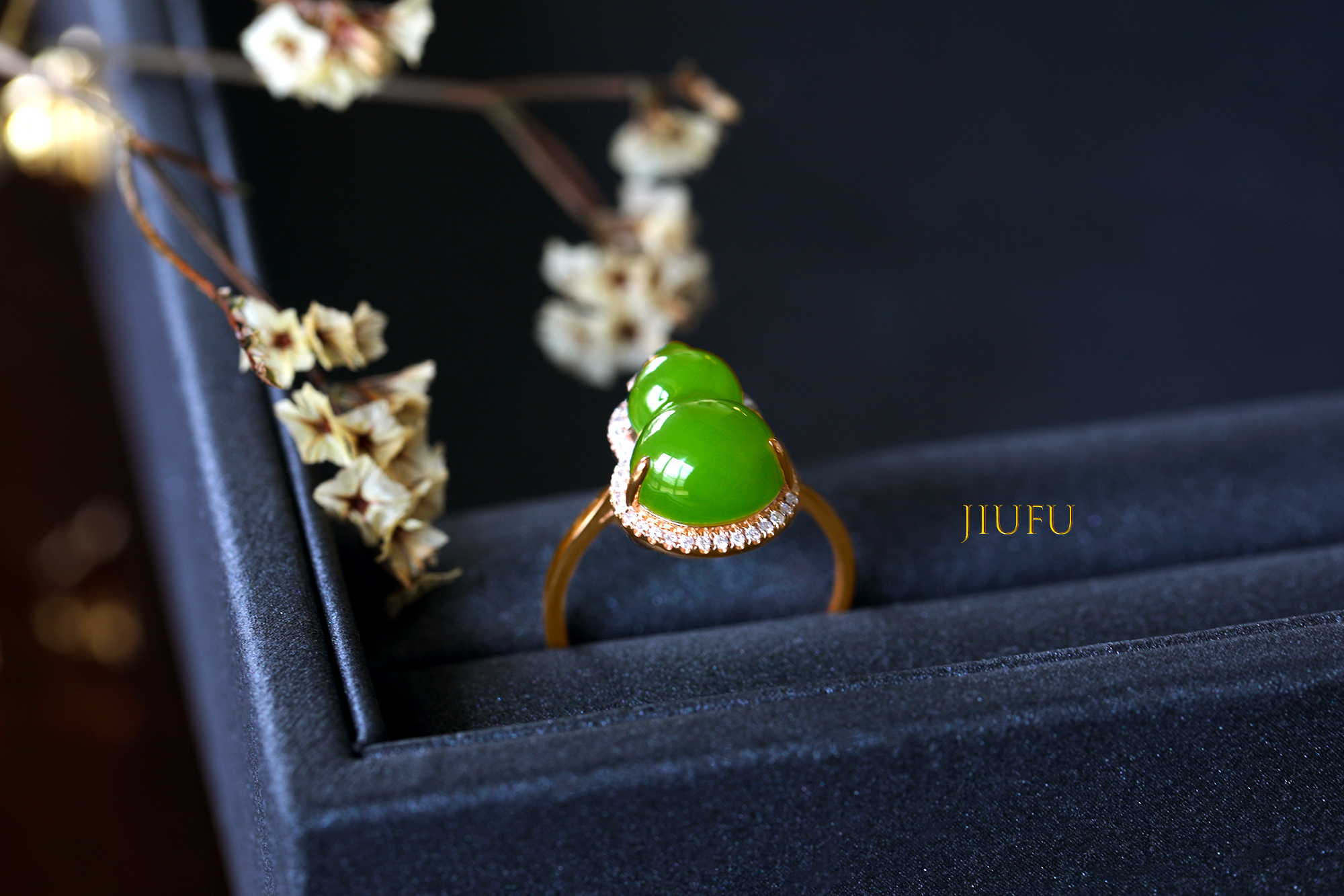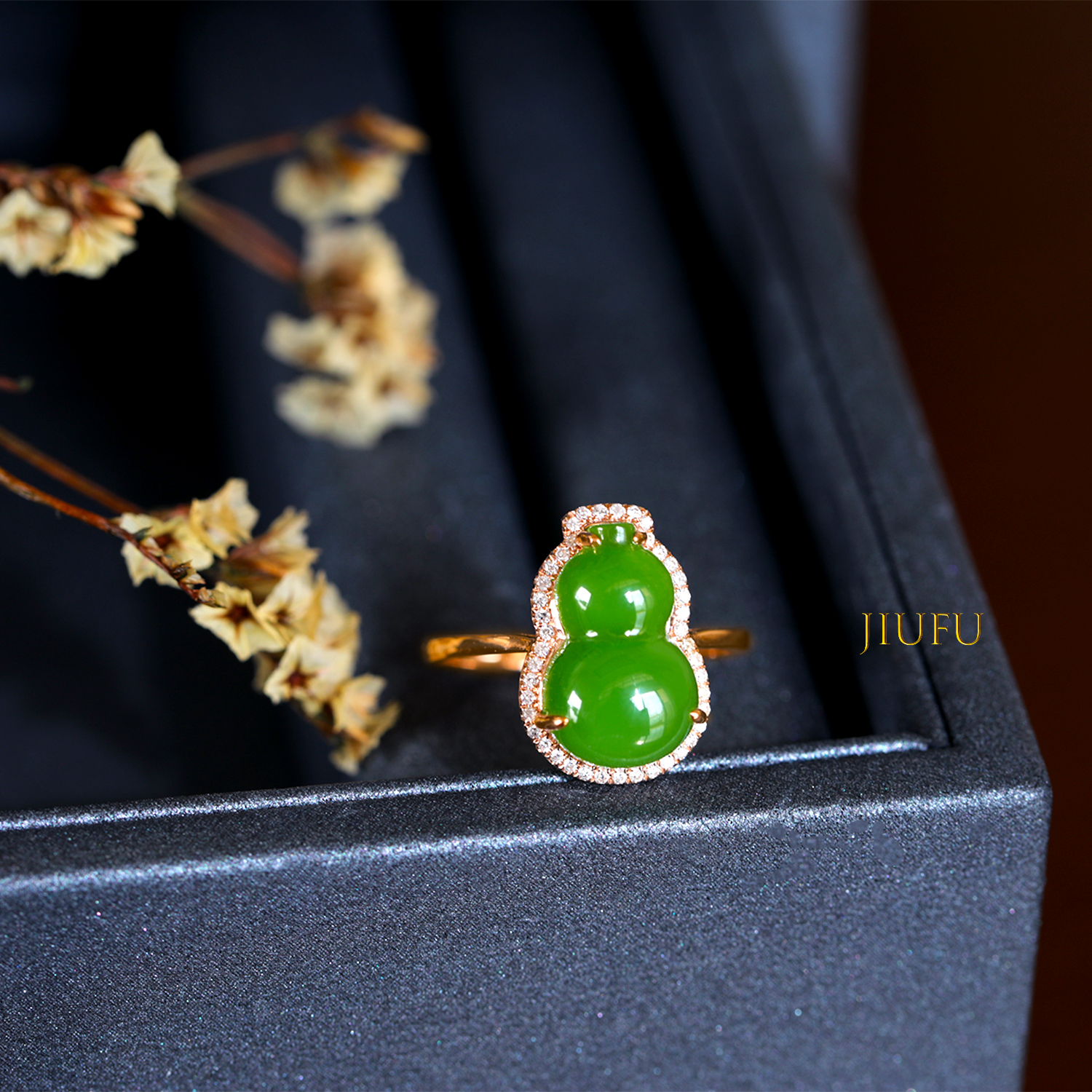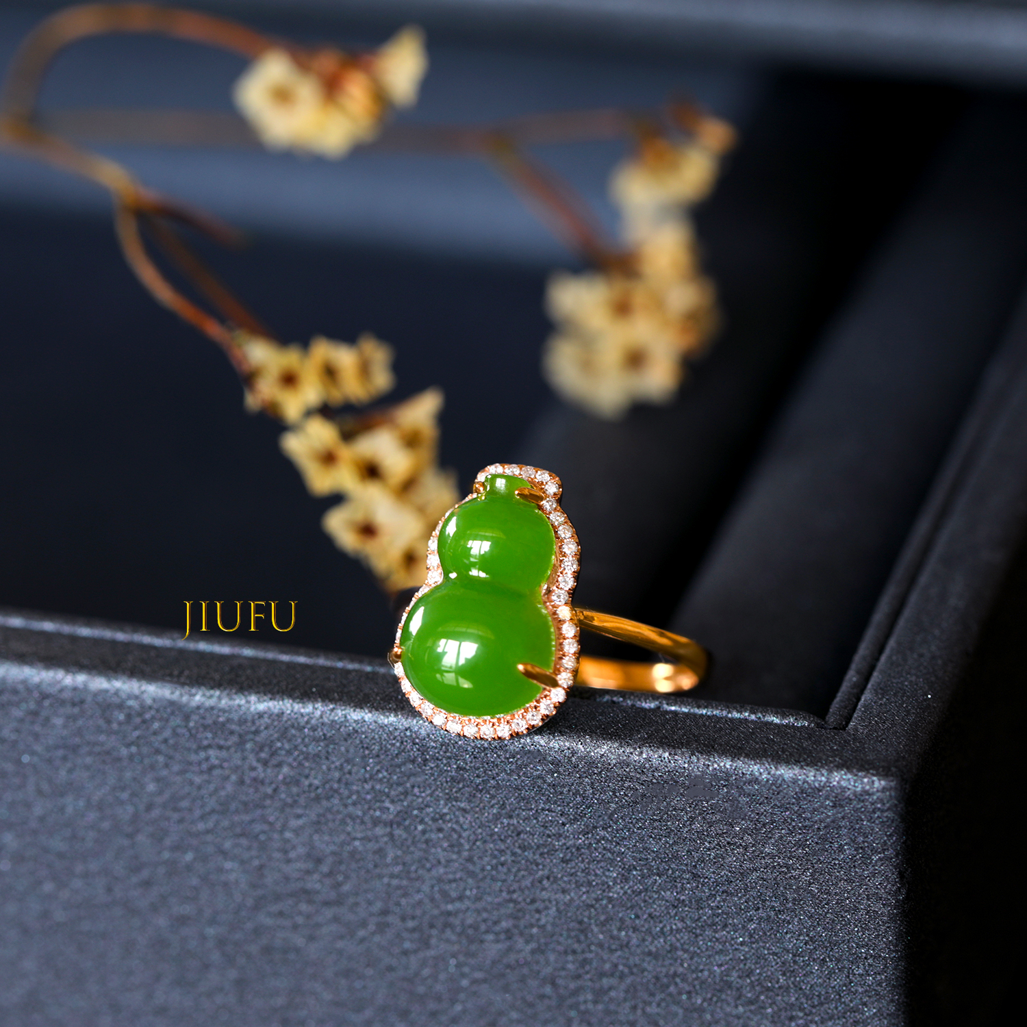 18K玫瑰金和田玉(碧玉)戒指