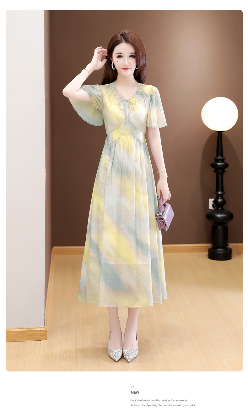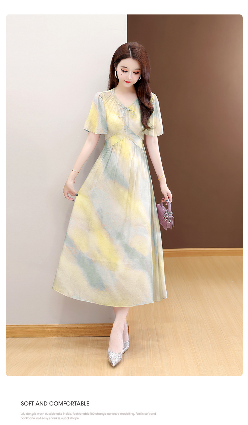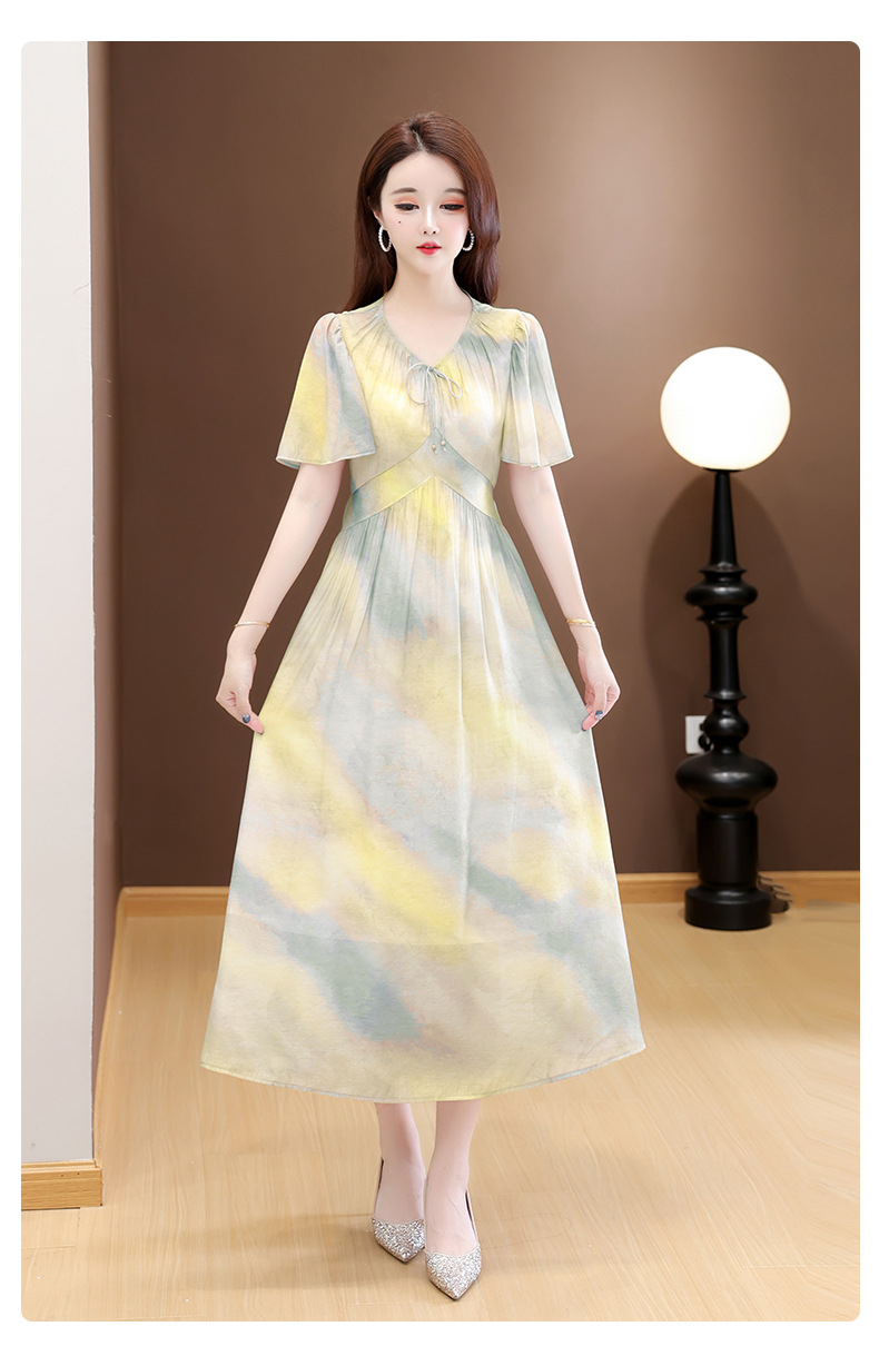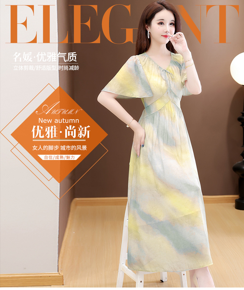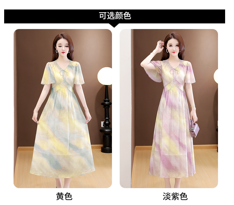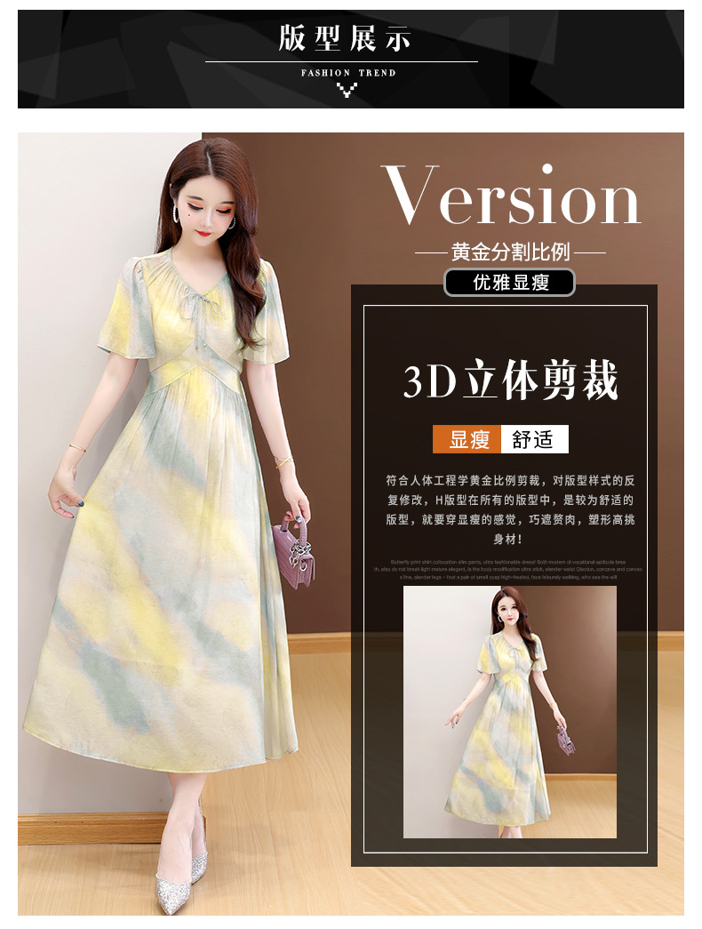 洋气V领法式连衣裙,简约时尚优雅修身过膝时髦长裙QYM-YJ25DS689