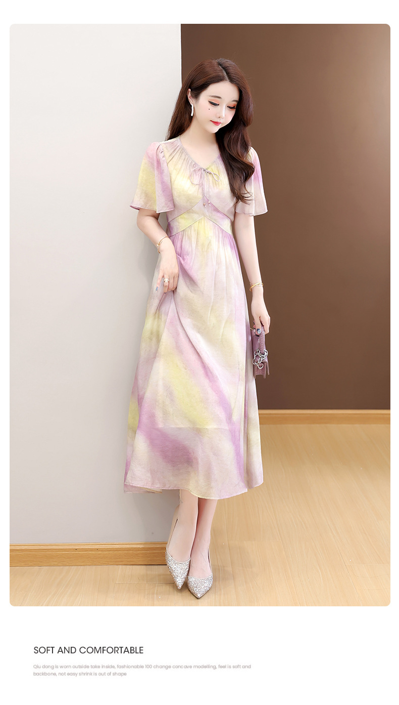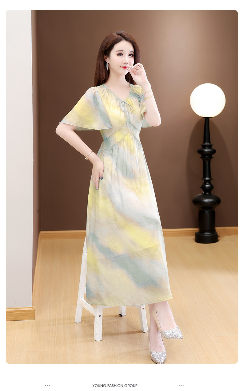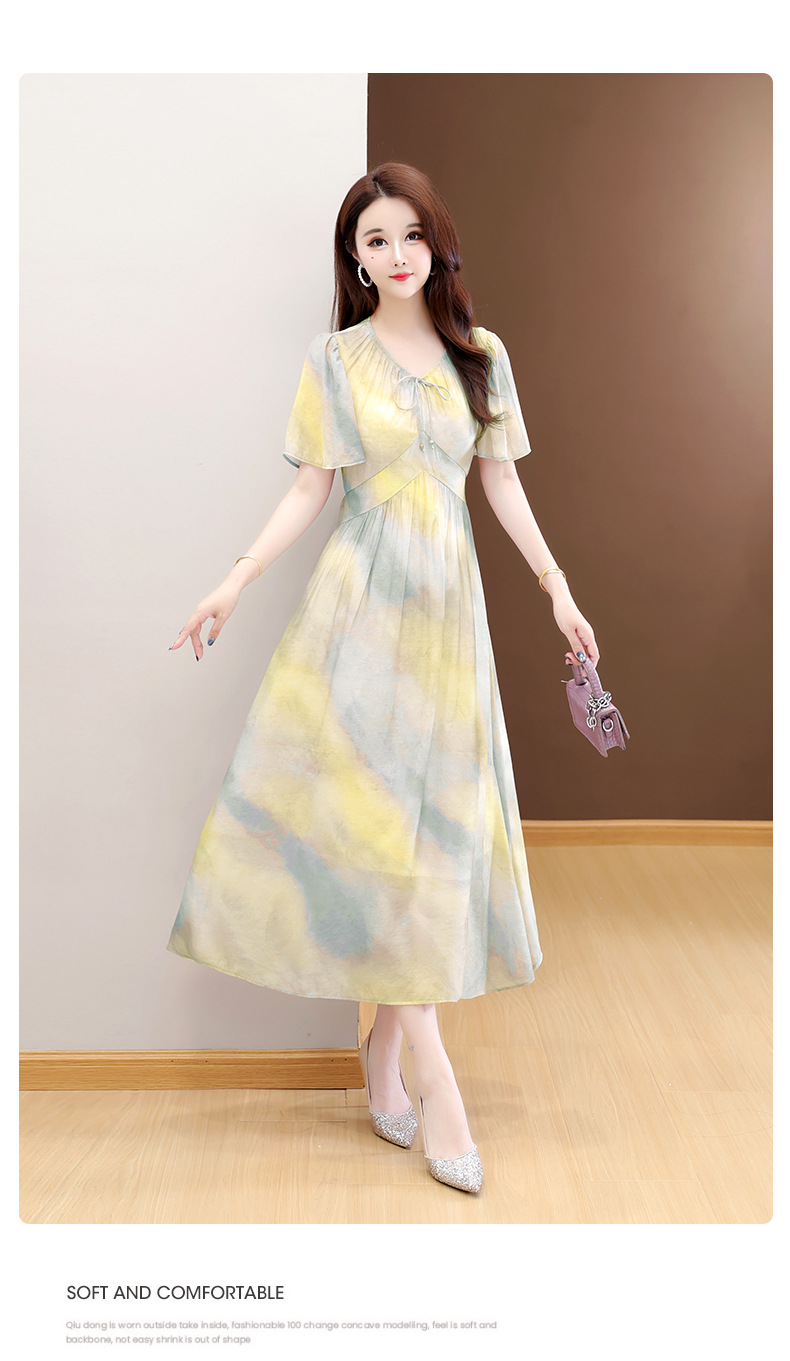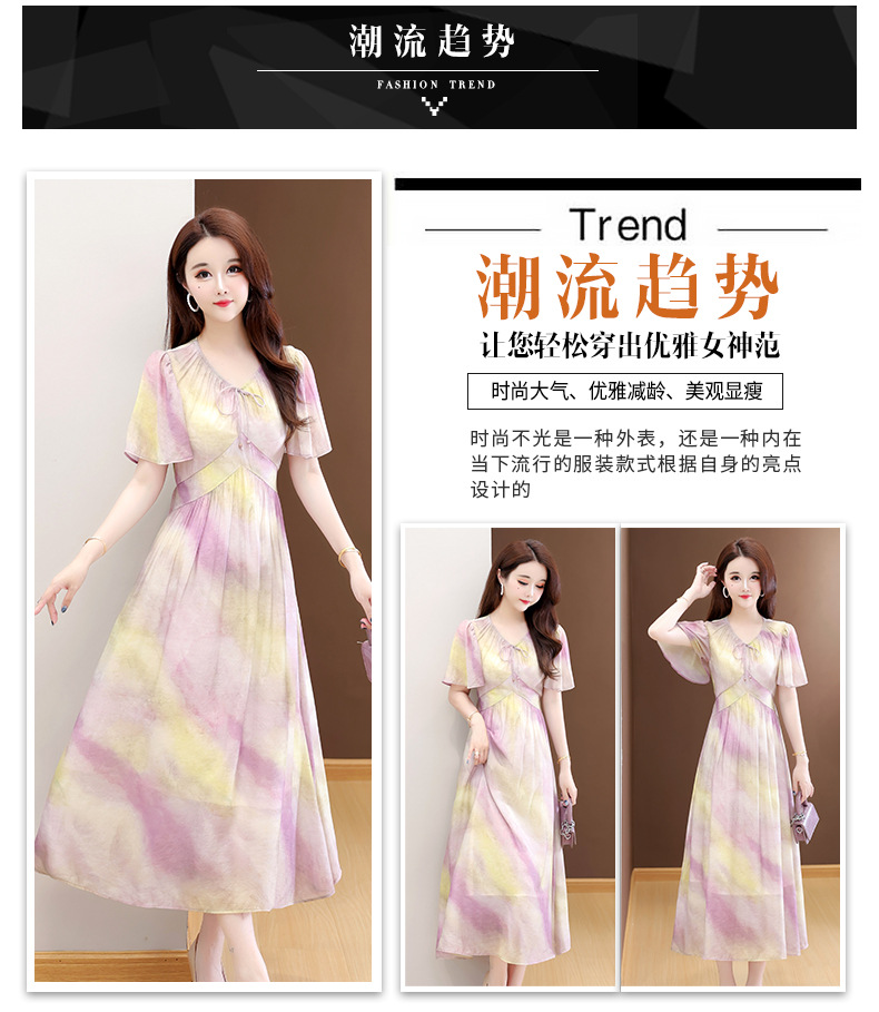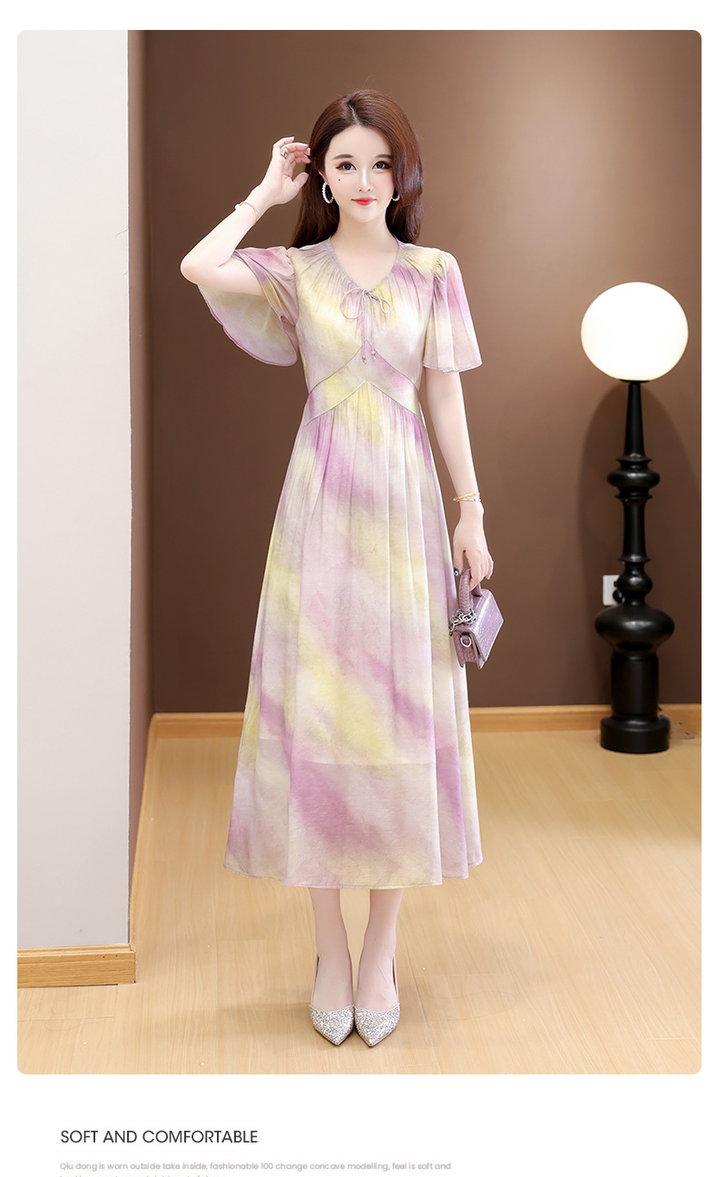 洋气V领法式连衣裙,简约时尚优雅修身过膝时髦长裙QYM-YJ25DS689