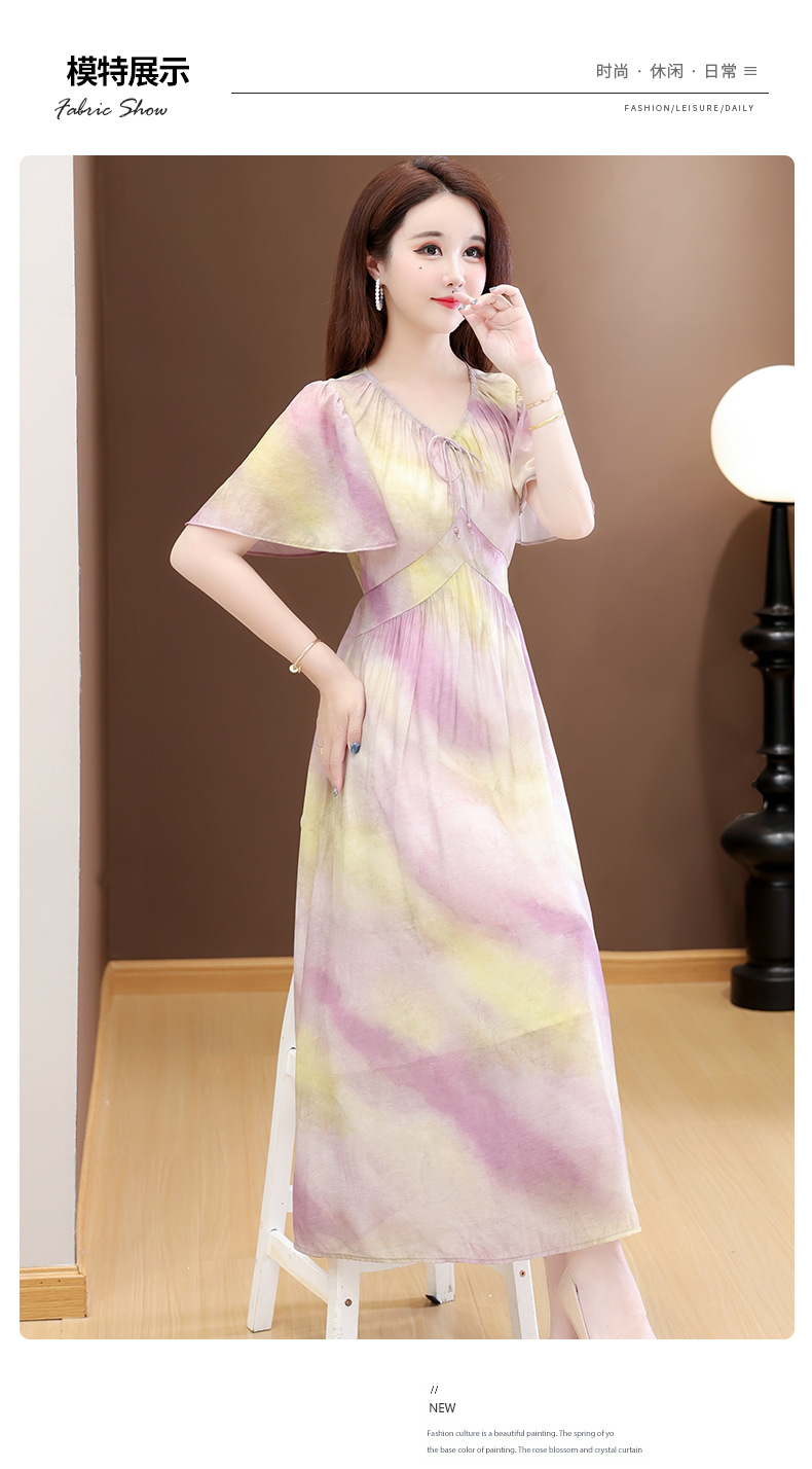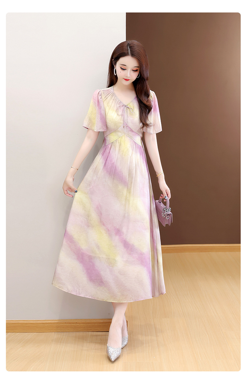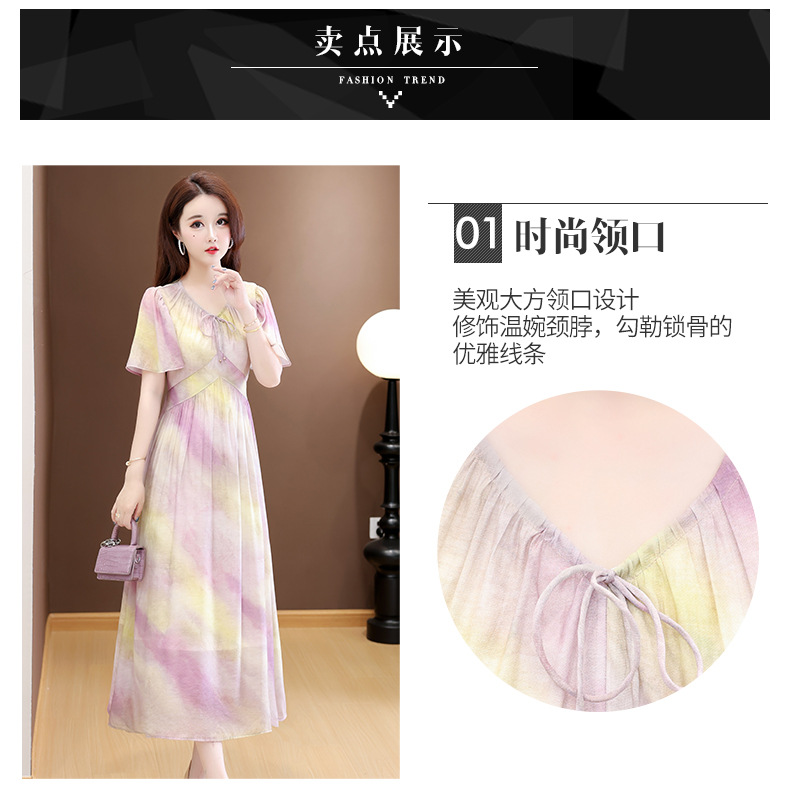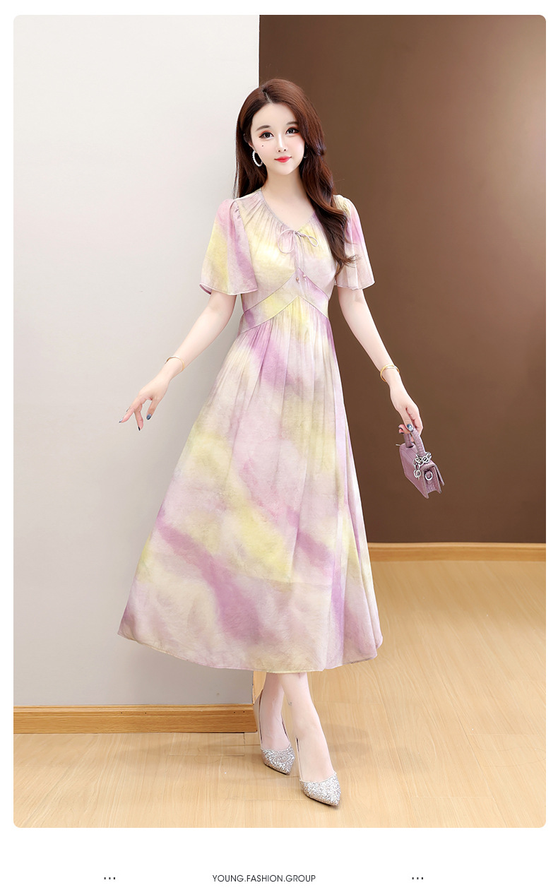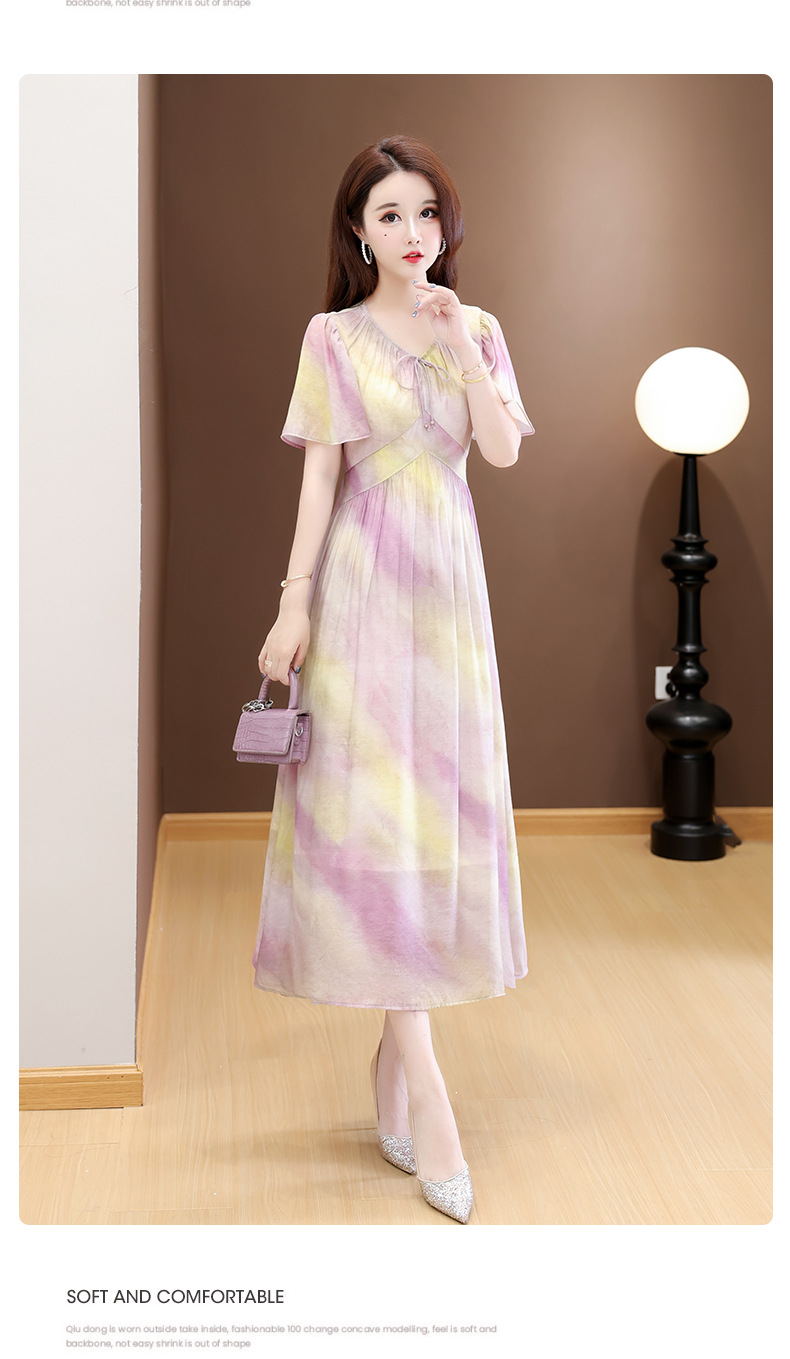 洋气V领法式连衣裙,简约时尚优雅修身过膝时髦长裙QYM-YJ25DS689