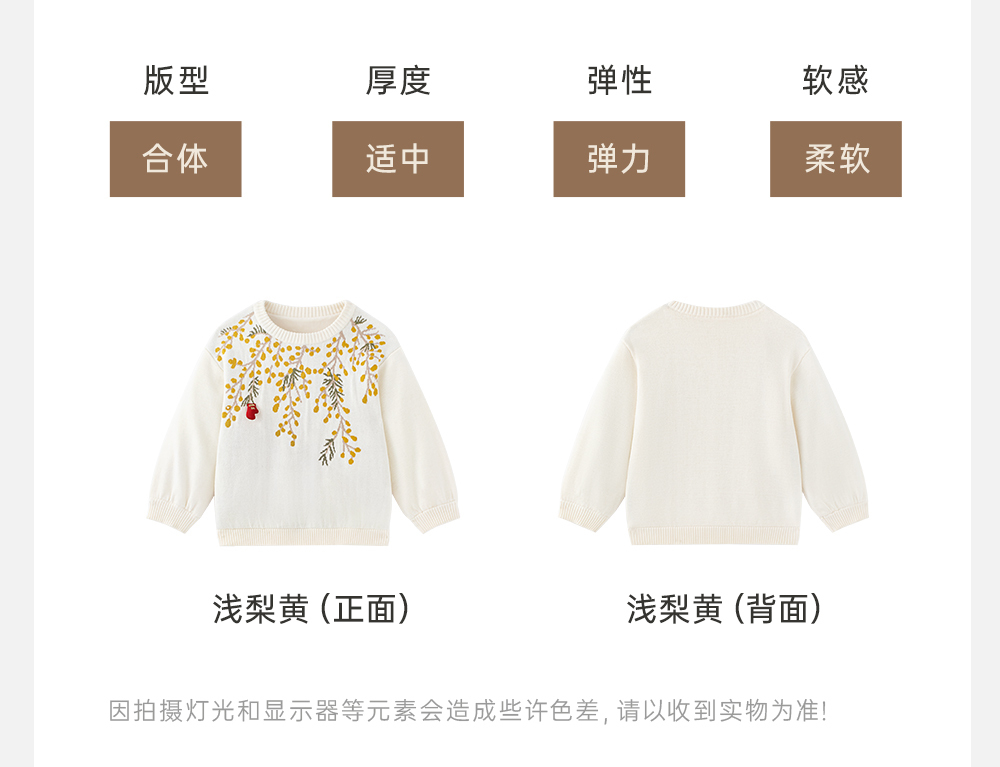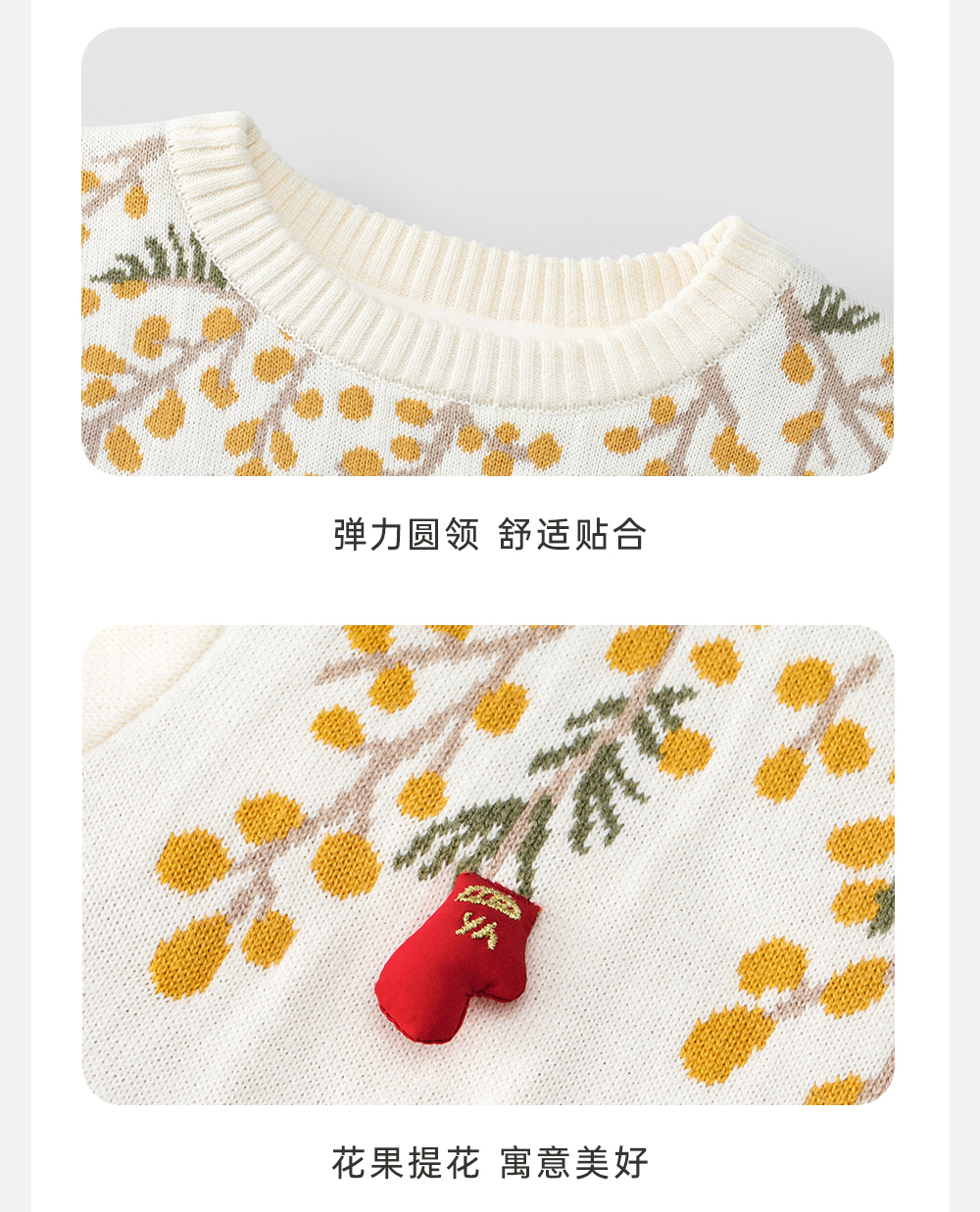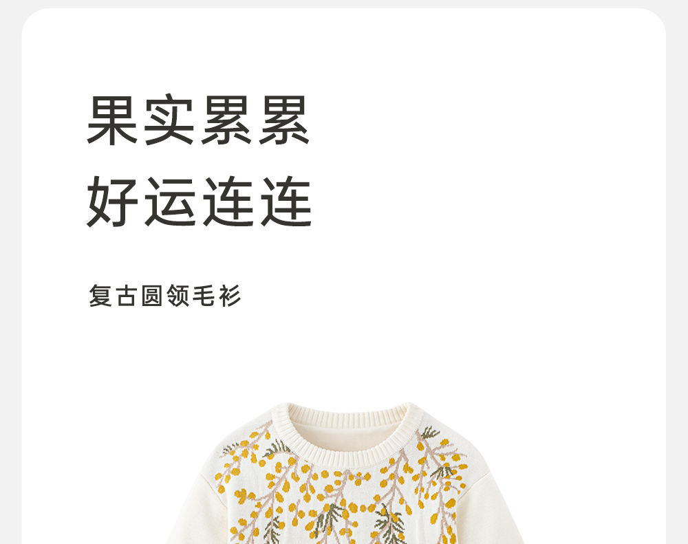 【商场同款】英氏儿童毛衣复古圆领毛衫女童秋冬保暖毛衣新款