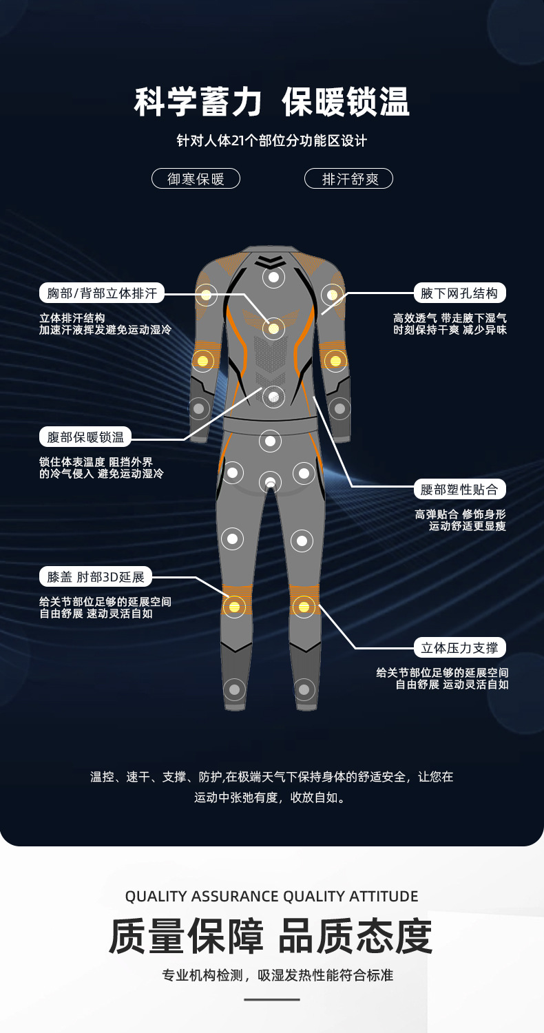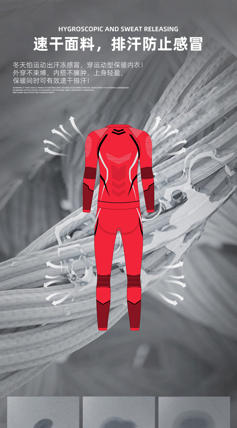 跃牌【菲凡系列】秋冬滑雪紧身透气速干衣男女运动骑行压缩保暖功能内衣套3914T