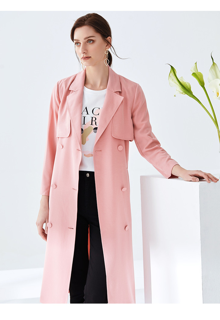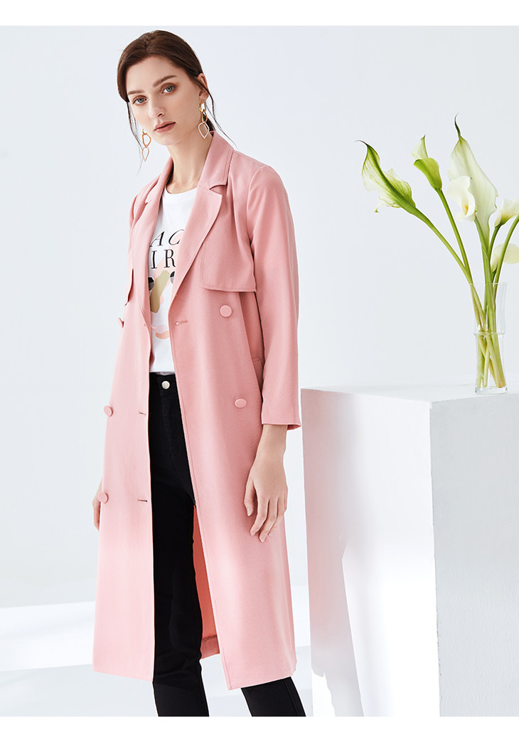 EITIE爱特爱女装春款时尚气质英伦风纯色薄款风衣外套女长款6104807