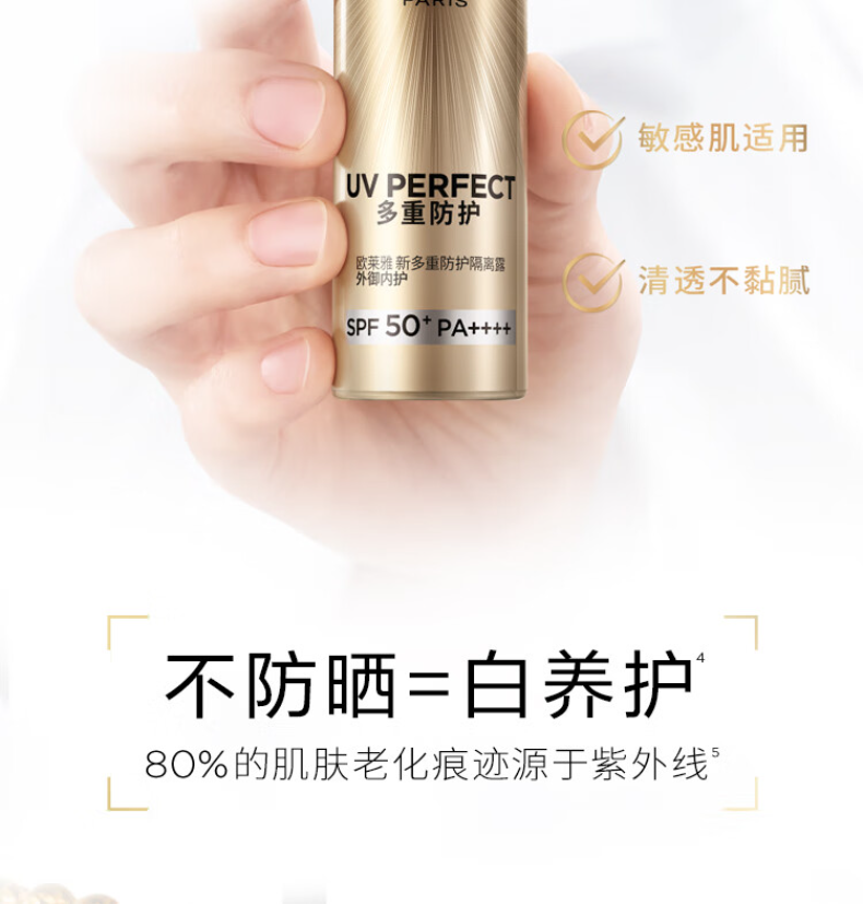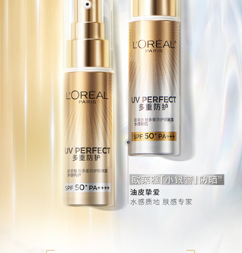 欧莱雅新多重防护隔离露 外御内护套装(小金管防晒套包)【小金管30ml】+注白瓶乳液50ml