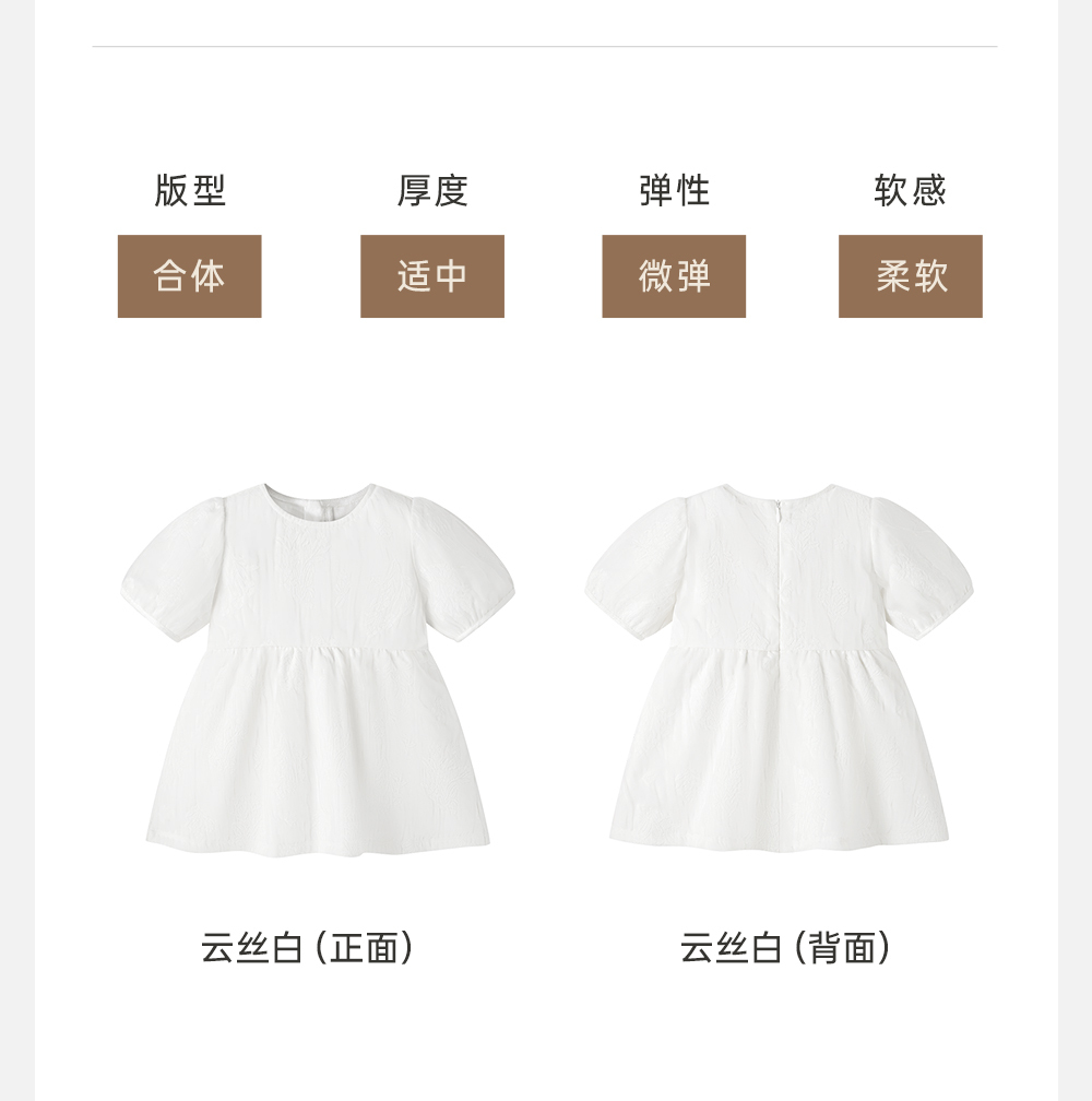 【商场同款】英氏童装连衣裙春夏新款小白裙女宝柔软透气裙子