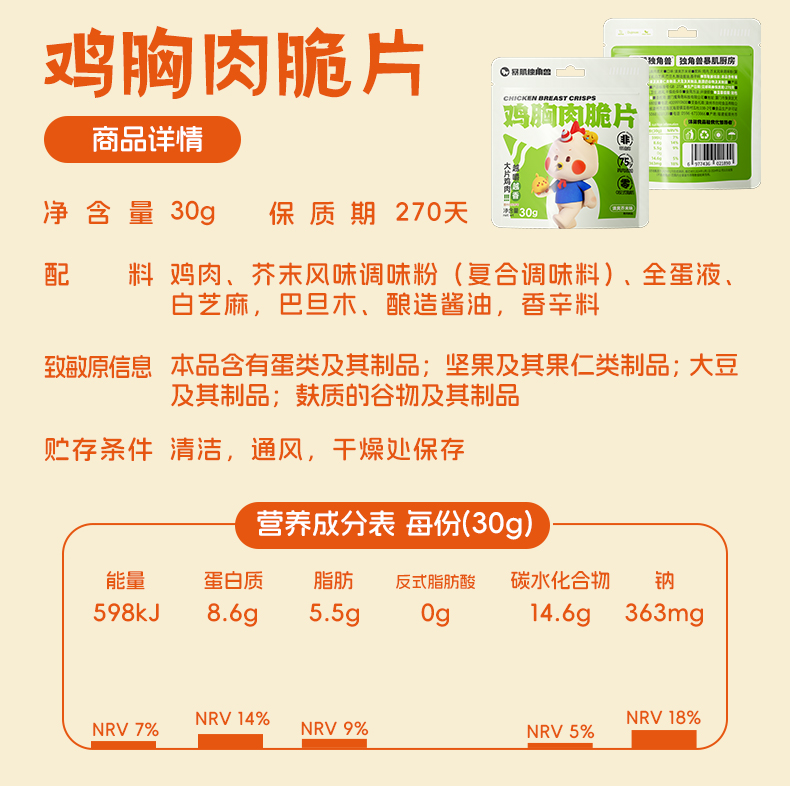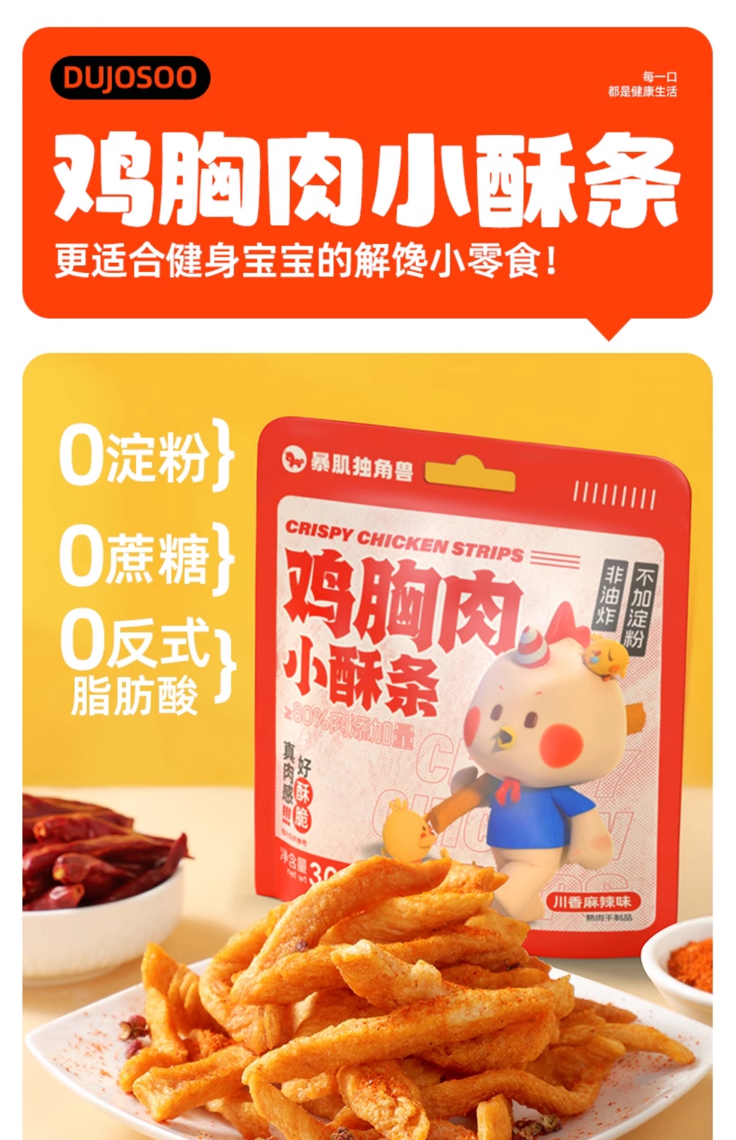 【暴肌独角兽 鸡胸肉小酥条】0淀粉、0蔗糖、0反式脂肪酸、办公健康食品、小零食30g/袋