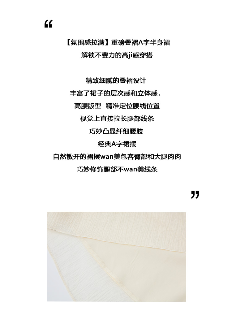 Even Vintage | 莱赛尔混纺 优雅时尚宽松百搭叠褶唯美A字半裙