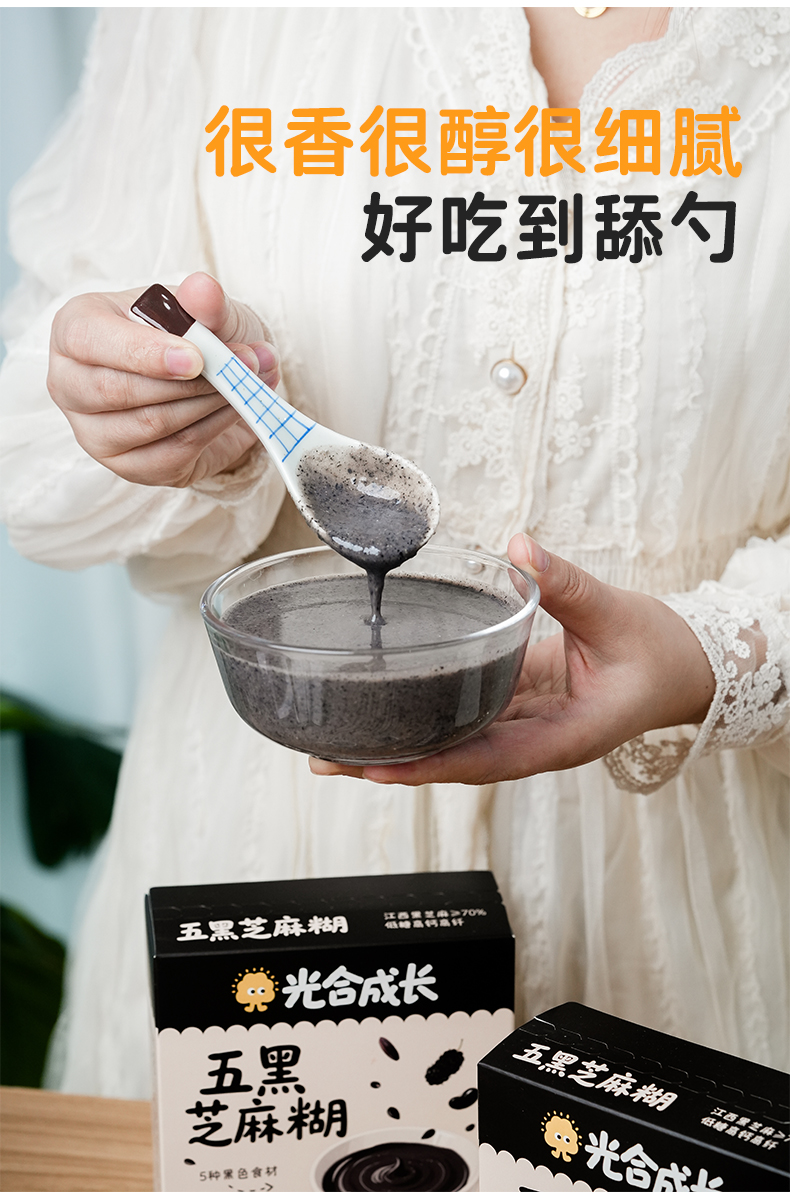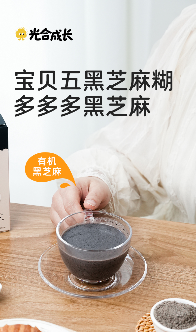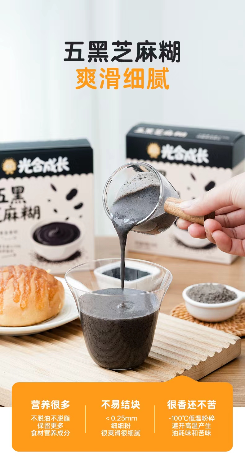 优选 | 光合成长五黑芝麻糊 精选江西有机黑芝麻 265+项农残检测 低糖高钙高纤 独立小条装 160g(20g*8条)/盒