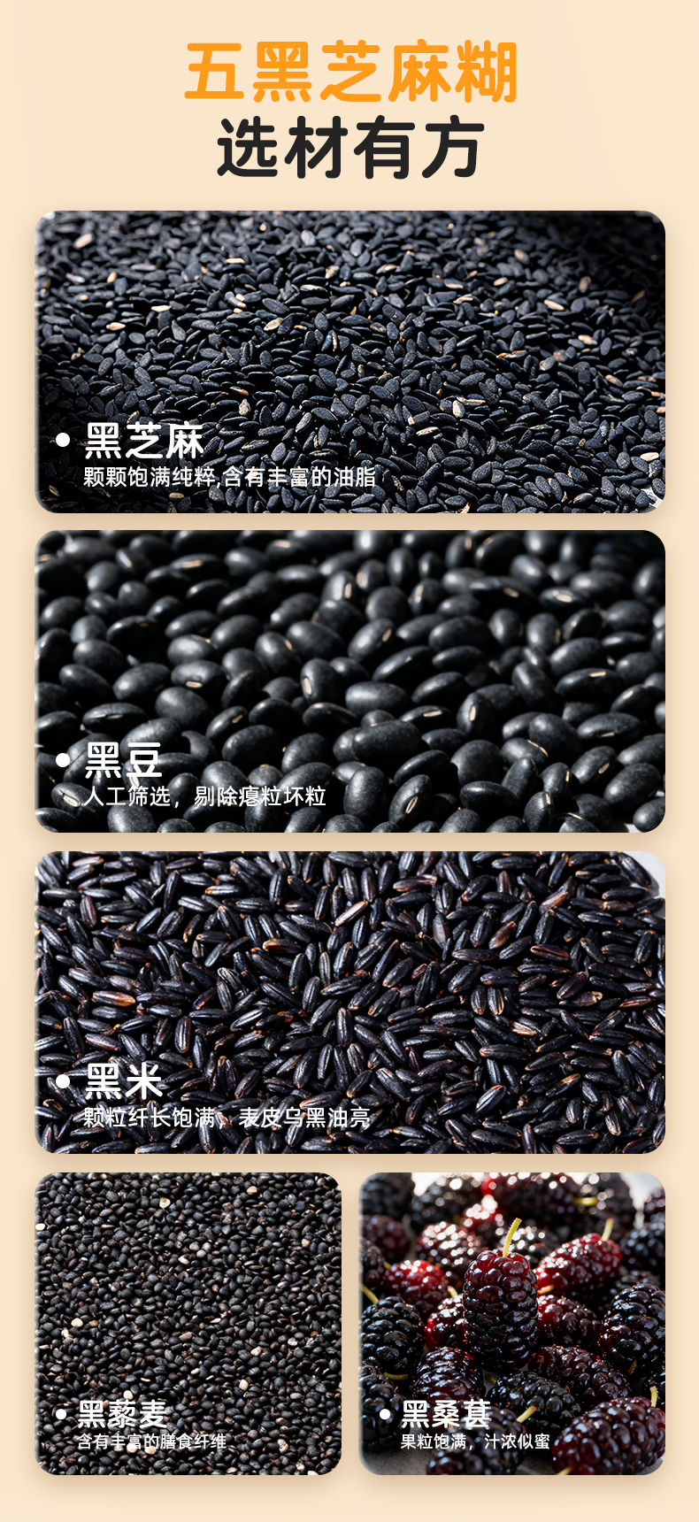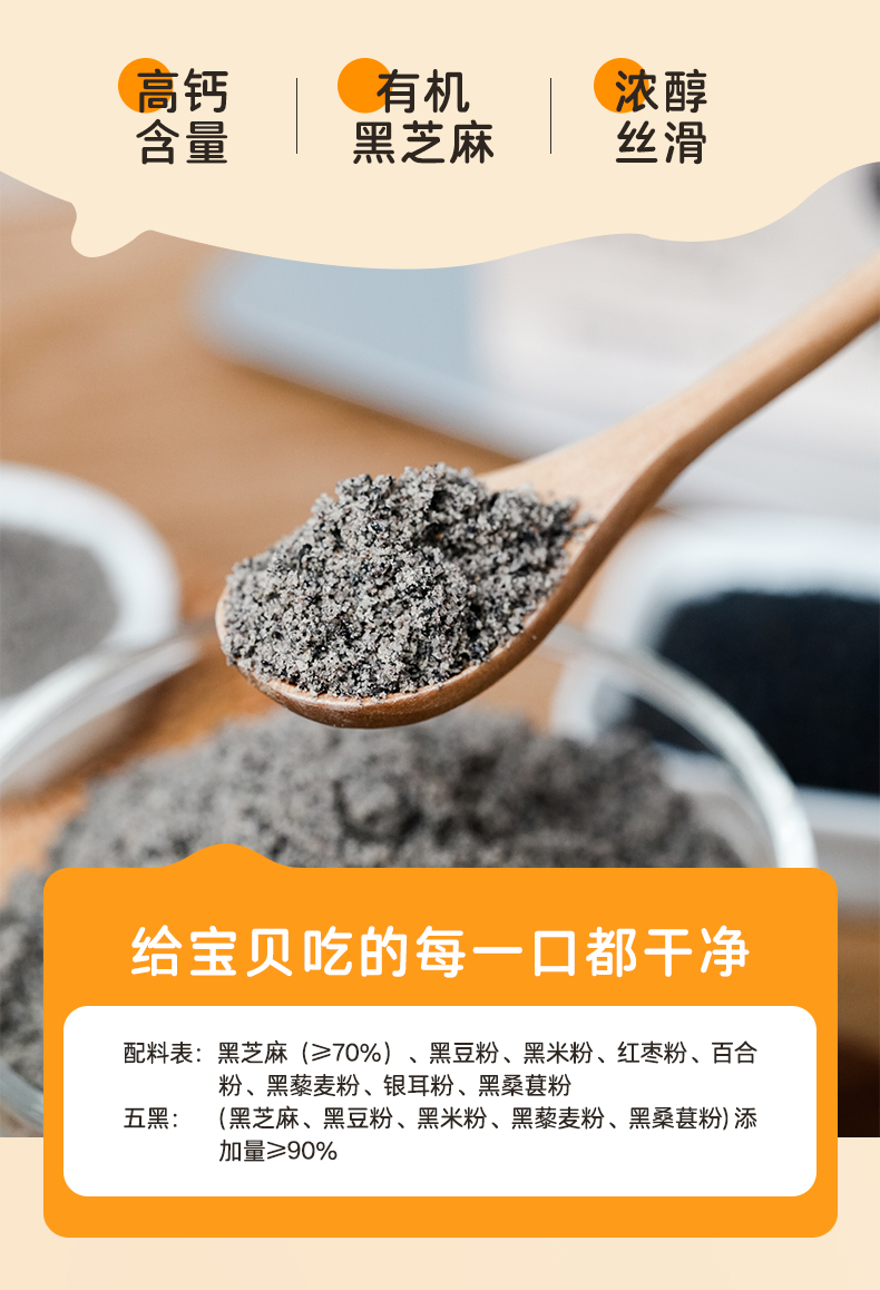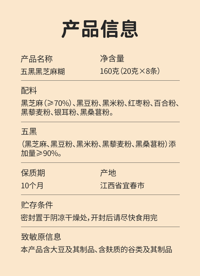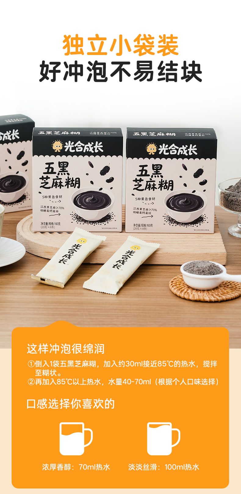 优选 | 光合成长五黑芝麻糊 精选江西有机黑芝麻 265+项农残检测 低糖高钙高纤 独立小条装 160g(20g*8条)/盒