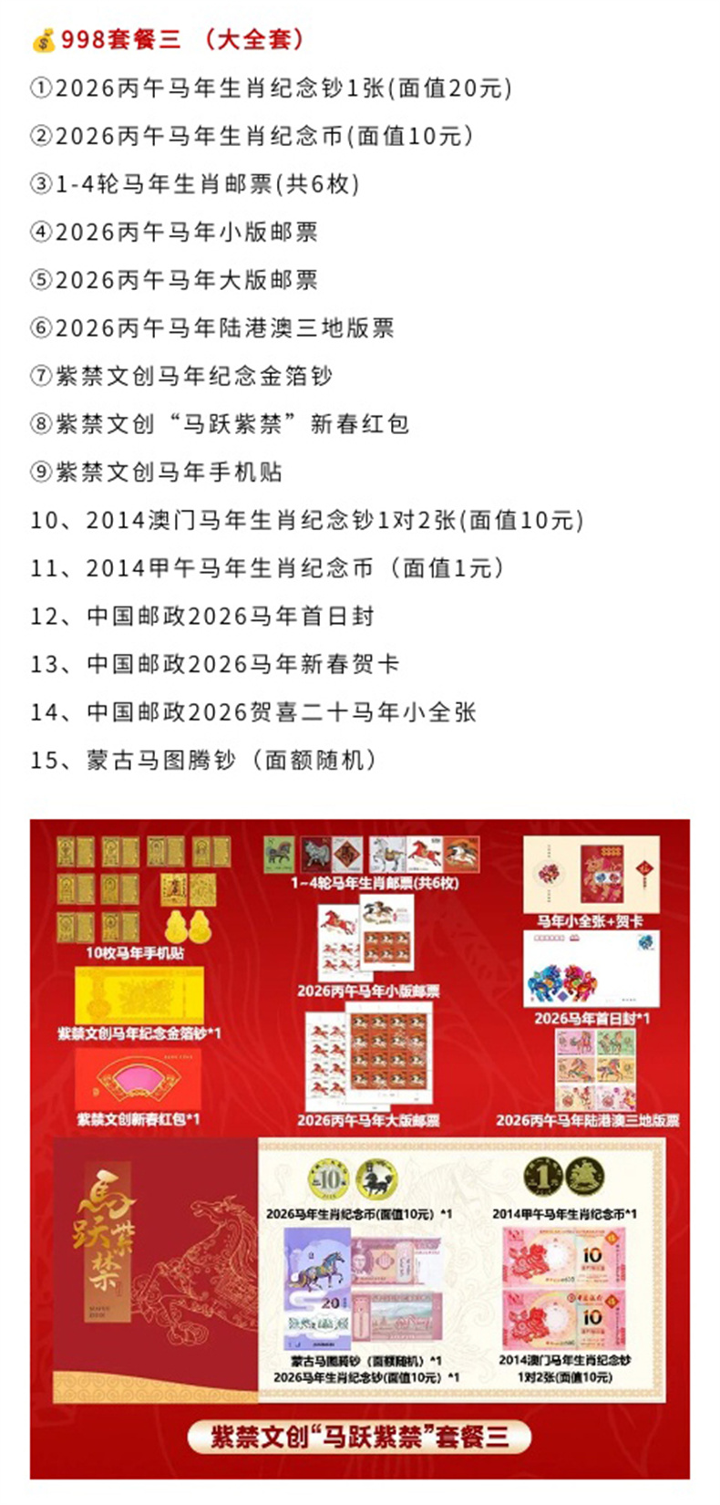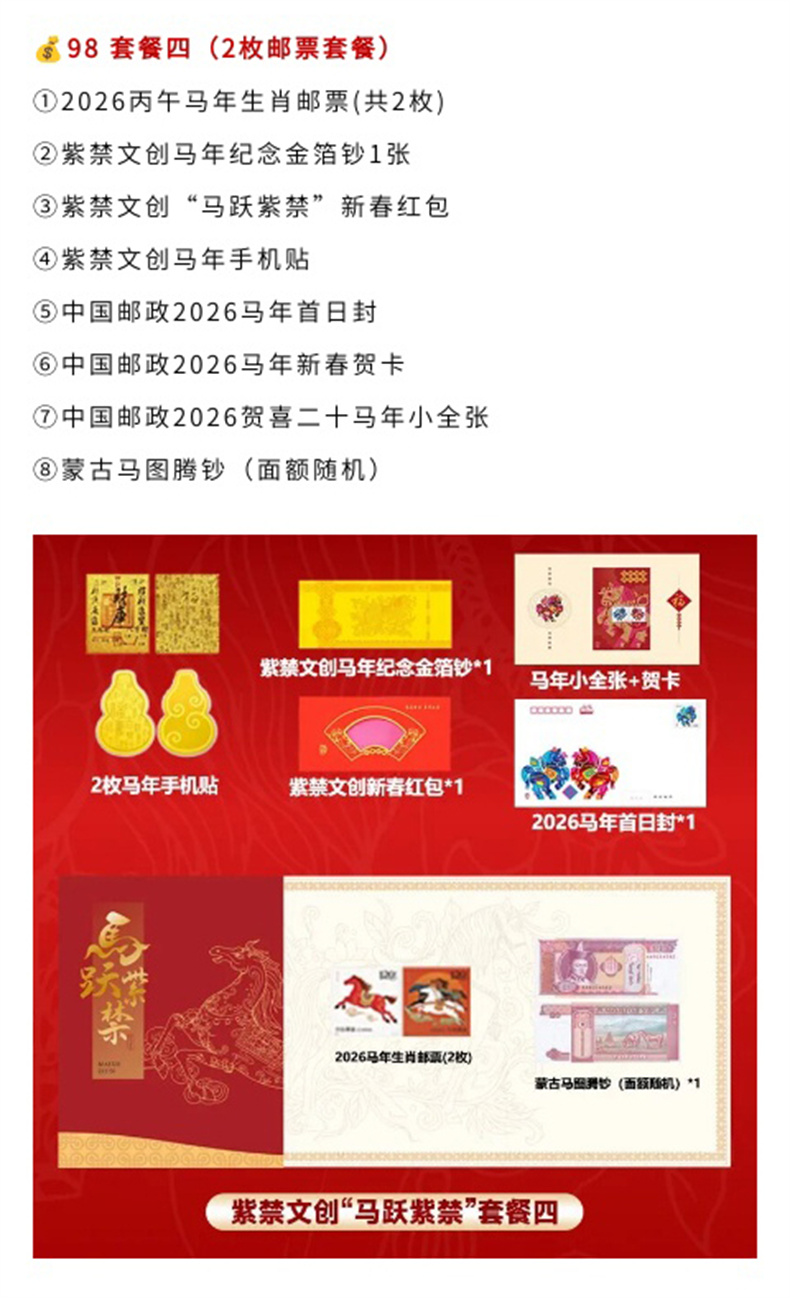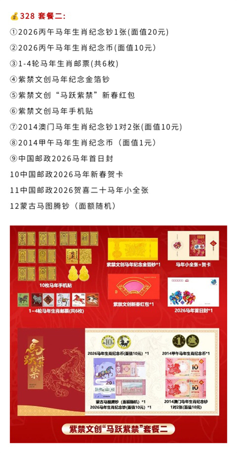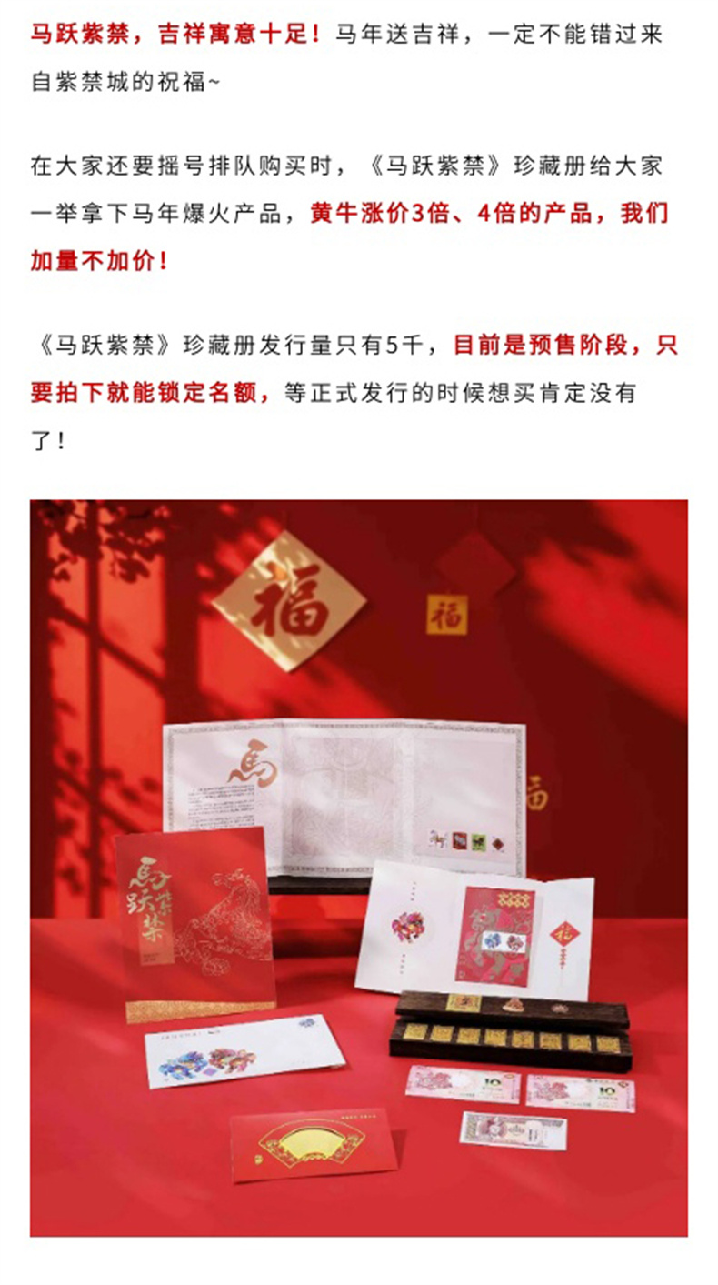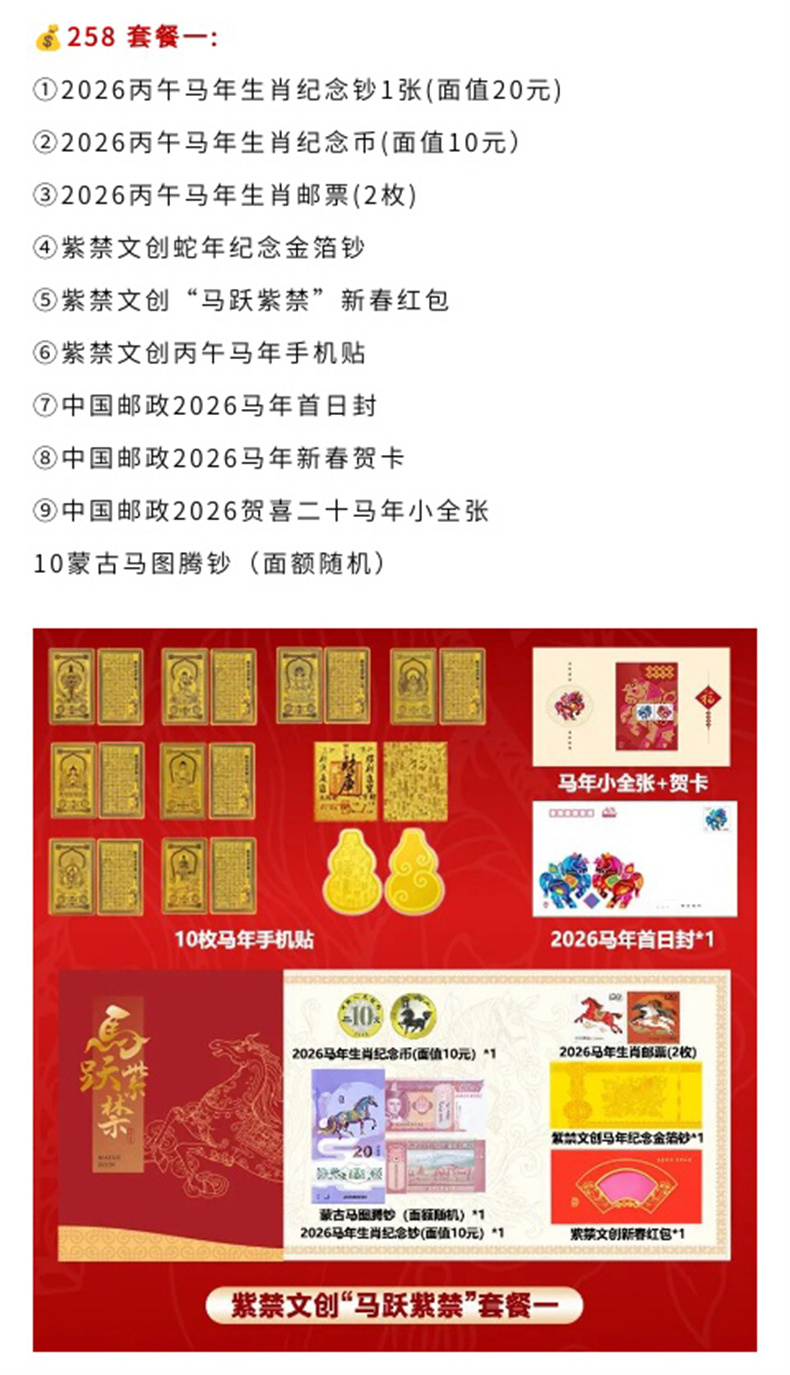 【火爆预售~福马迎新春2026马年纪念钞币马年邮票、紫禁文创金箔钞手机贴等大套装】《马跃紫禁》2026丙午马年珍藏册 (1月9 号陆续发货)