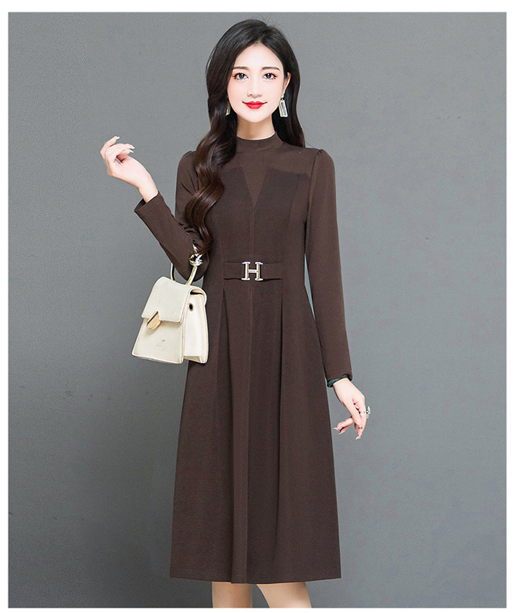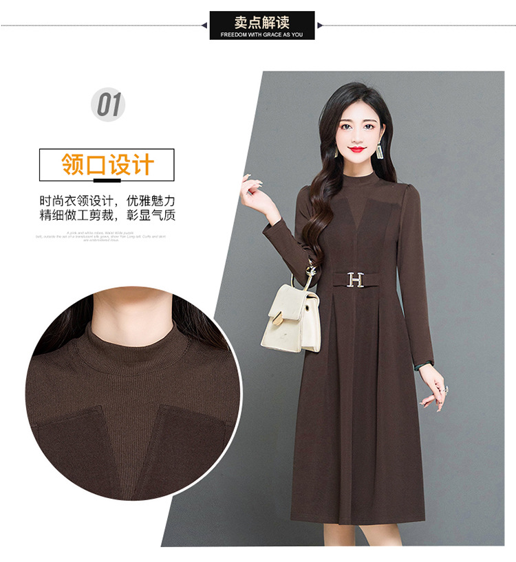 QYM 238018-Y针织连衣裙拼接中长裙时尚弹力A字裙 商品图4