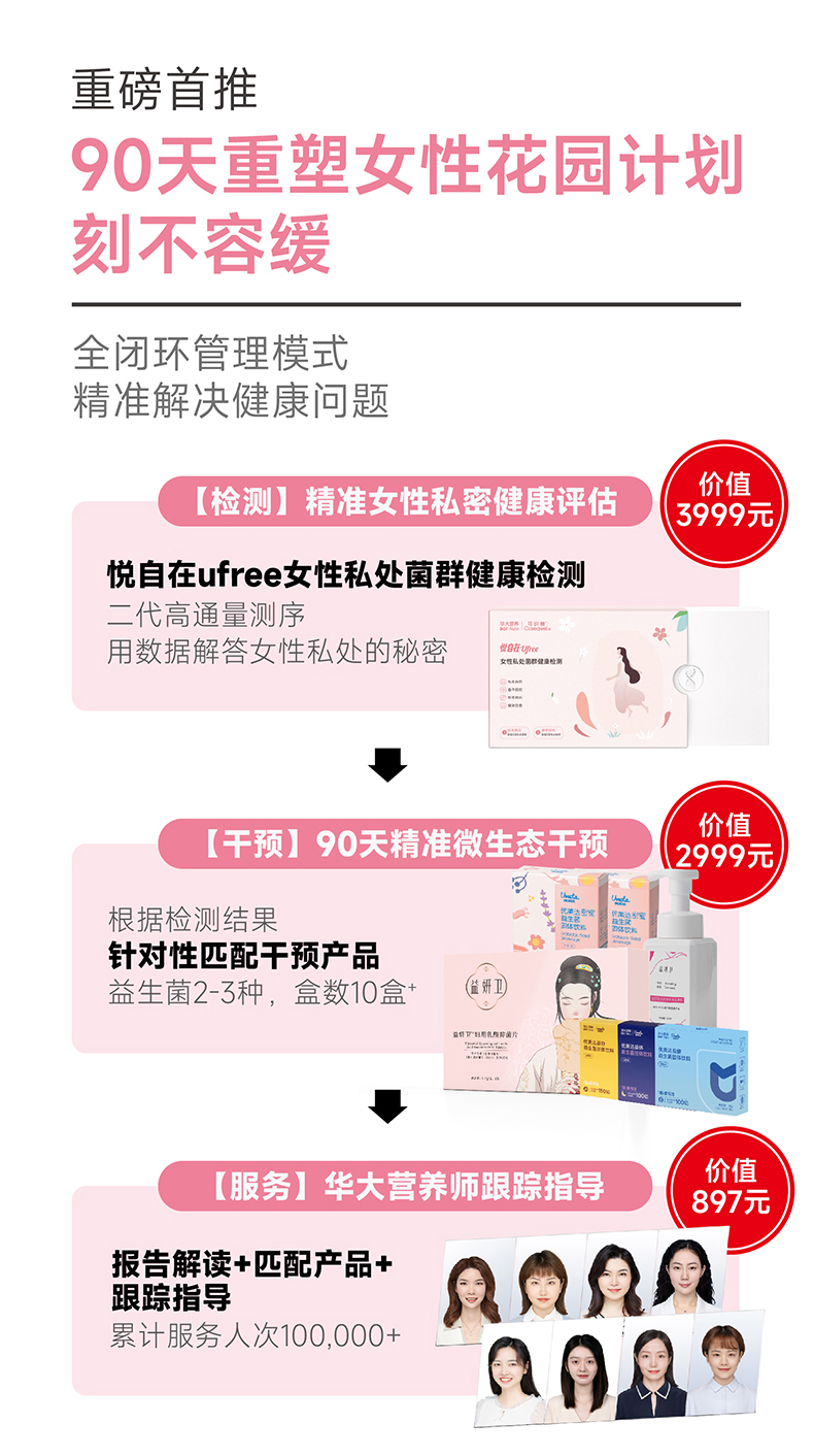 【健康方案】【女性健康计划 | 精准私护】精准生殖道菌群检测+精准产品干预+国家营养师1对1指导,适合你个人的全闭环精准女性健康提升方案!