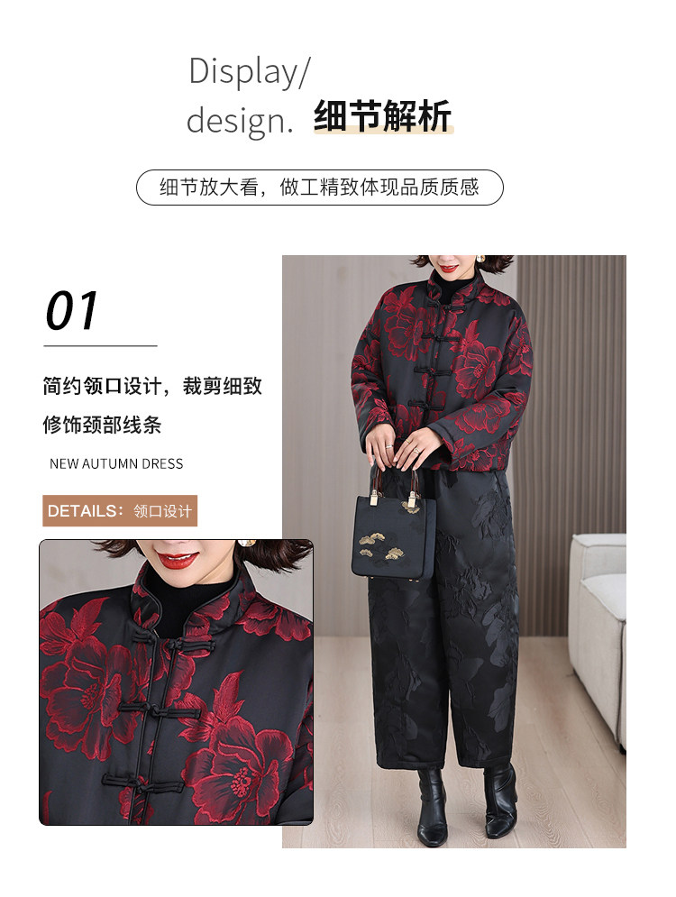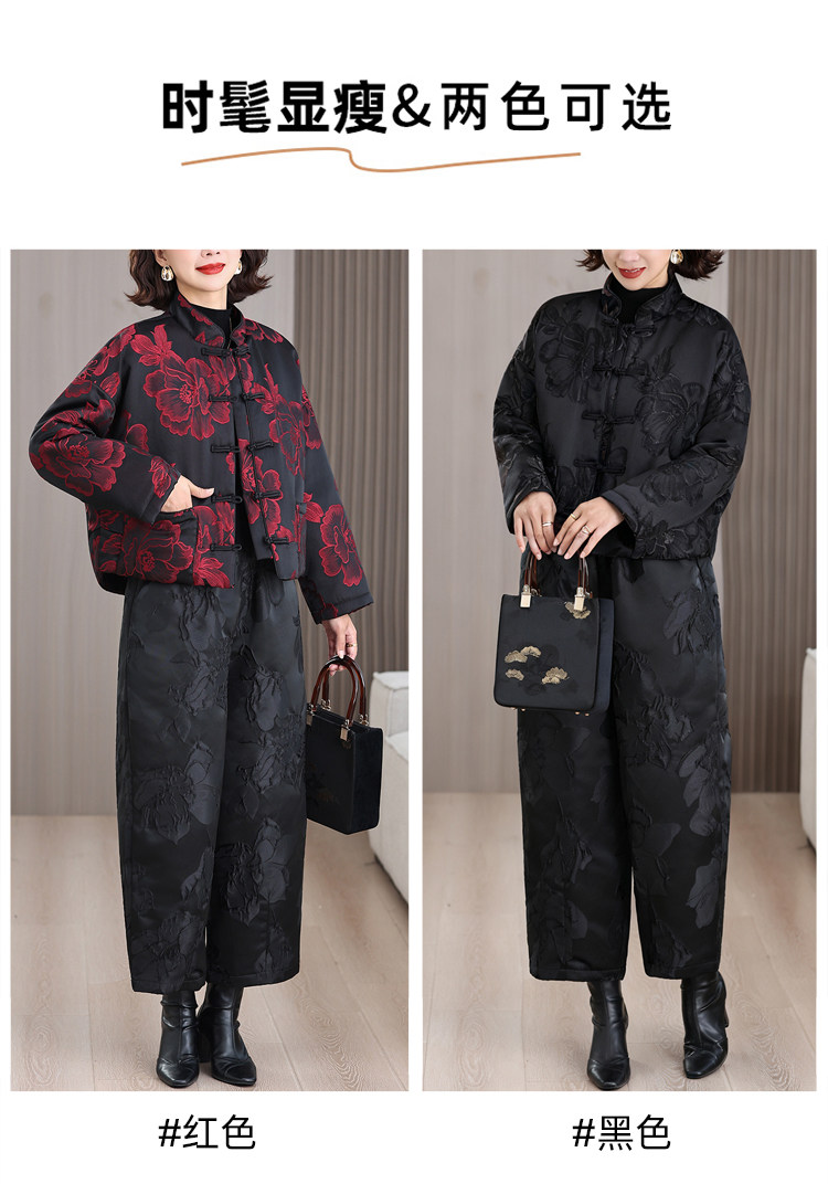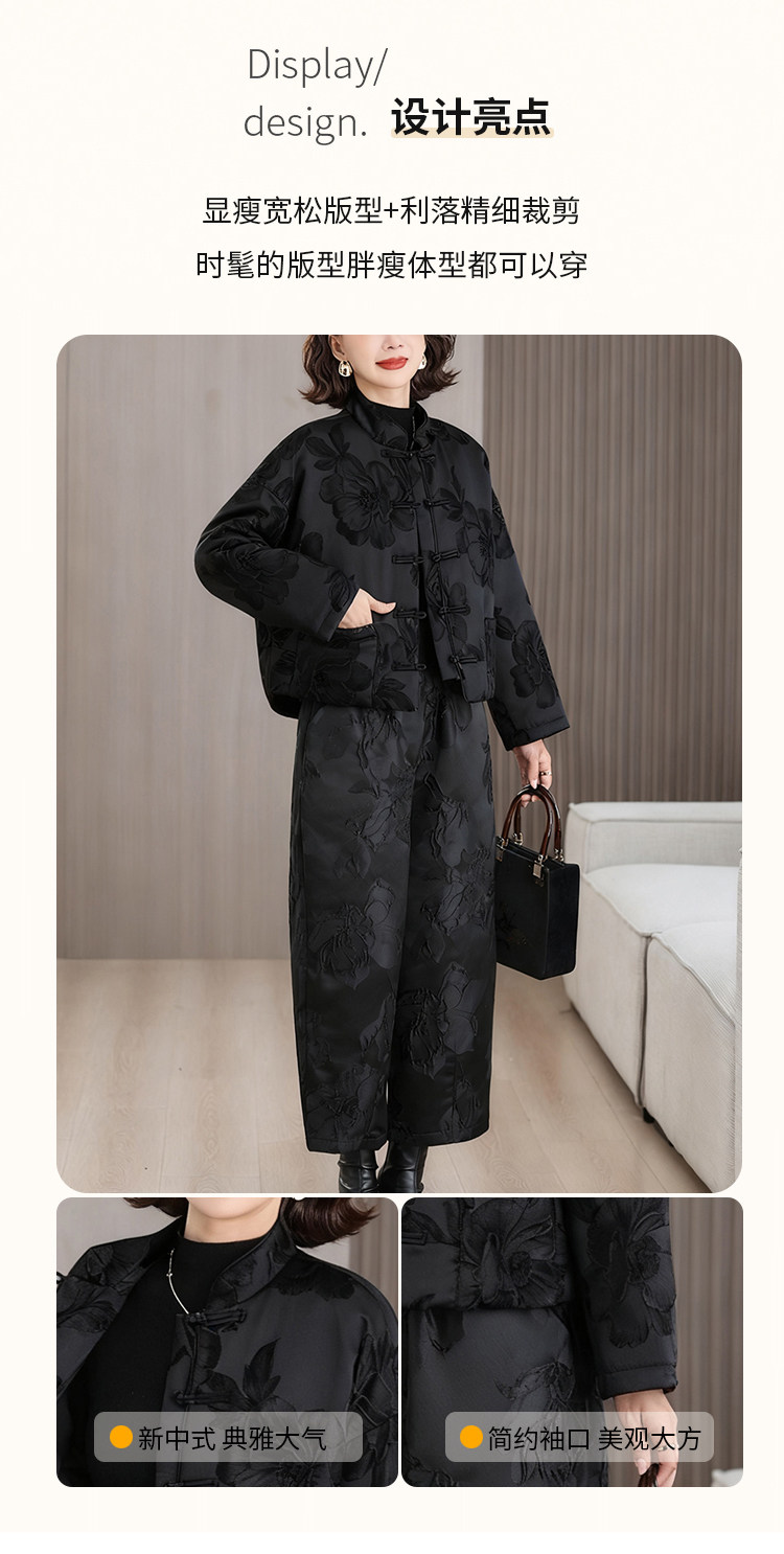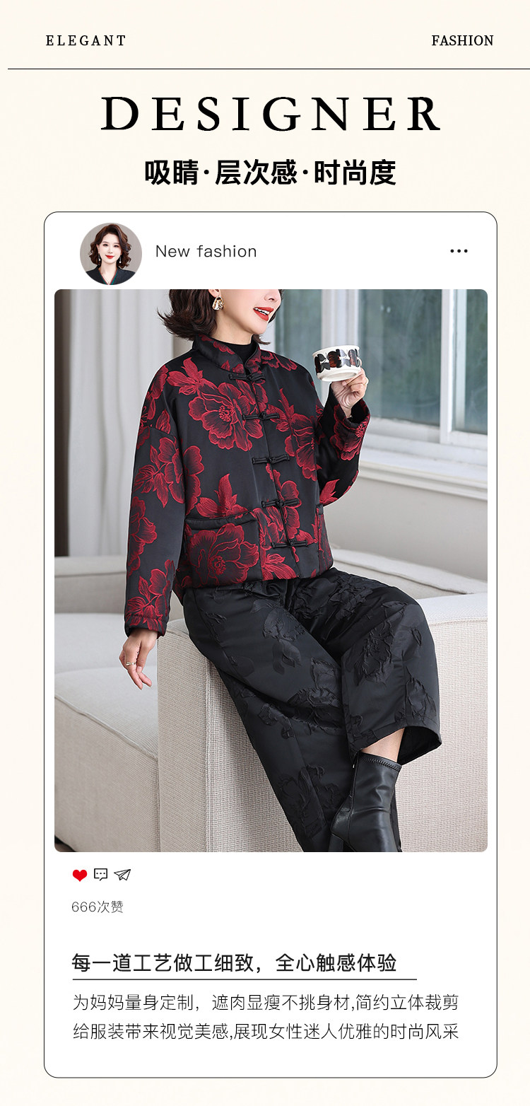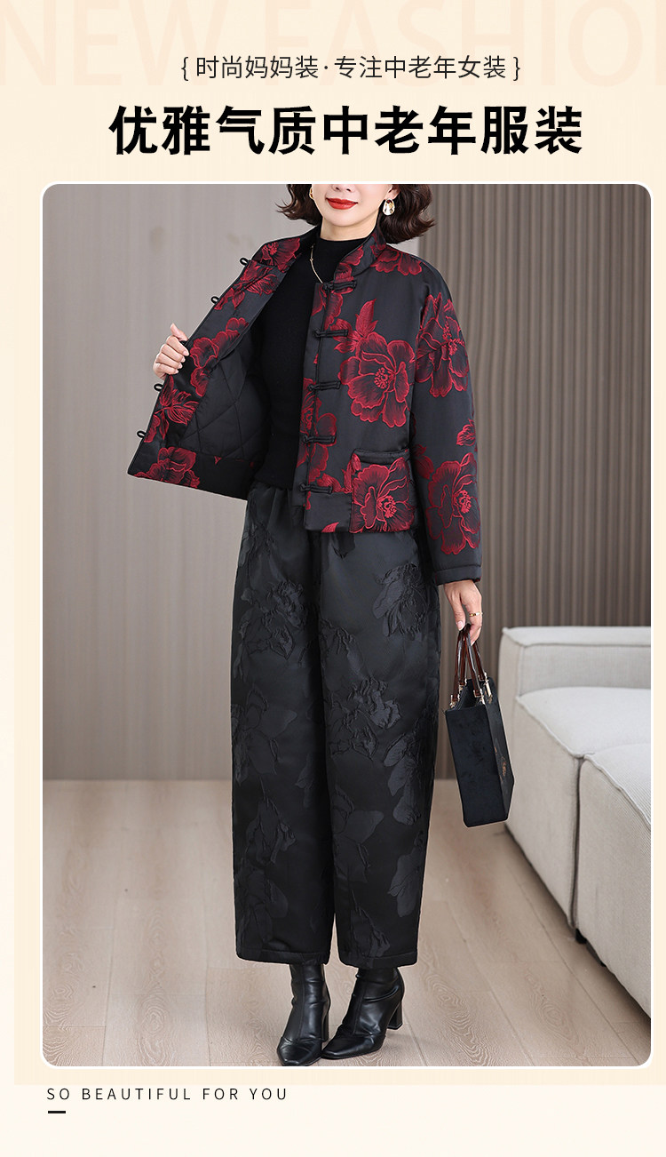 新中式国风套装妈妈装冬季夹棉加厚汉服唐装阔腿裤两件套复古女装