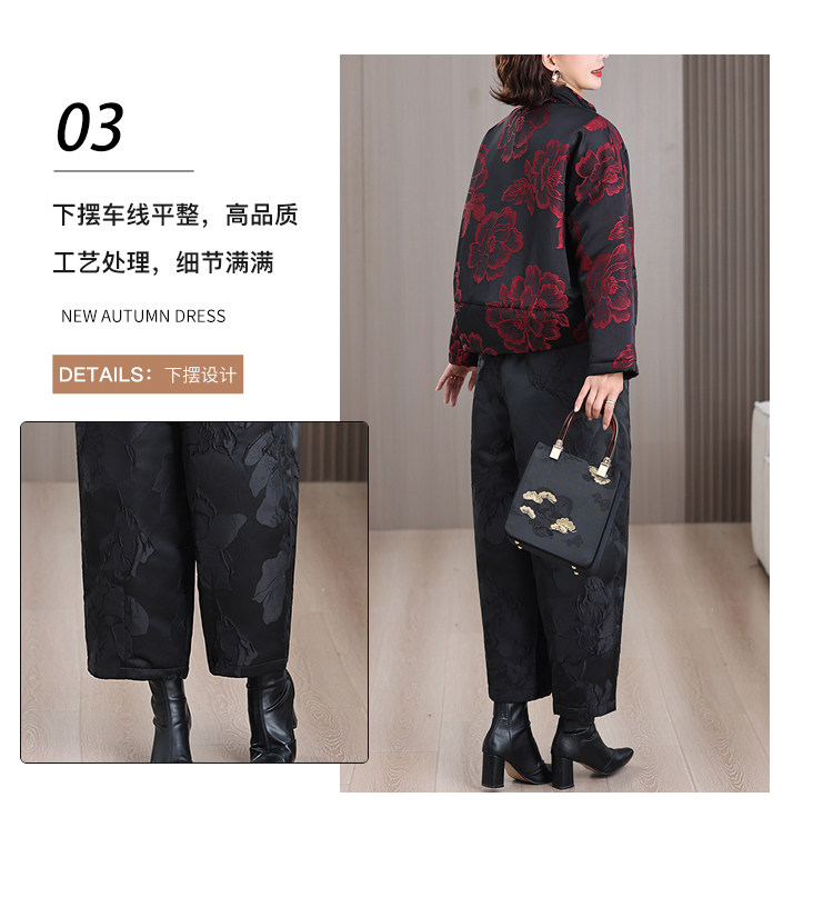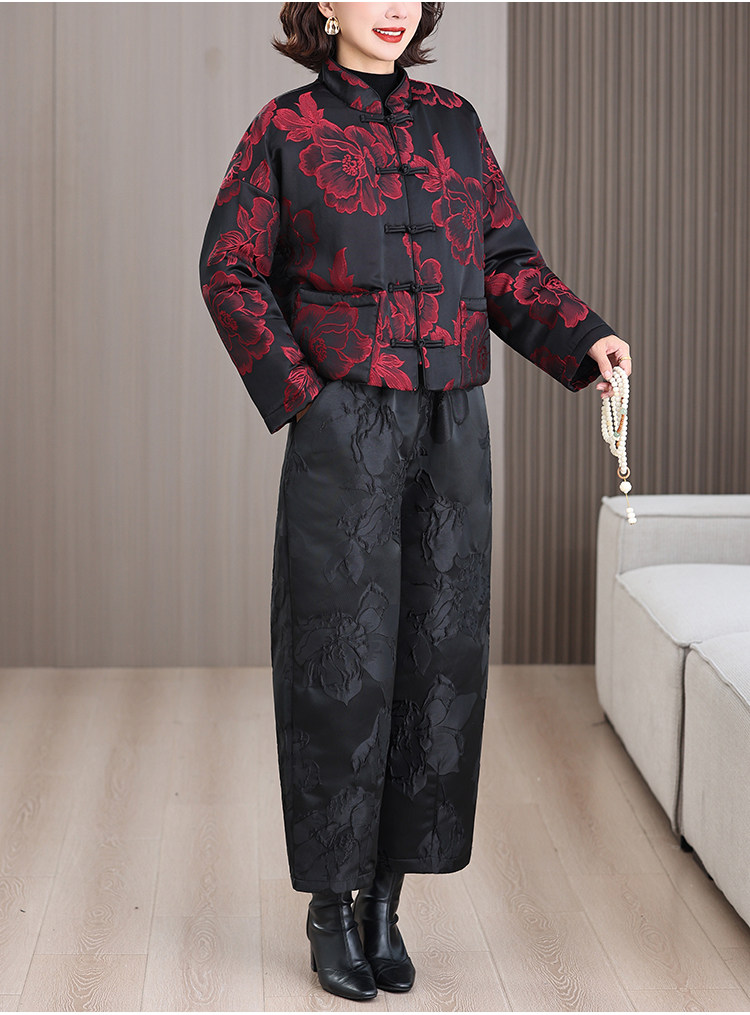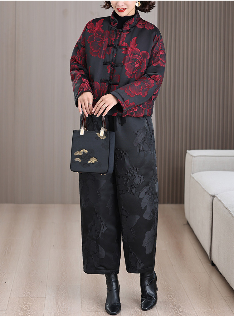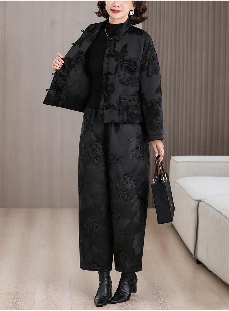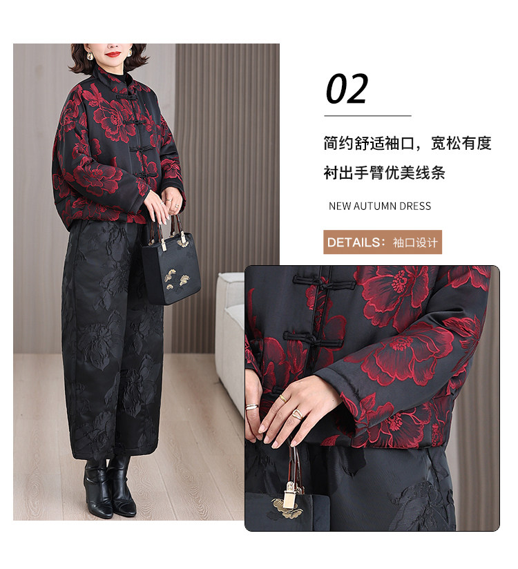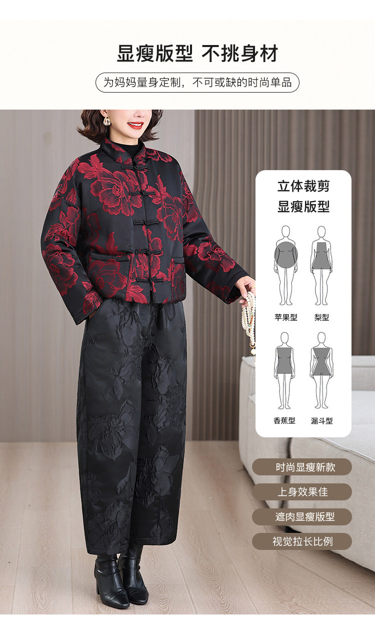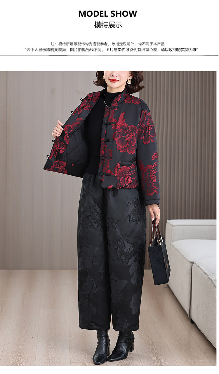 新中式国风套装妈妈装冬季夹棉加厚汉服唐装阔腿裤两件套复古女装