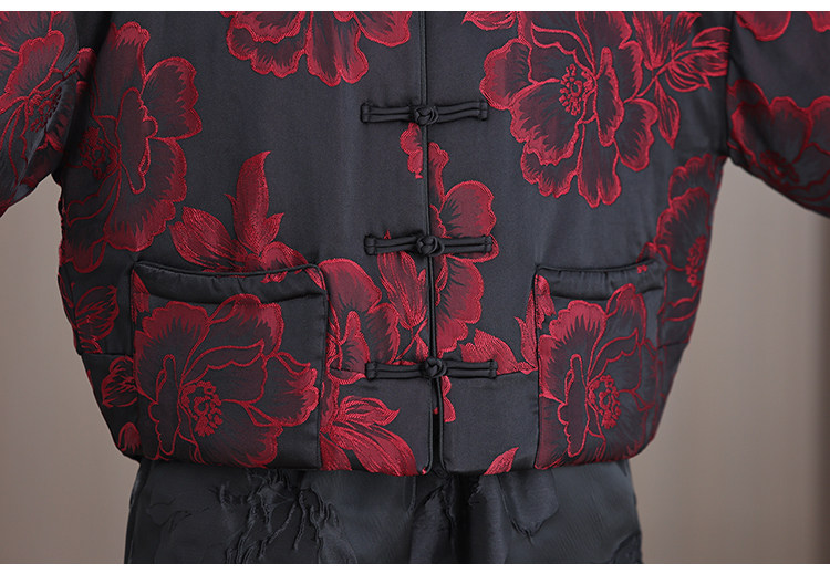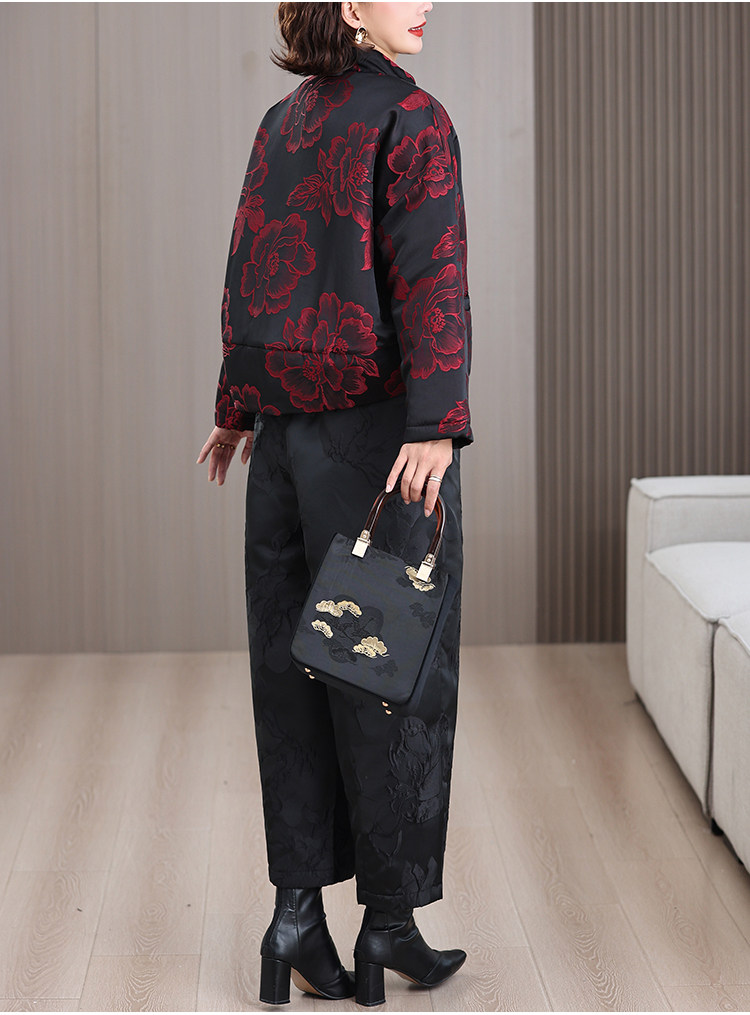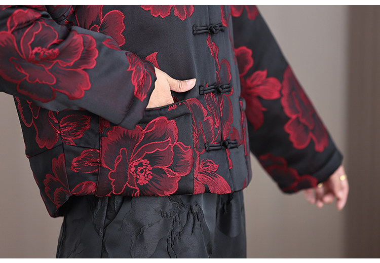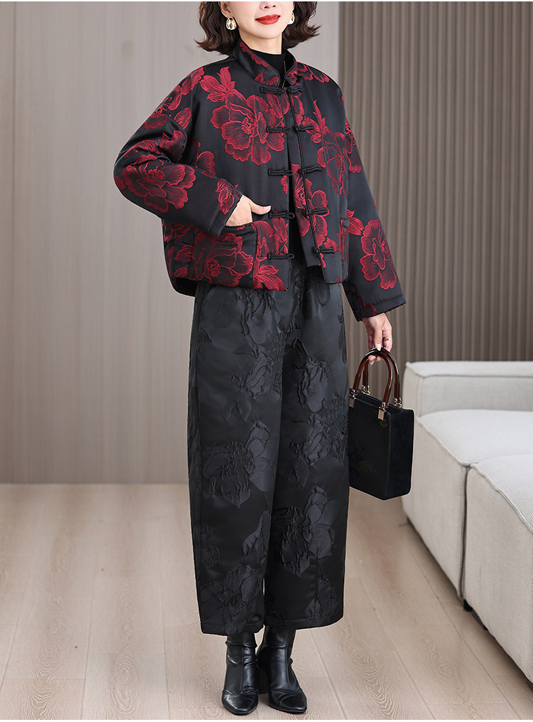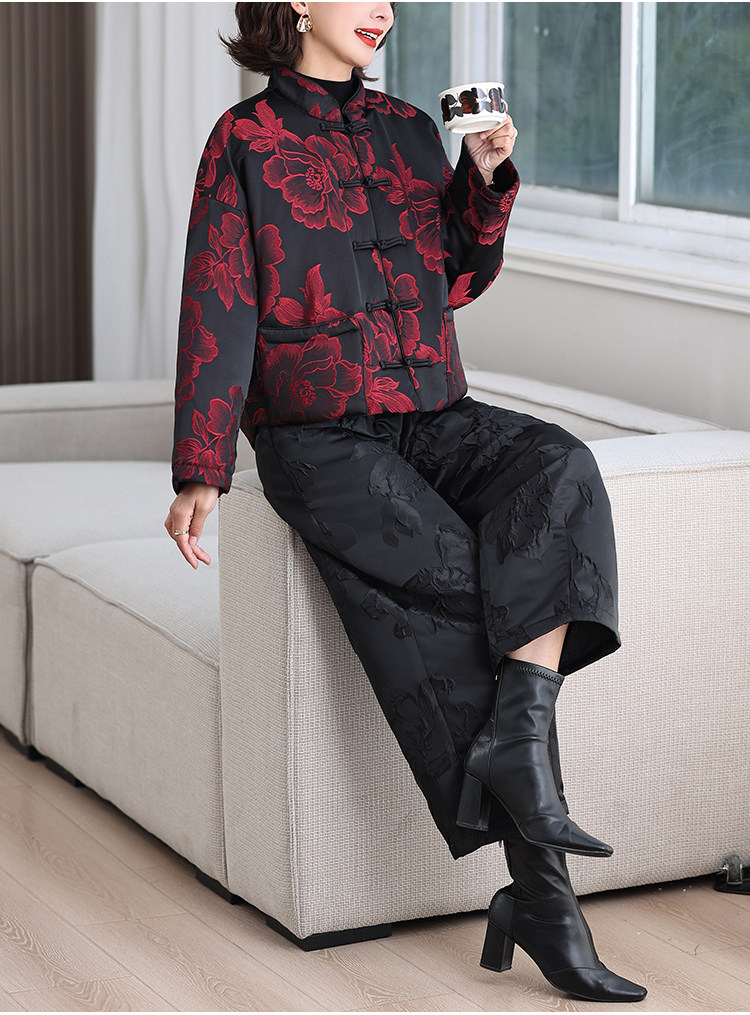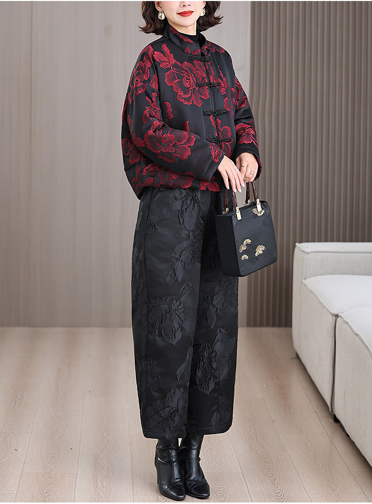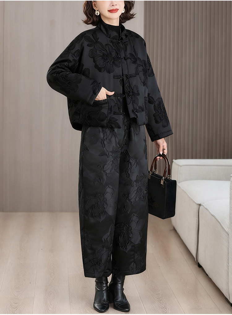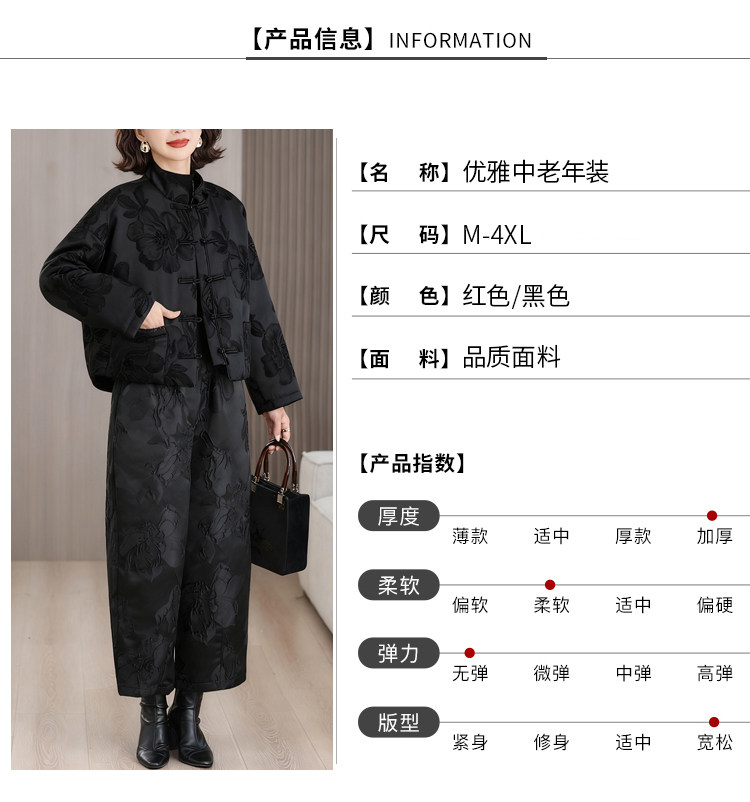 新中式国风套装妈妈装冬季夹棉加厚汉服唐装阔腿裤两件套复古女装