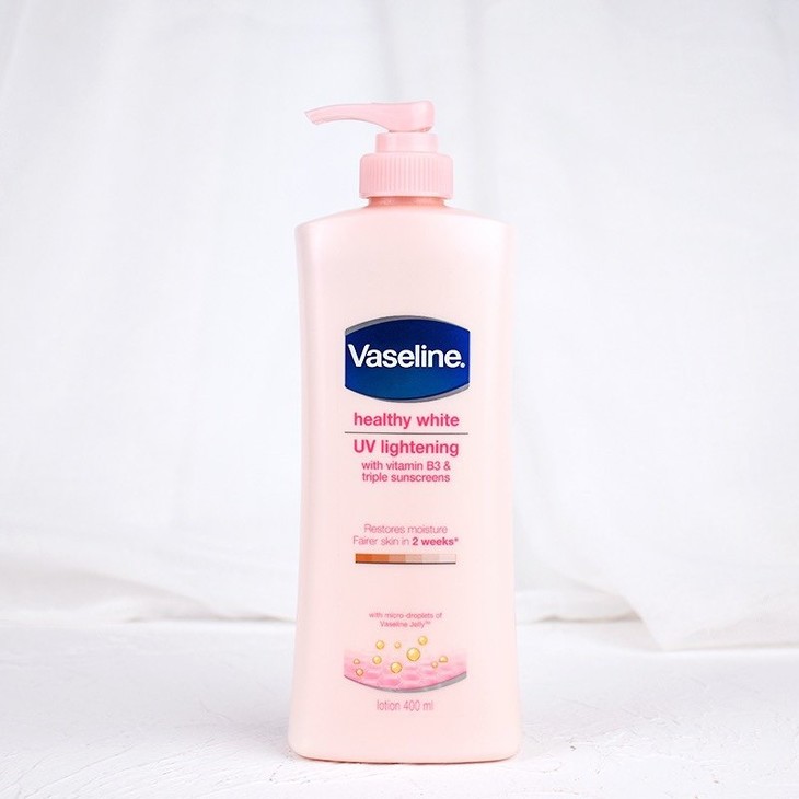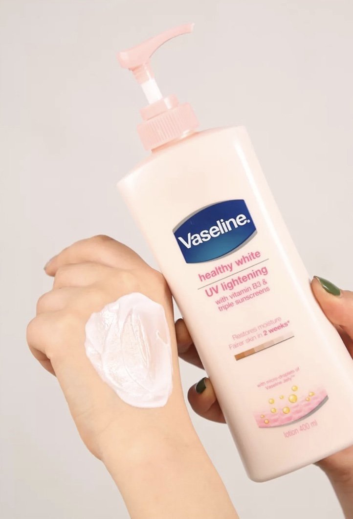 凡士林亮白修护身体乳400ml👍白菜又好用的亮白身体乳,一年四季必备‼添加了烟酰胺成分抑制黑色素的生成,白皙暗沉肌肤,提亮肤色🌟🌟,帮助肌肤角质更新,改善鸡皮问题。含有微亮因子及乳酪精华,深层滋润修复💦💦,呵护每一寸肌肤。细腻柔滑的乳液质地,吸收迅速润而不腻〰身体和脸部都可以使用哦,极力推荐给需求清爽美白保湿人群。