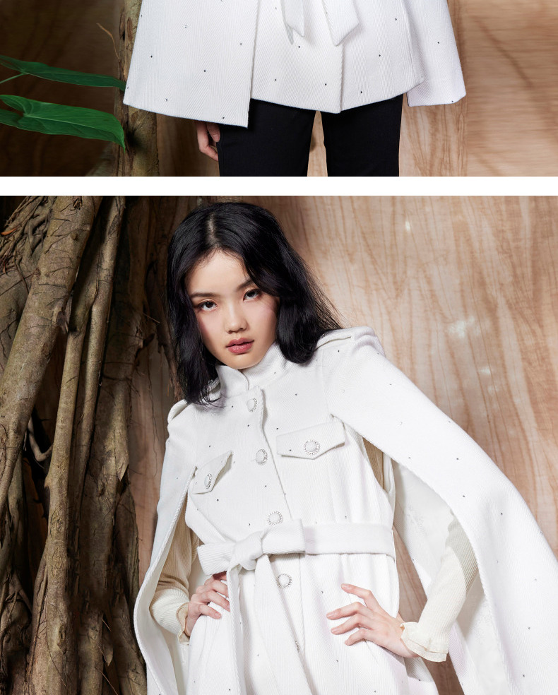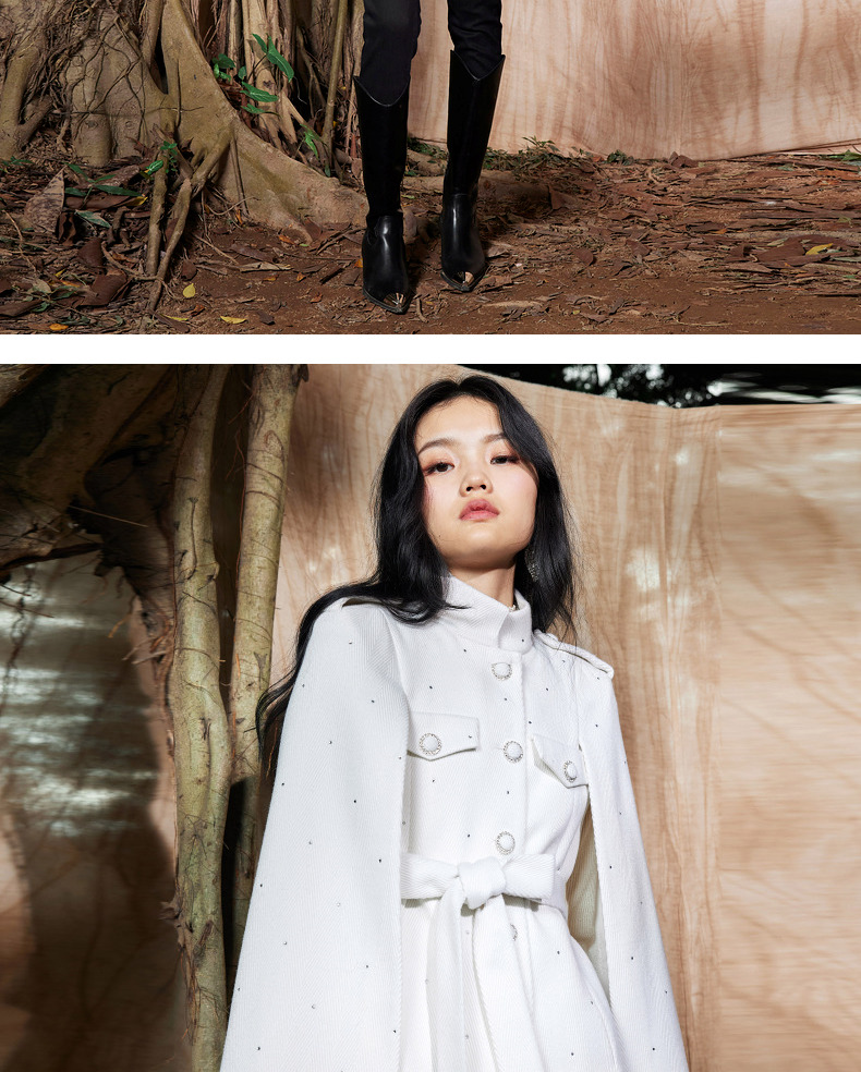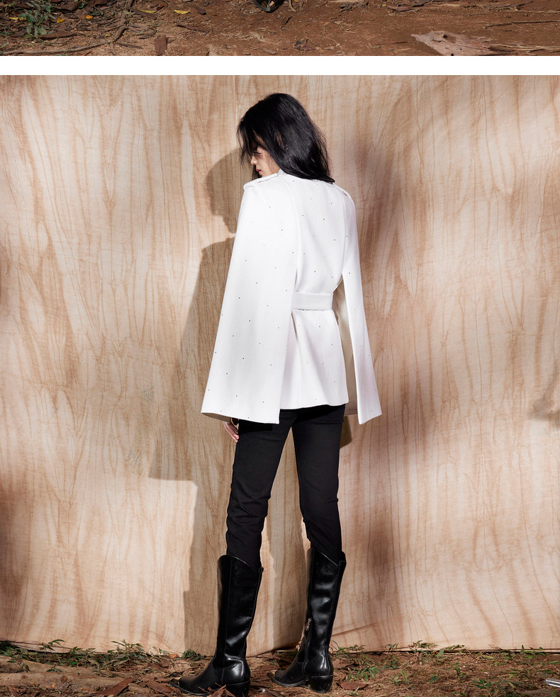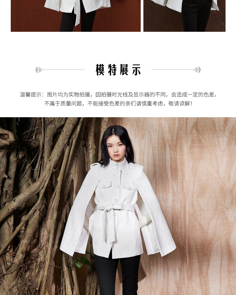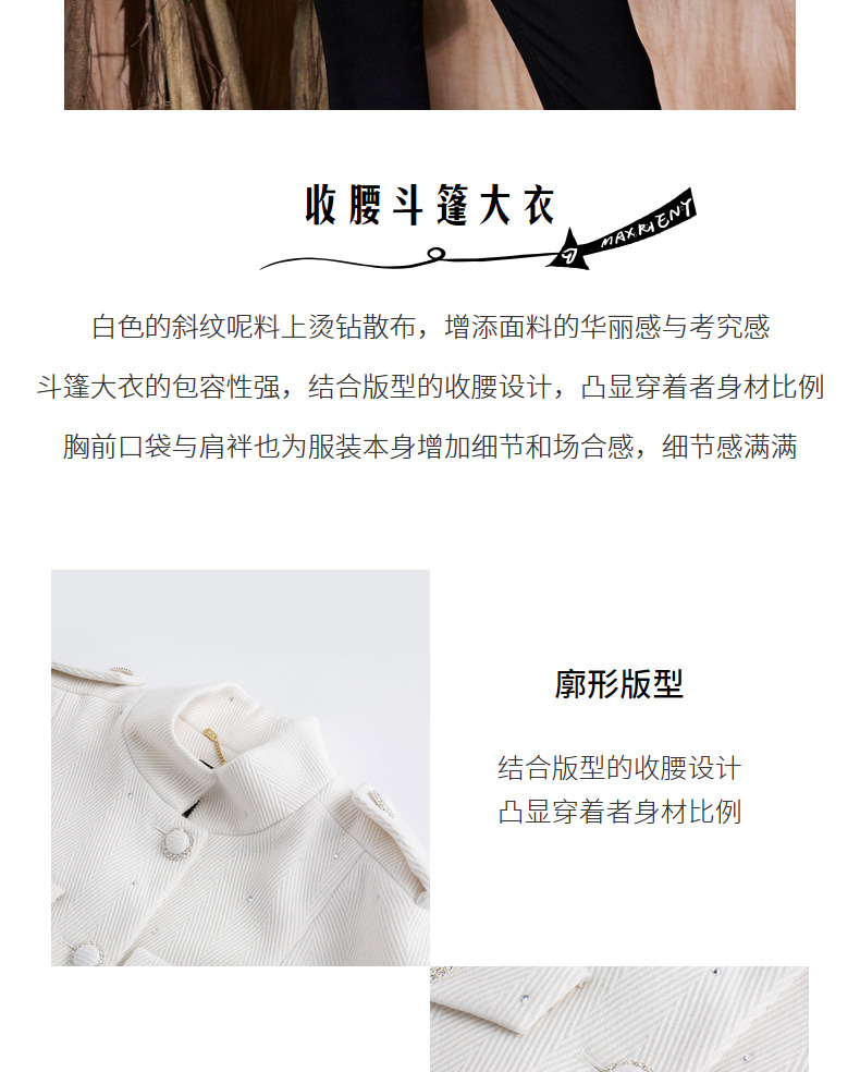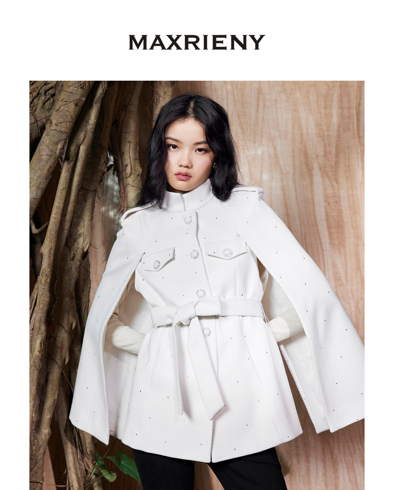 MAXRIENY收腰斗篷大衣米白色秋装廓形复古风衣女(货号:MC87CT756)