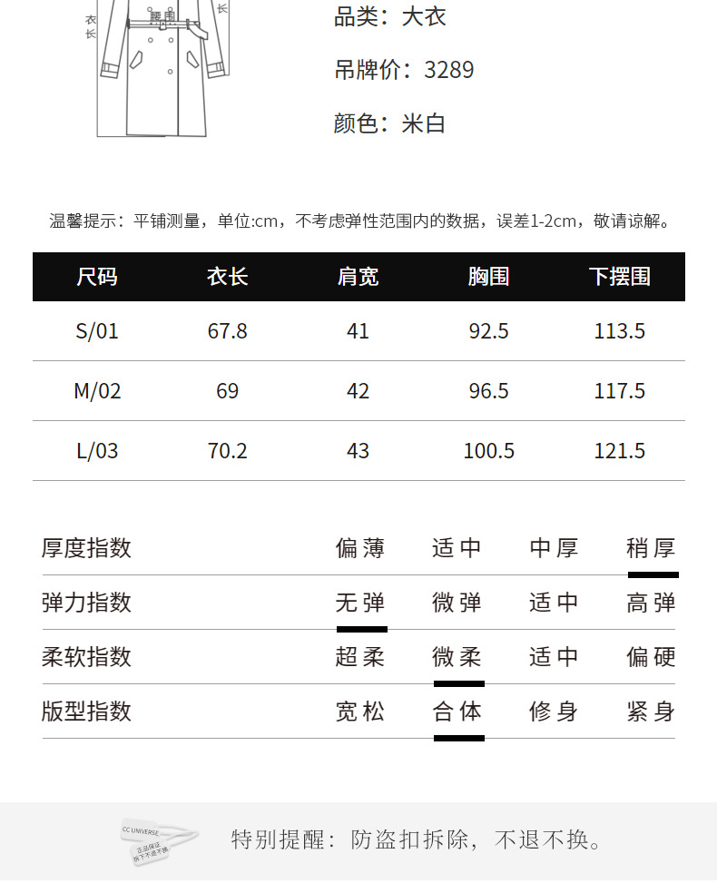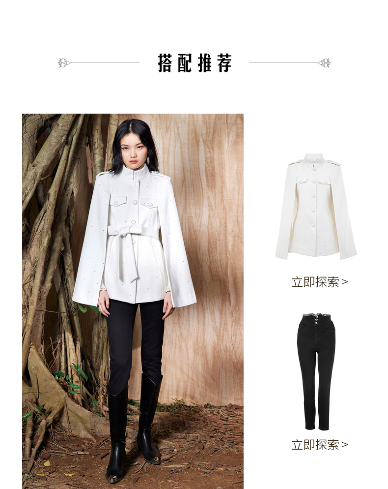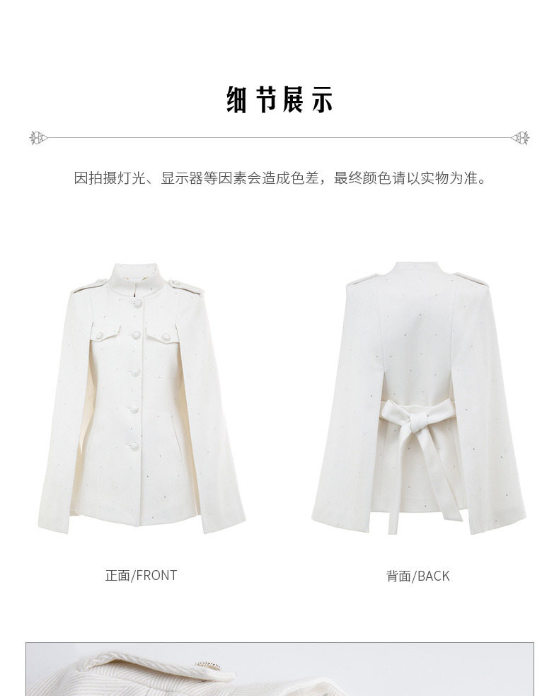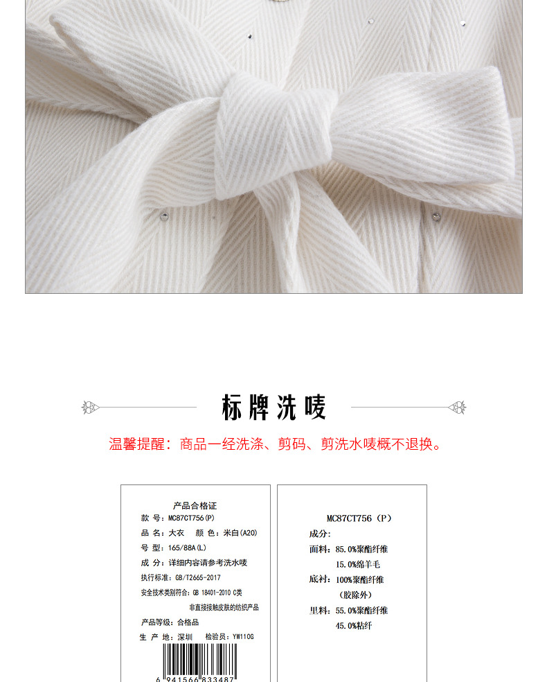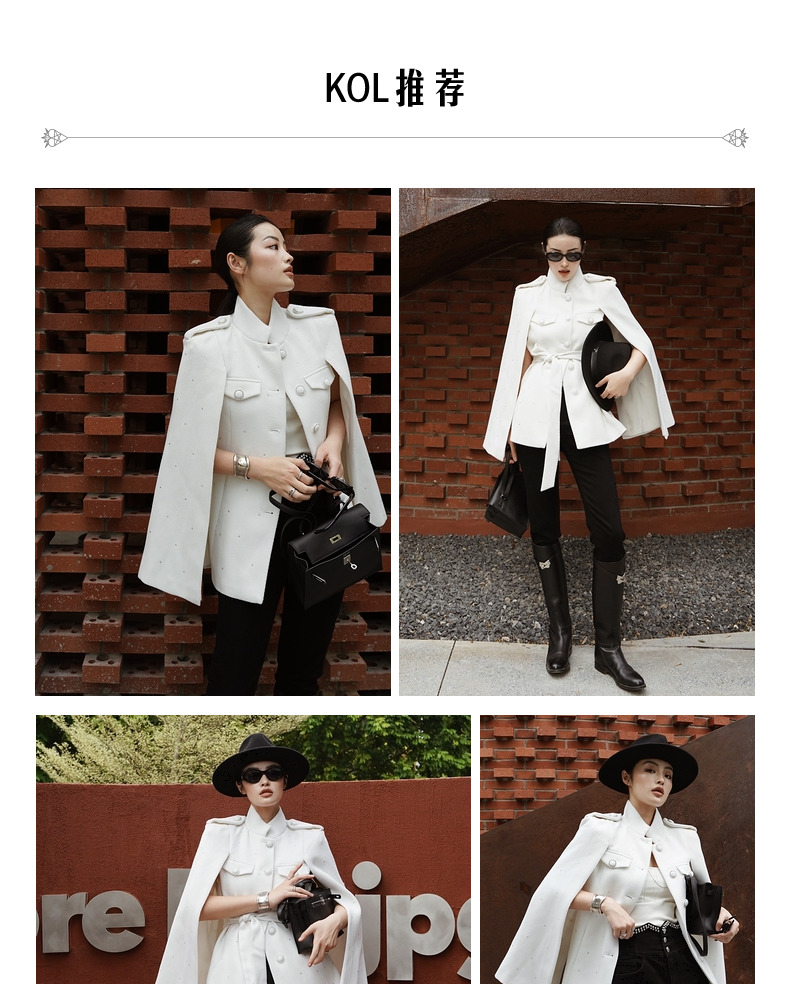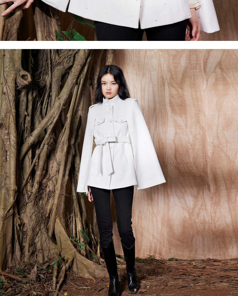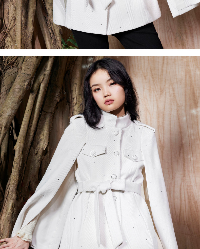 MAXRIENY收腰斗篷大衣米白色秋装廓形复古风衣女(货号:MC87CT756)