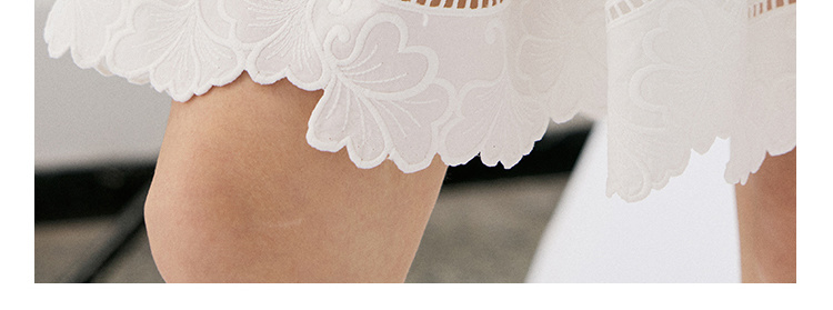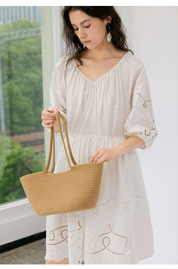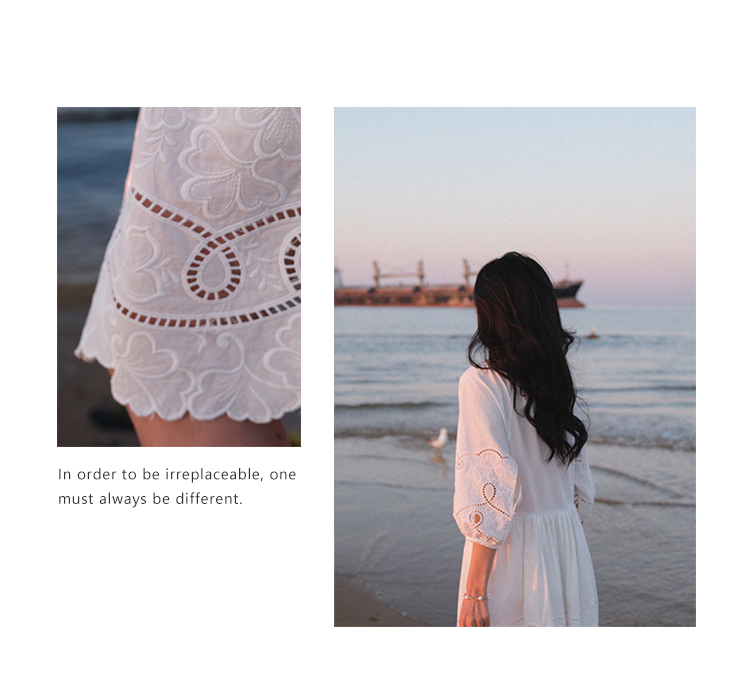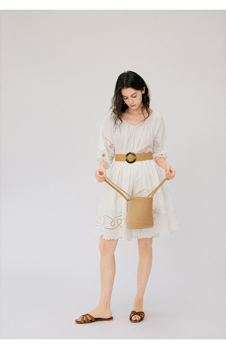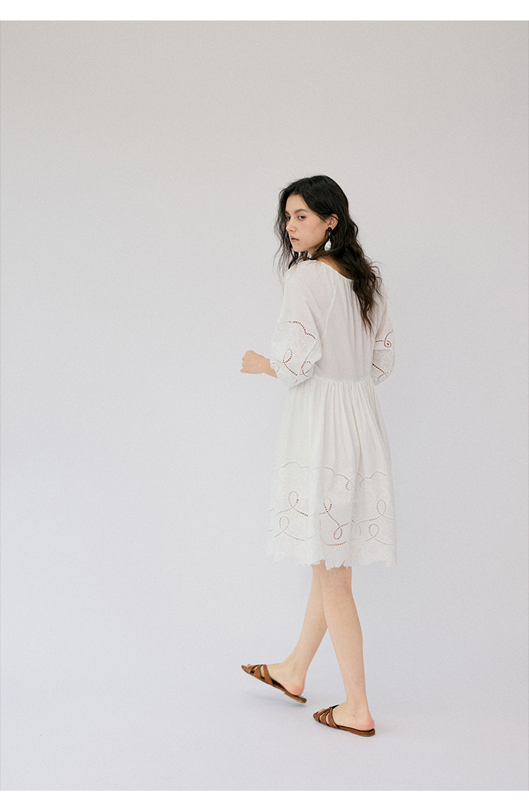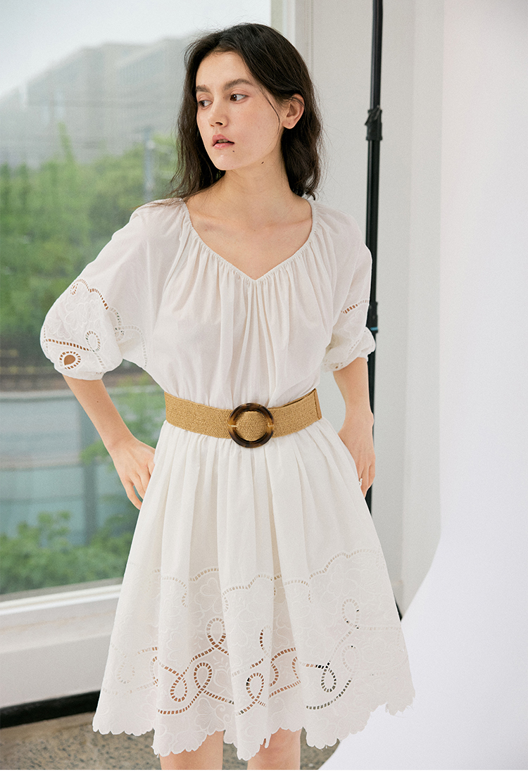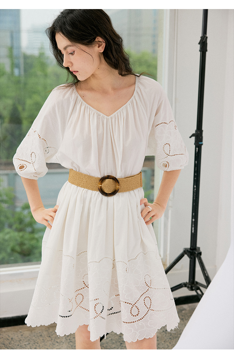 HeyDress白色刺绣连衣裙女夏季法式收腰重工马德拉绣花浪漫度假裙