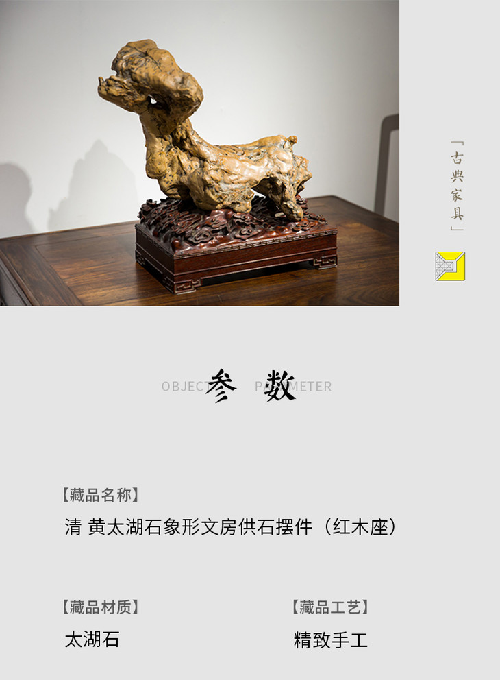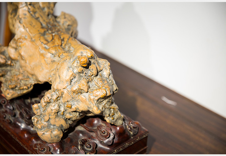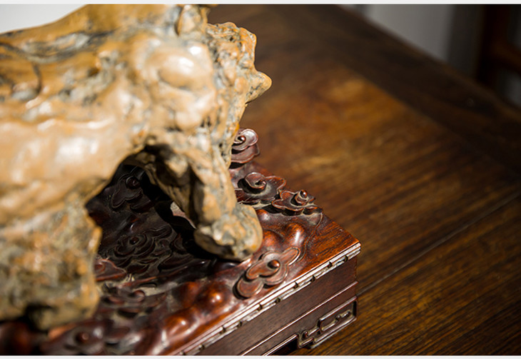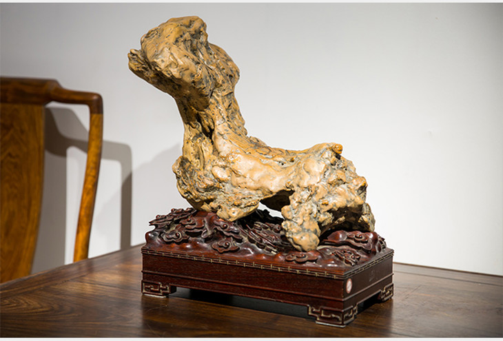 清代 太湖石象形文房供石摆件(红木座)