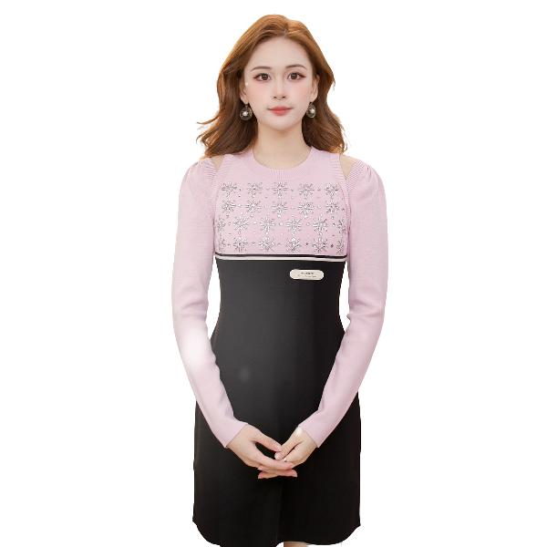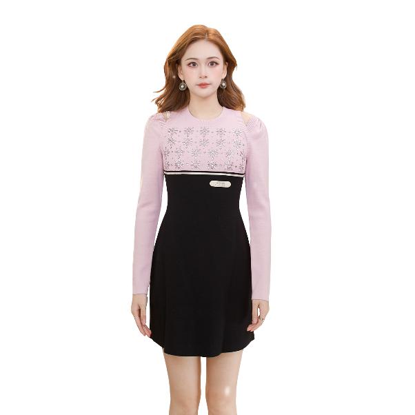 MAXRIENY千金名媛风连衣裙24冬新款精致法式小香针织裙子收腰显瘦(货号:MF85DR757)