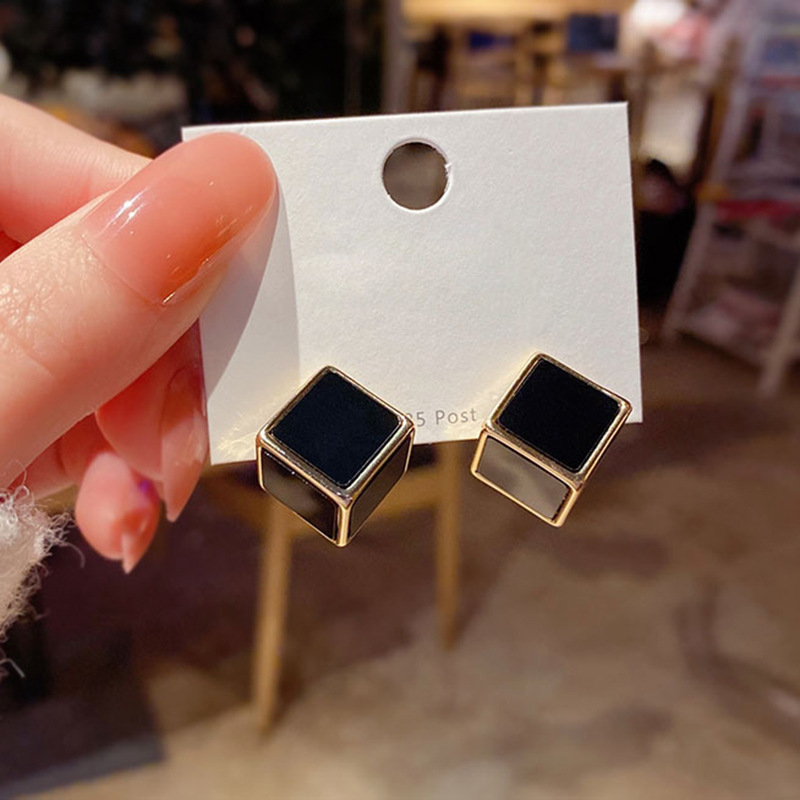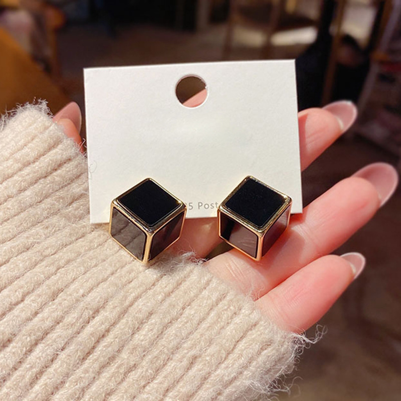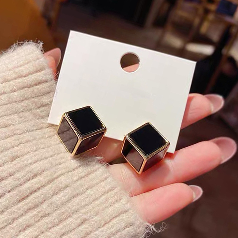 JU-A3218新款韩国简约气质几何黑色耳钉女个性小众立体耳环网红耳饰