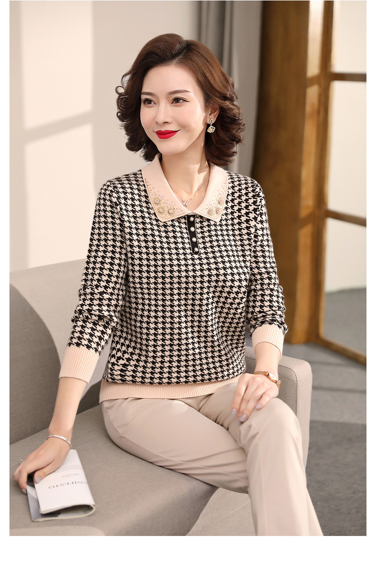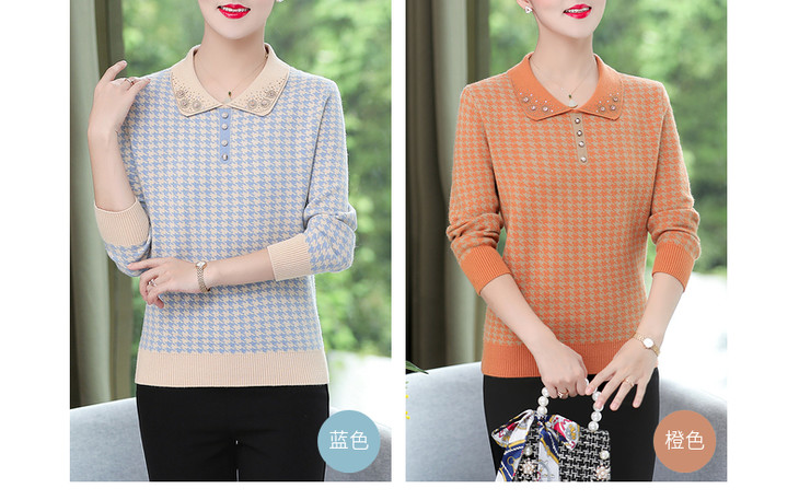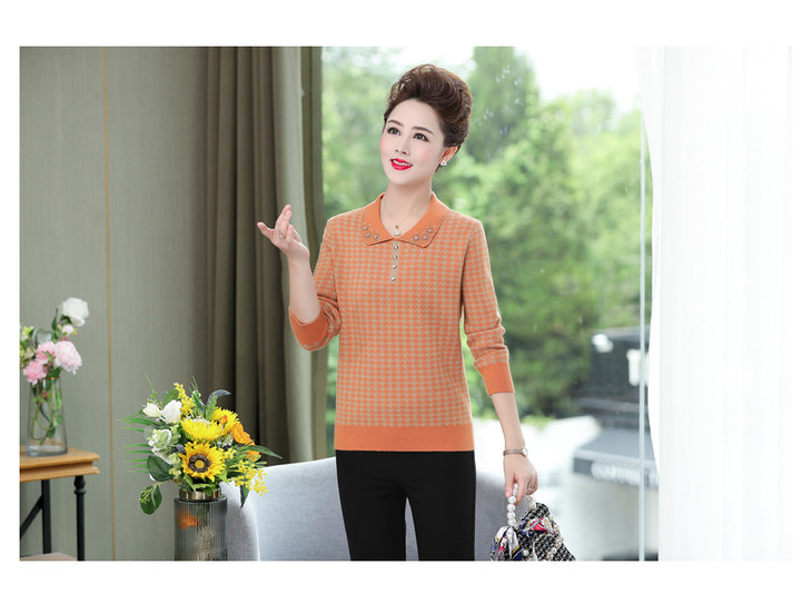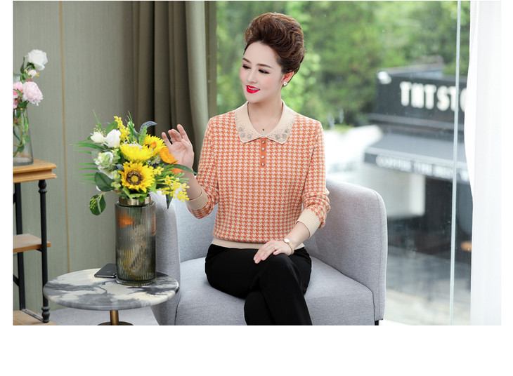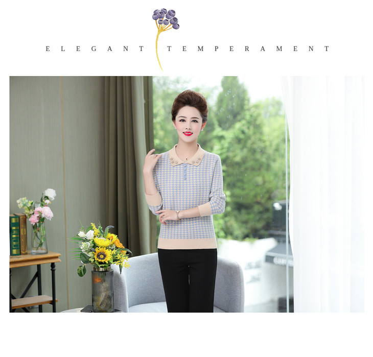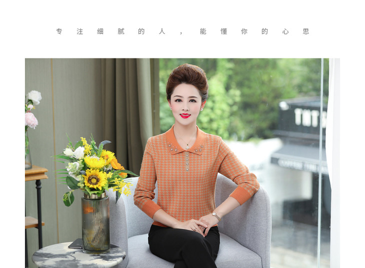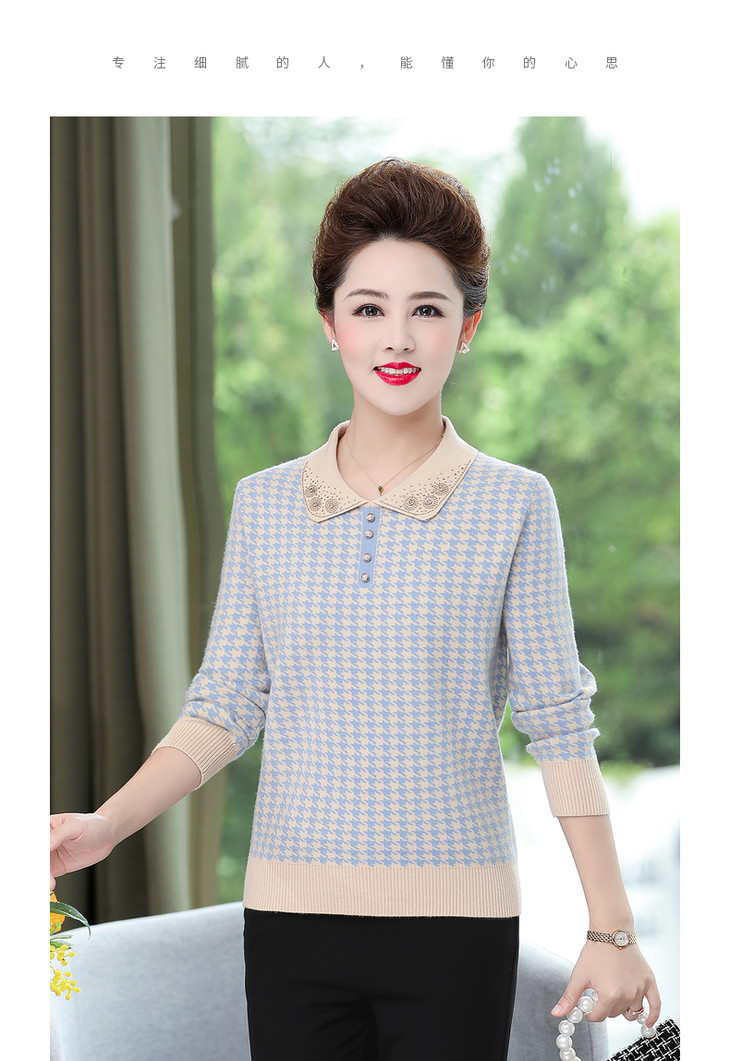 QLHK11C8803 2021新款妈妈洋气上衣中年女装春秋装打底小衫中老年春装针织