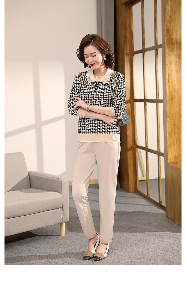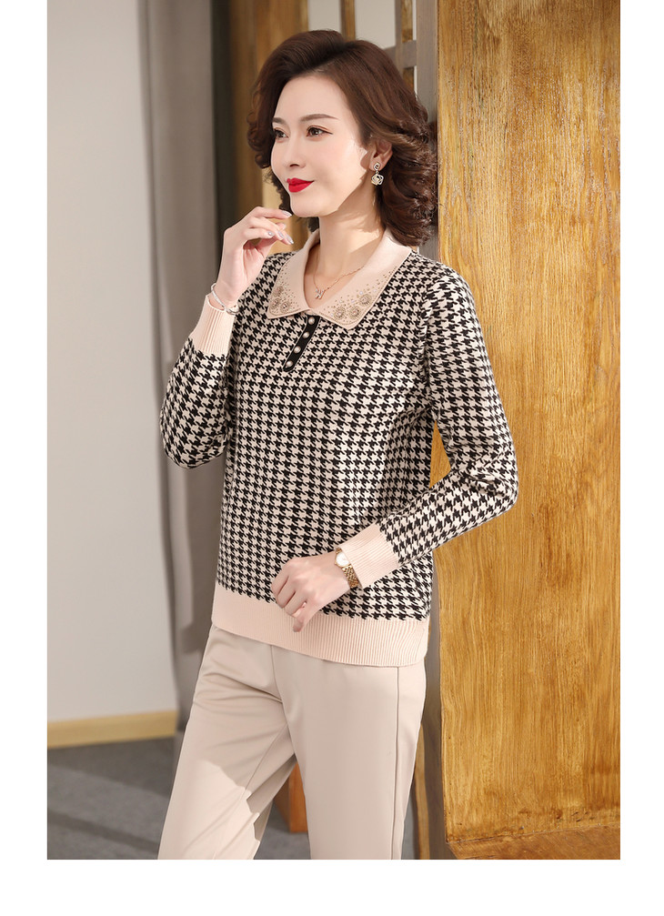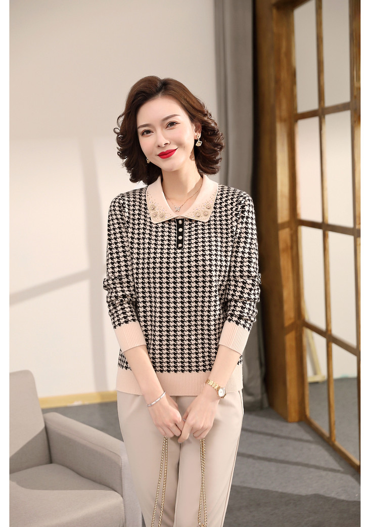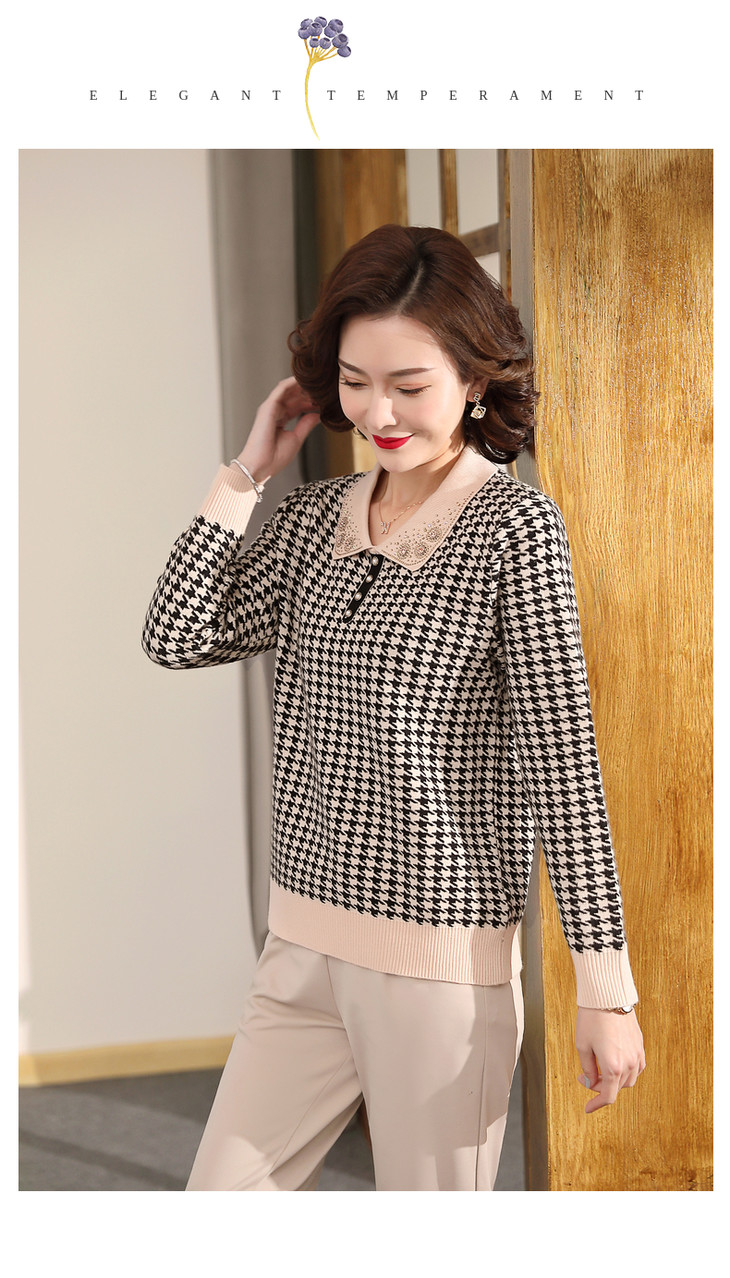QLHK11C8803 2021新款妈妈洋气上衣中年女装春秋装打底小衫中老年春装针织