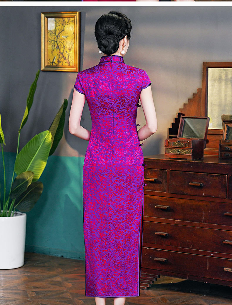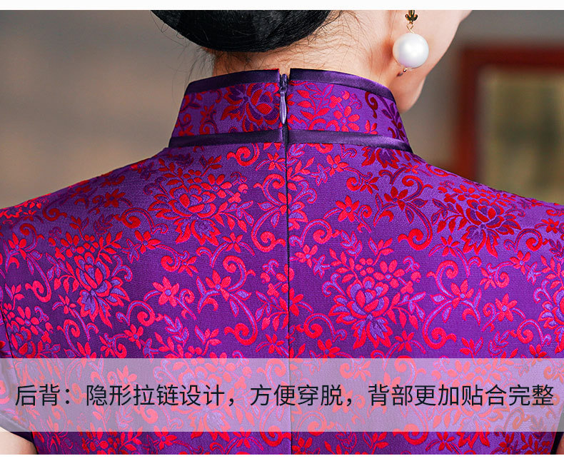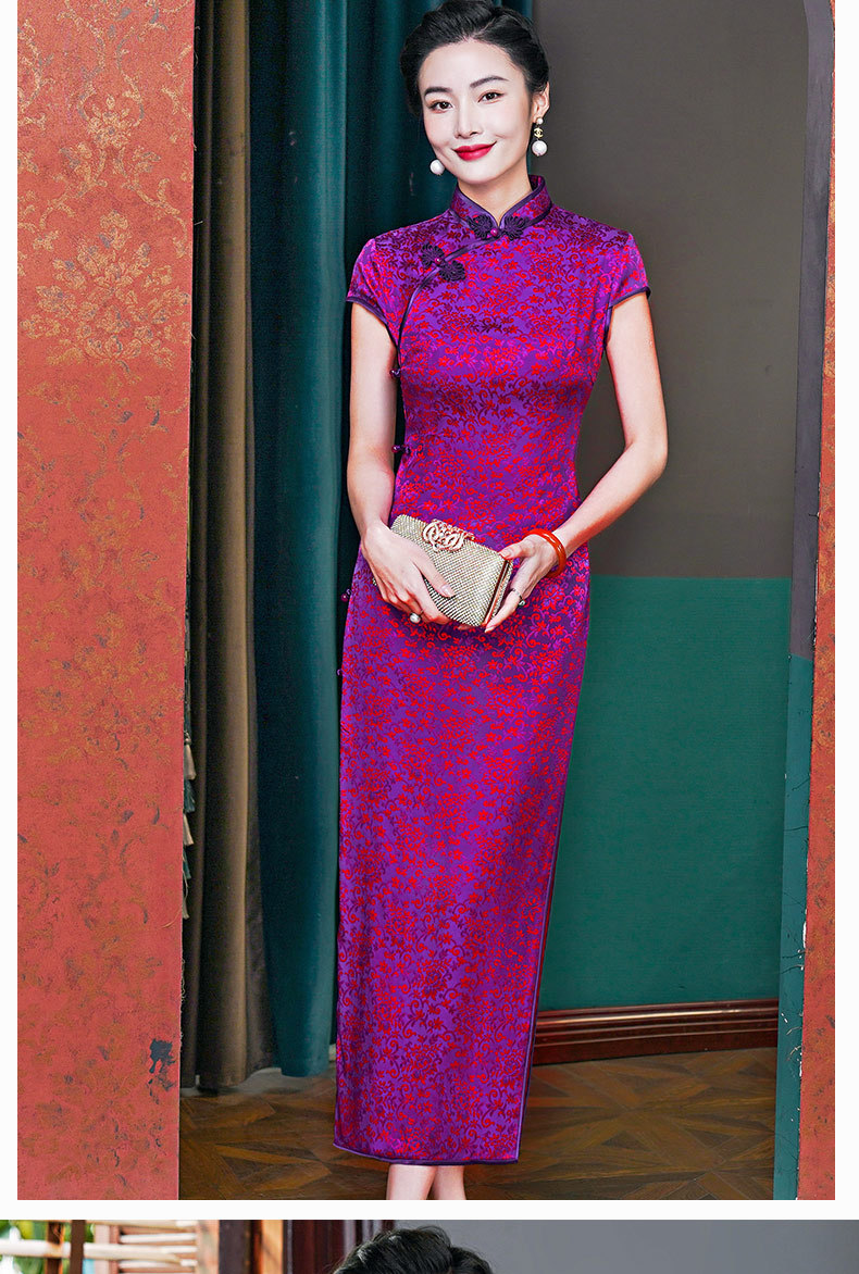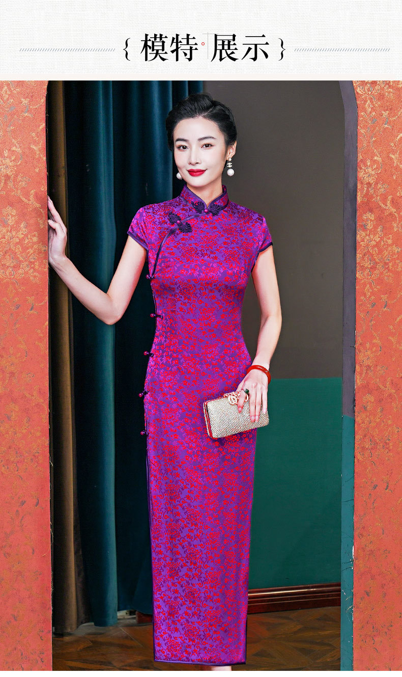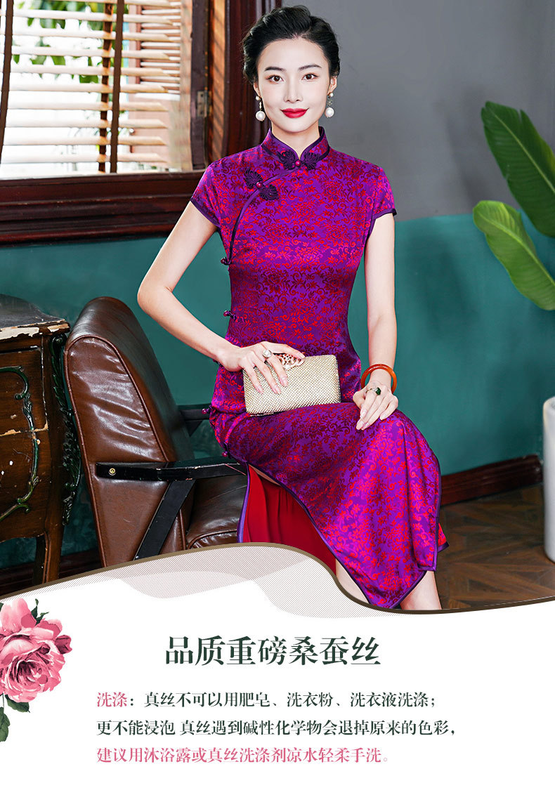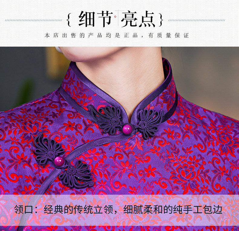 WX真丝旗袍桑蚕丝 低调档次长款时尚立领旗袍