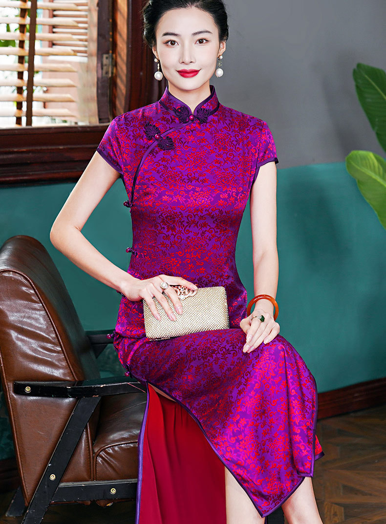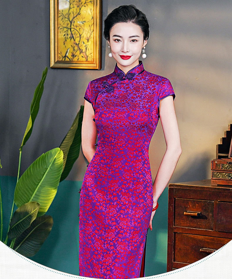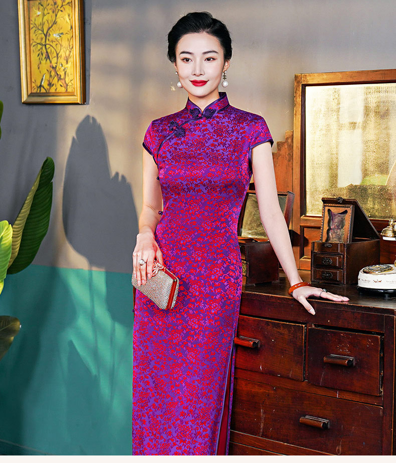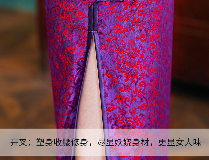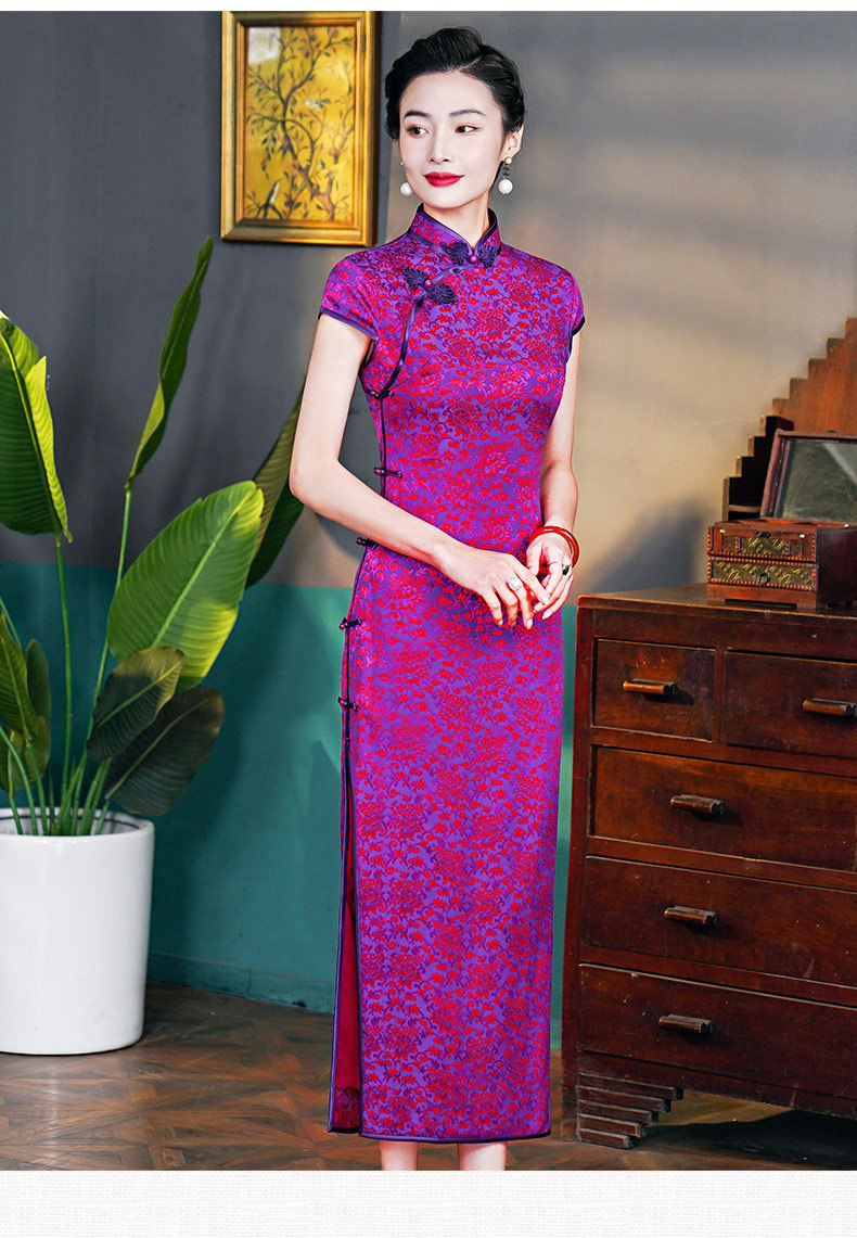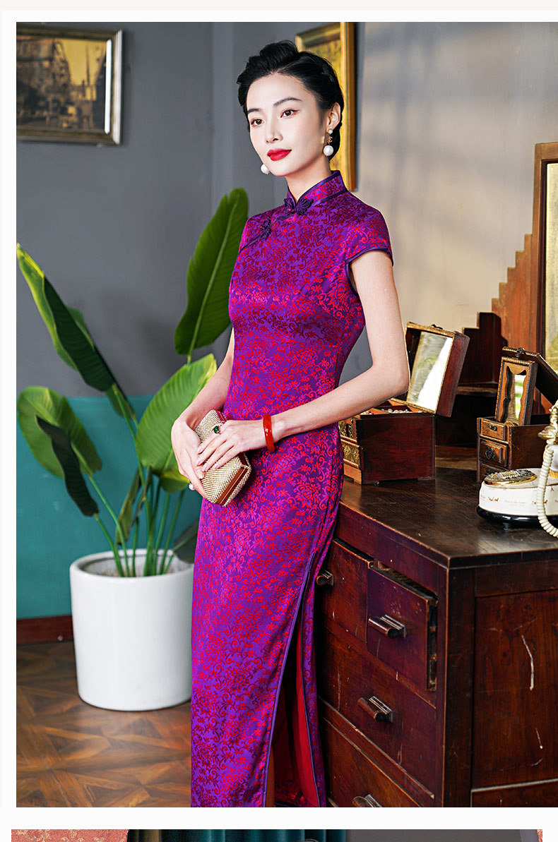 WX真丝旗袍桑蚕丝 低调档次长款时尚立领旗袍