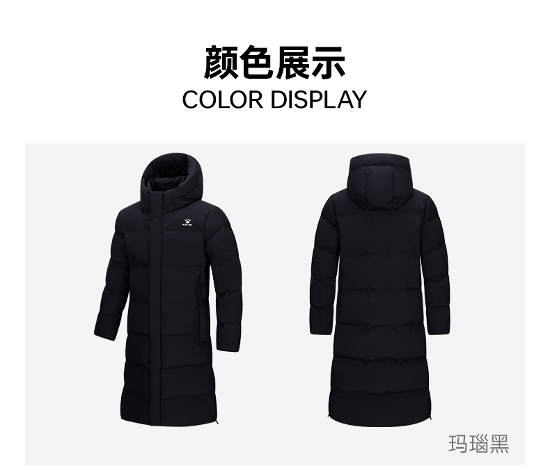 卡尔美男式冬季长款鹅绒服9543YR1220