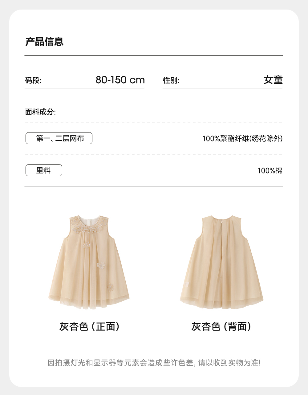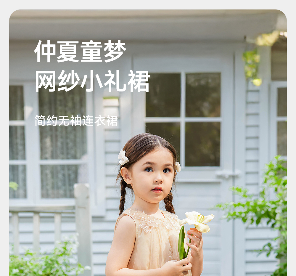 【商场同款】英氏女童裙子春夏女宝甜美网纱连衣裙2025新款背心裙