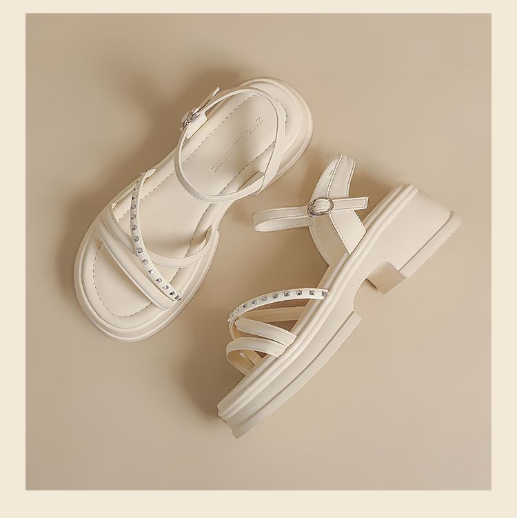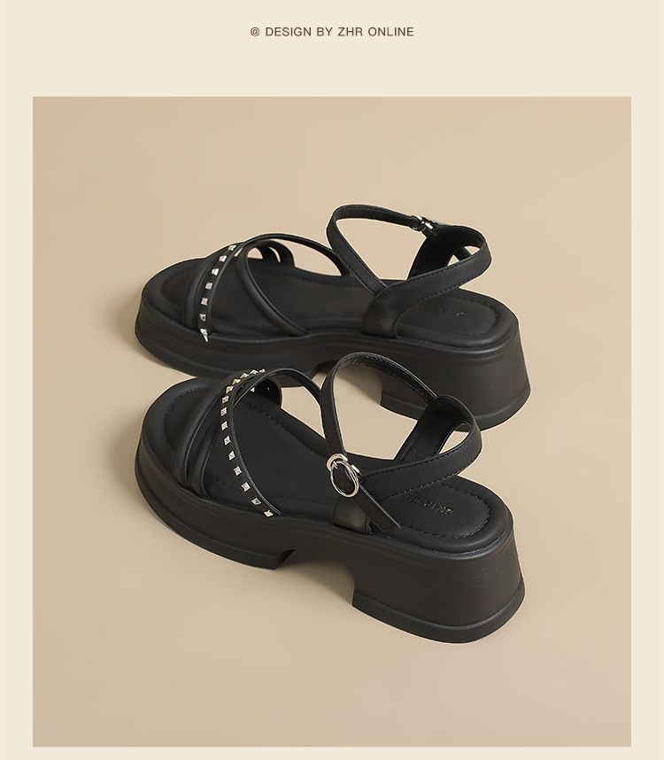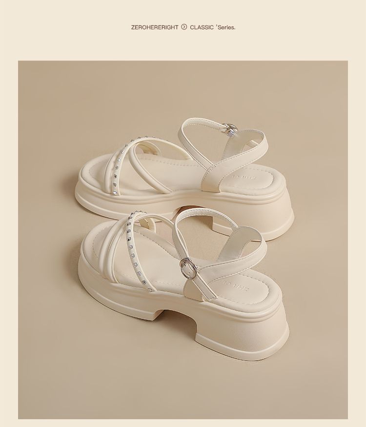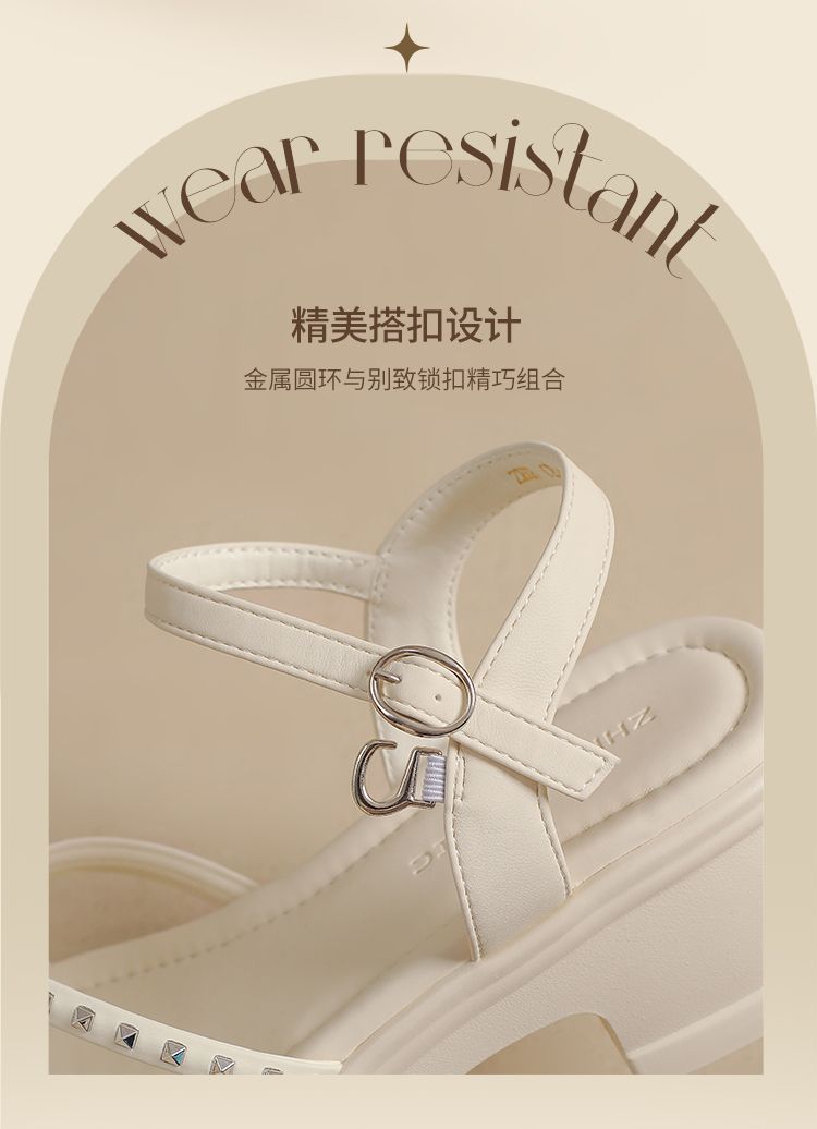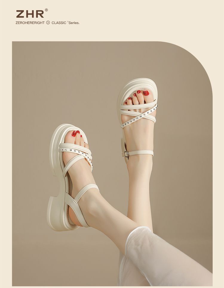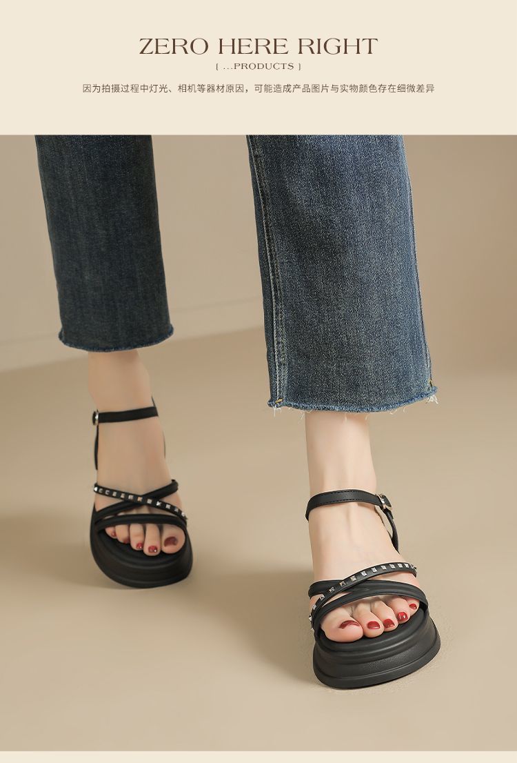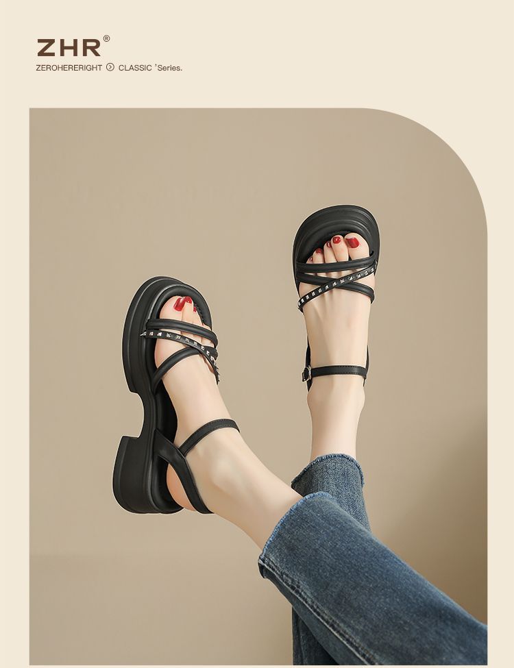ZHR则则优雅舒适厚底凉鞋女鞋2025夏季新款时髦铆钉百搭增高凉鞋