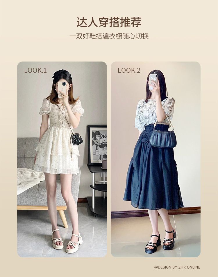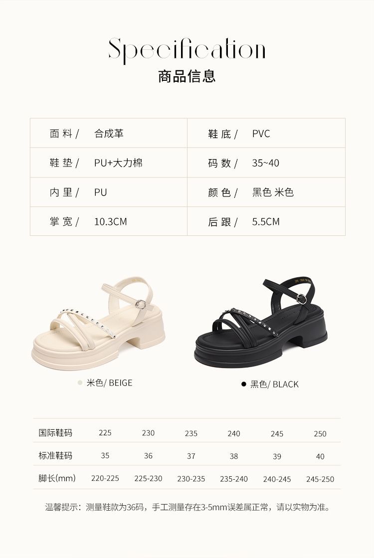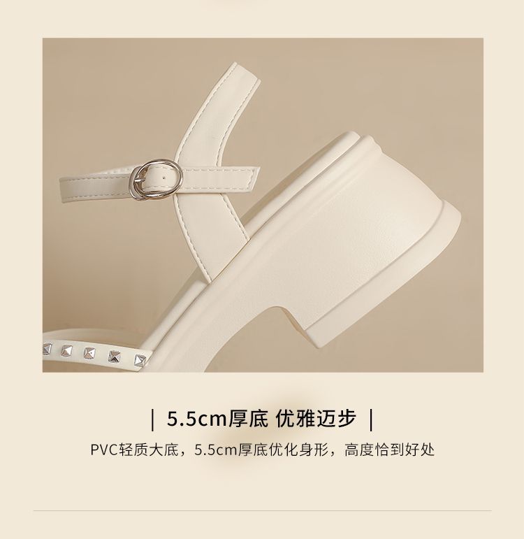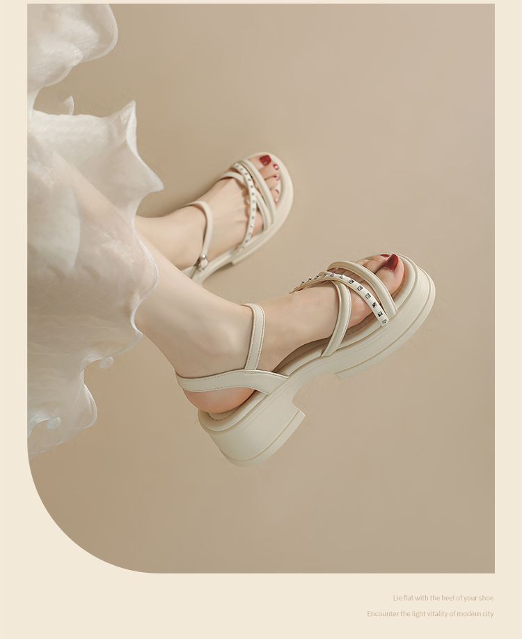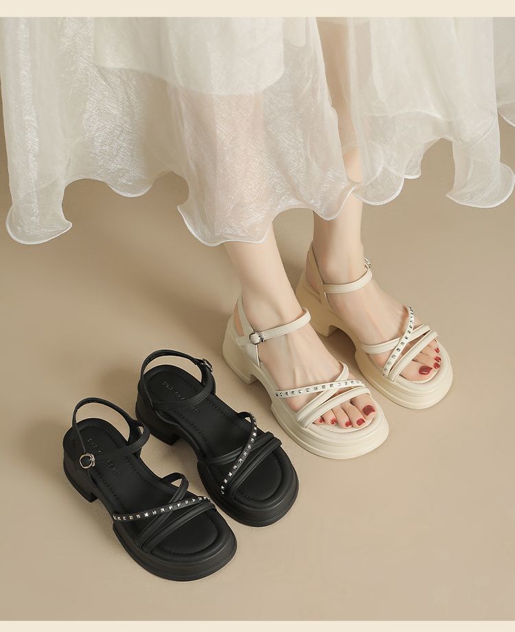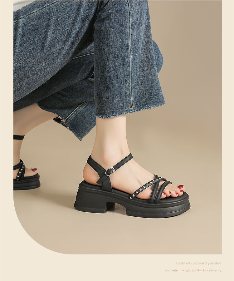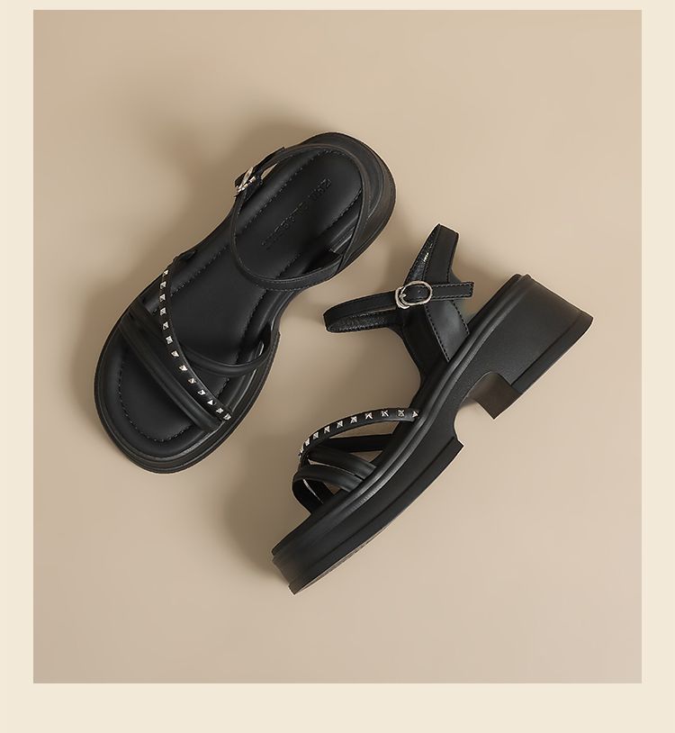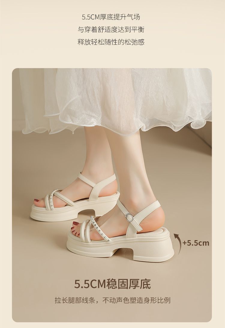 ZHR则则优雅舒适厚底凉鞋女鞋2025夏季新款时髦铆钉百搭增高凉鞋