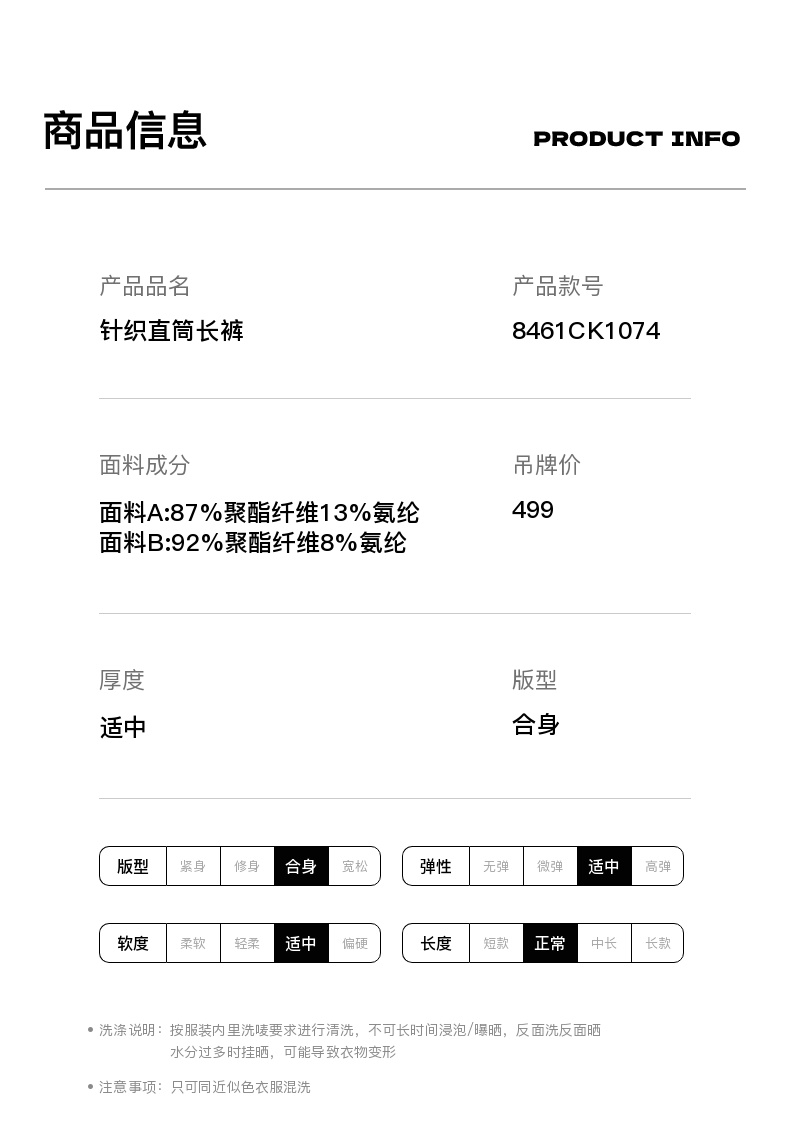 卡尔美2024新款中国系列针织直筒长裤
