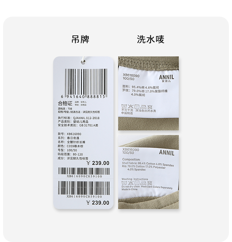 【实体店同款】男童全腰针织长裤春季新款安奈儿童装XB616090