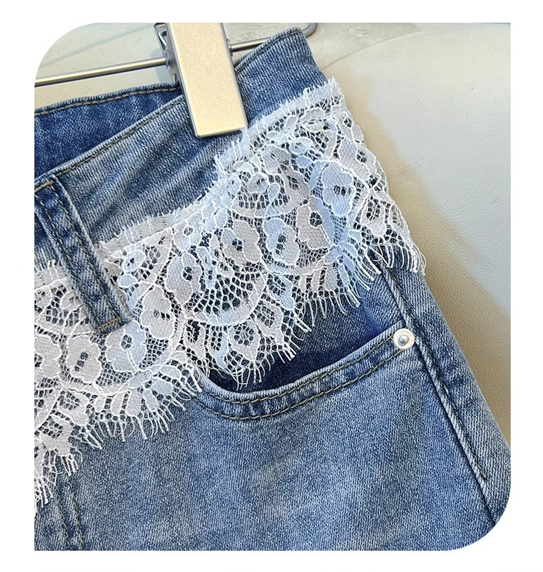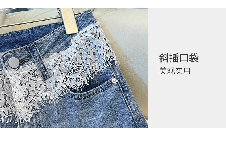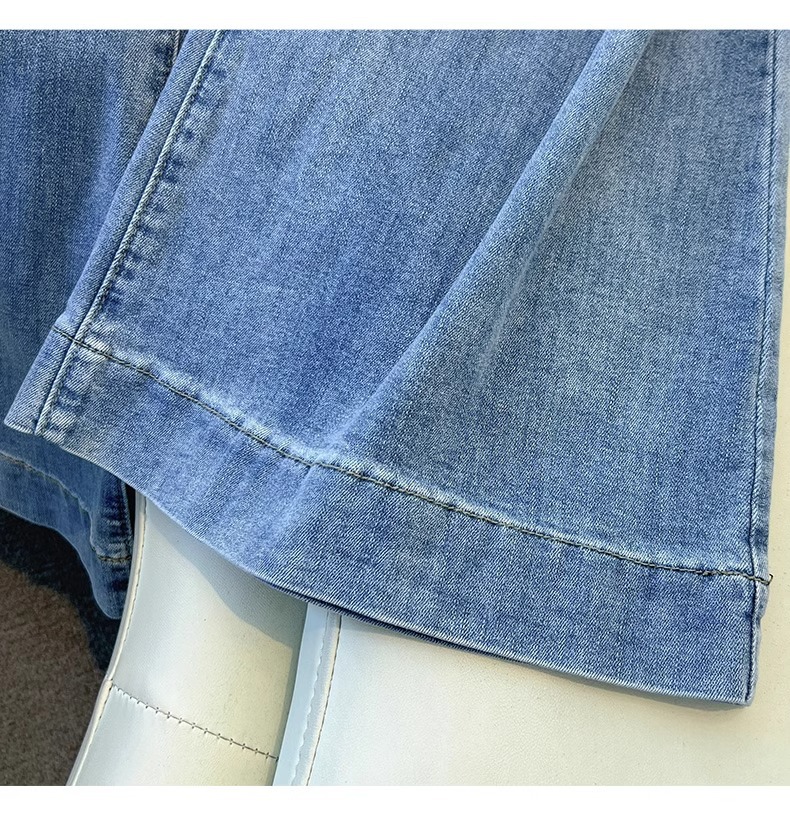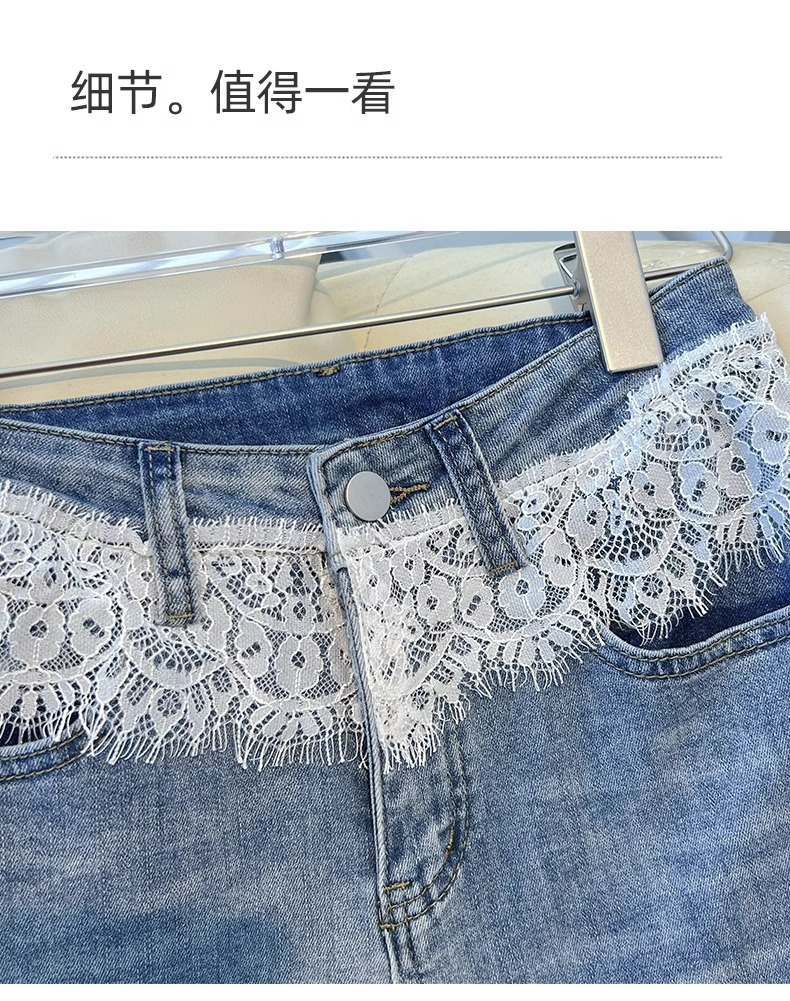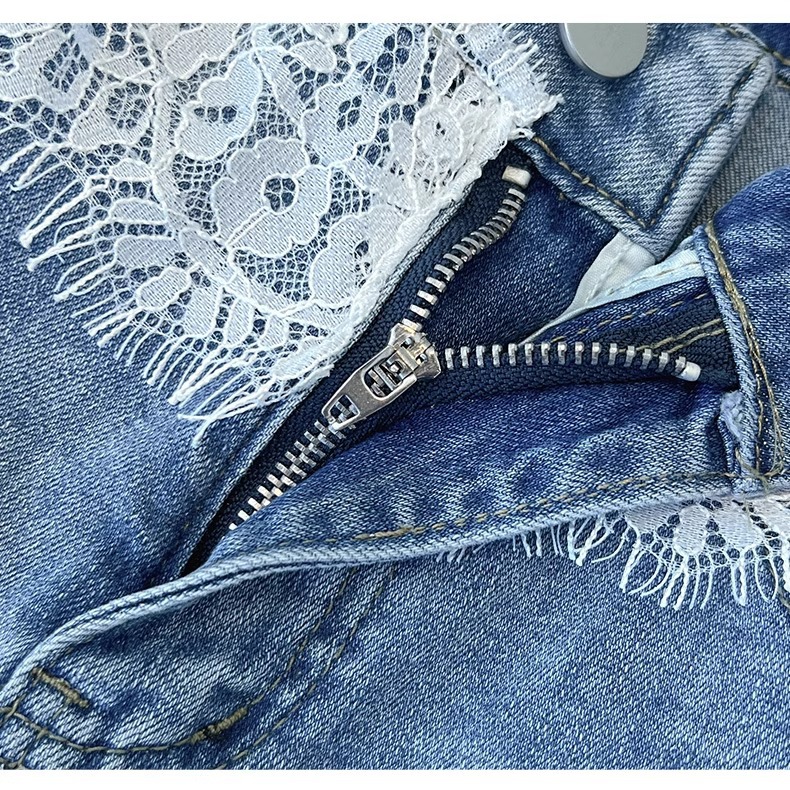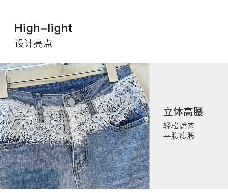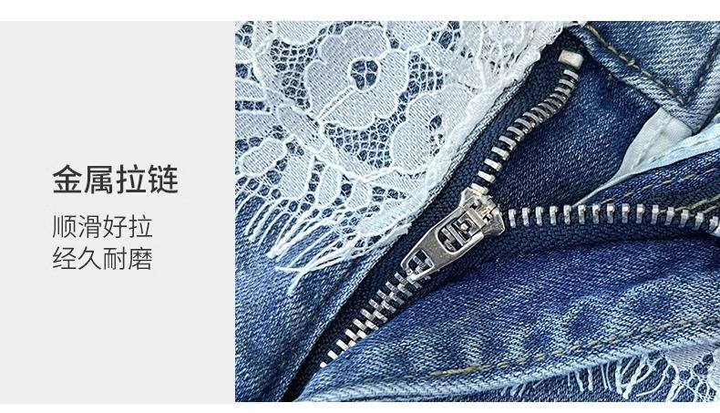 丁摩 蕾丝阔腿牛仔裤女春秋季新款高腰显瘦拖地裤垂感浅色直筒裤子5ZF-8073