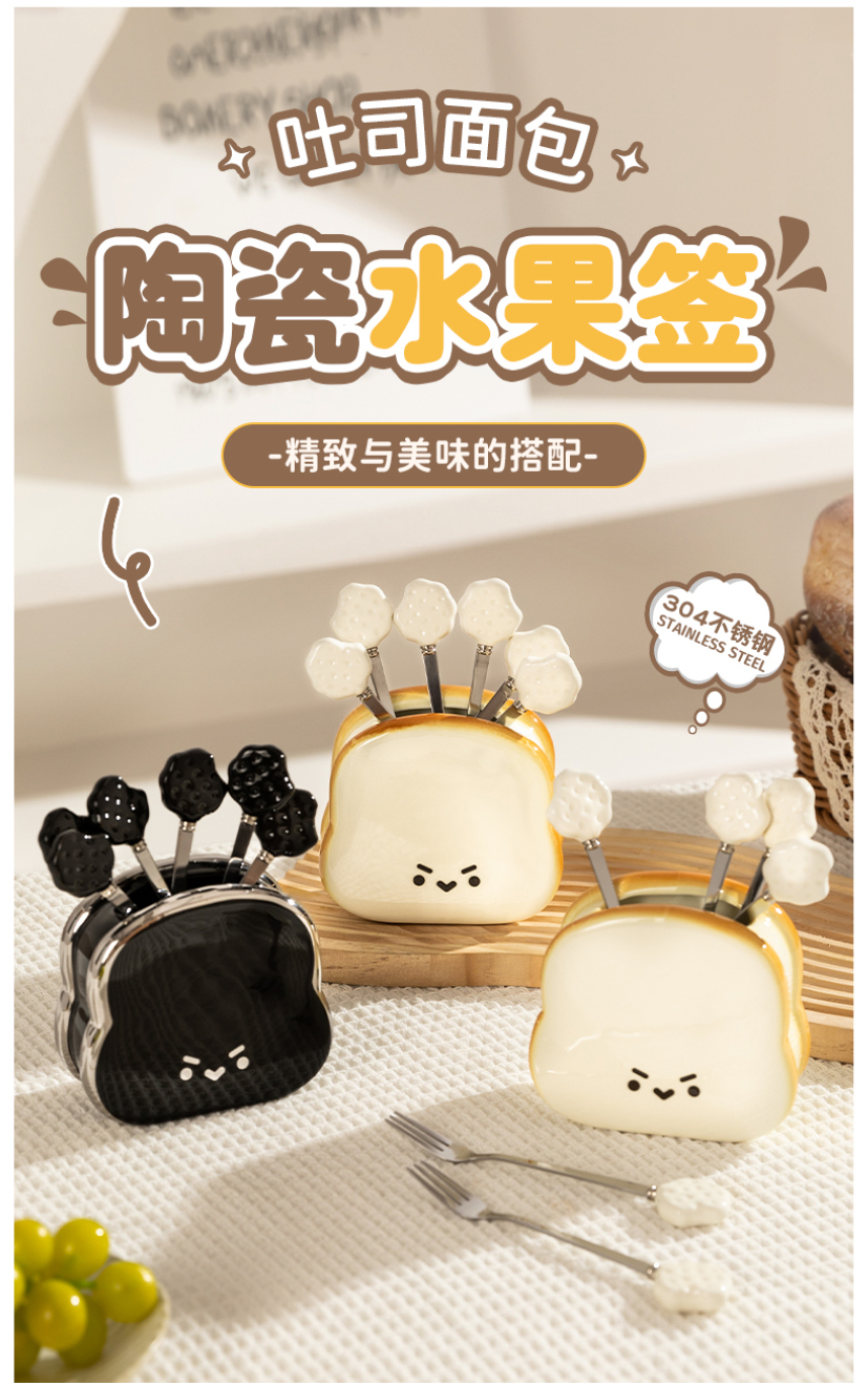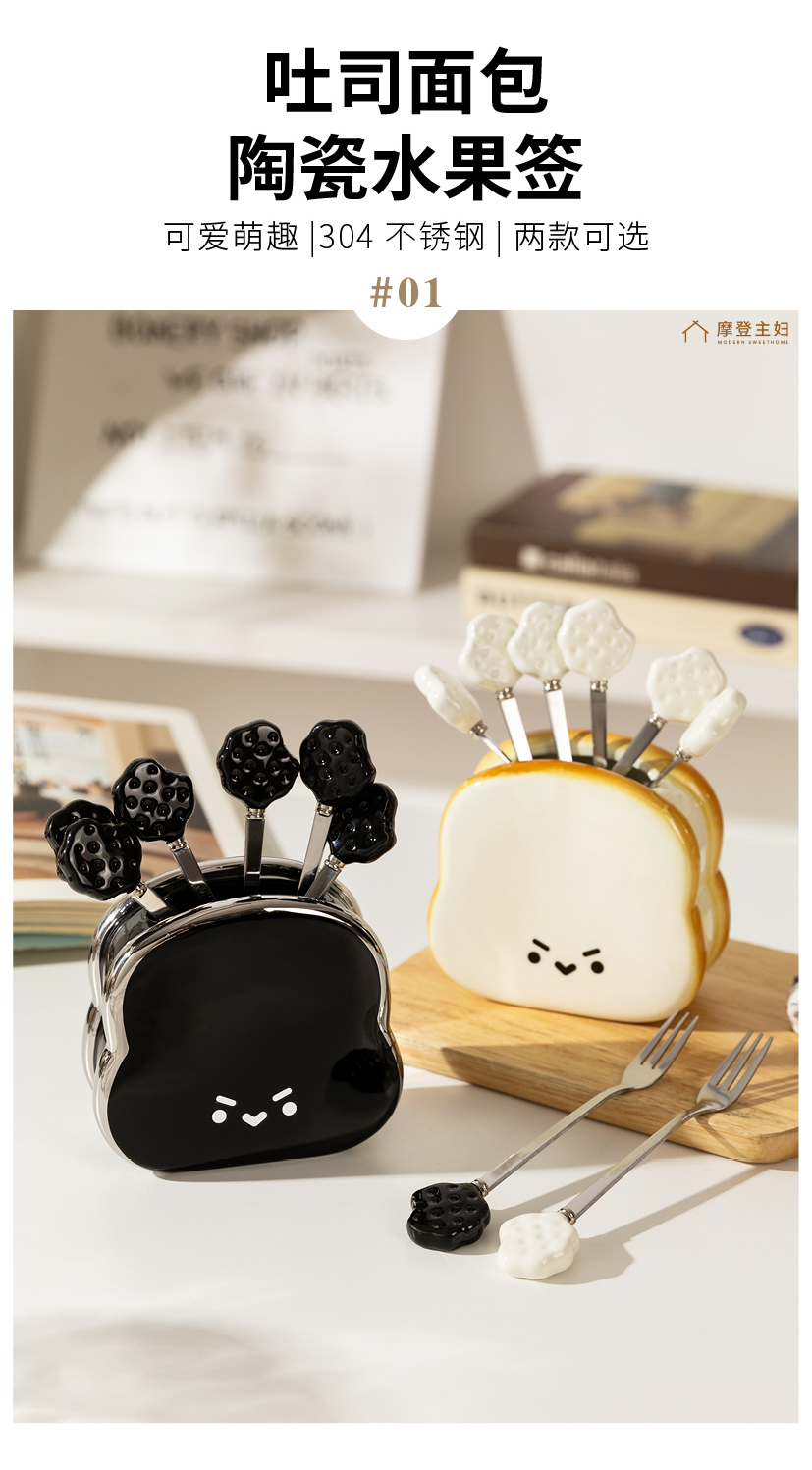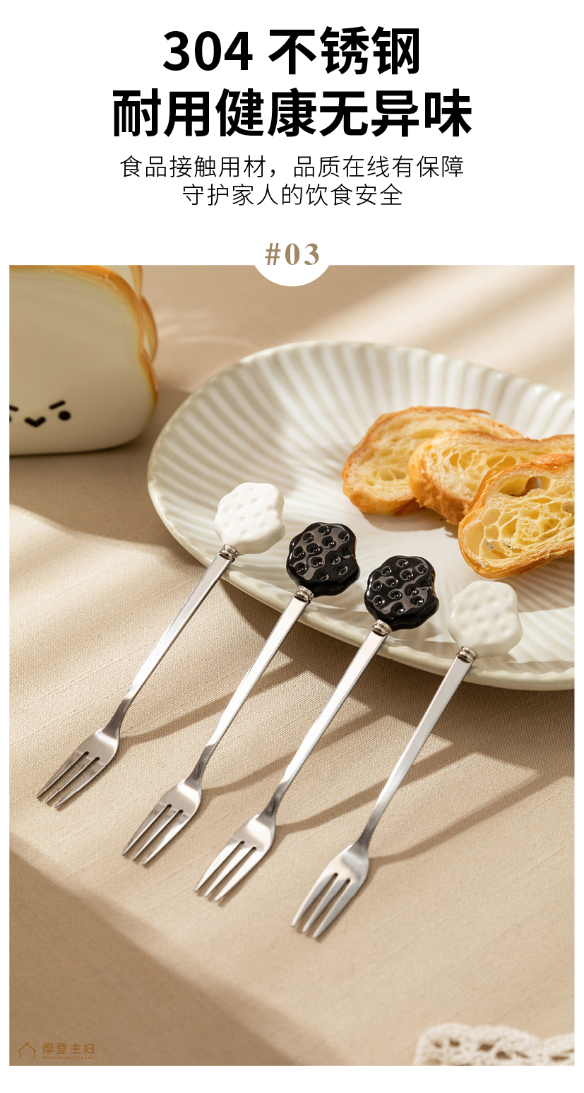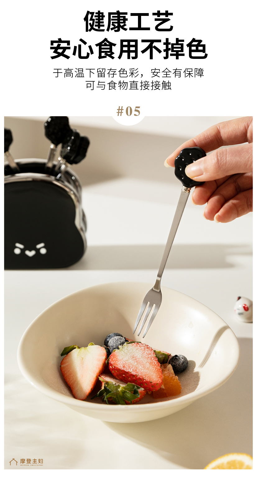 摩登主妇水果叉子收纳罐不锈钢水果签轻奢高级感可爱儿童甜品叉子