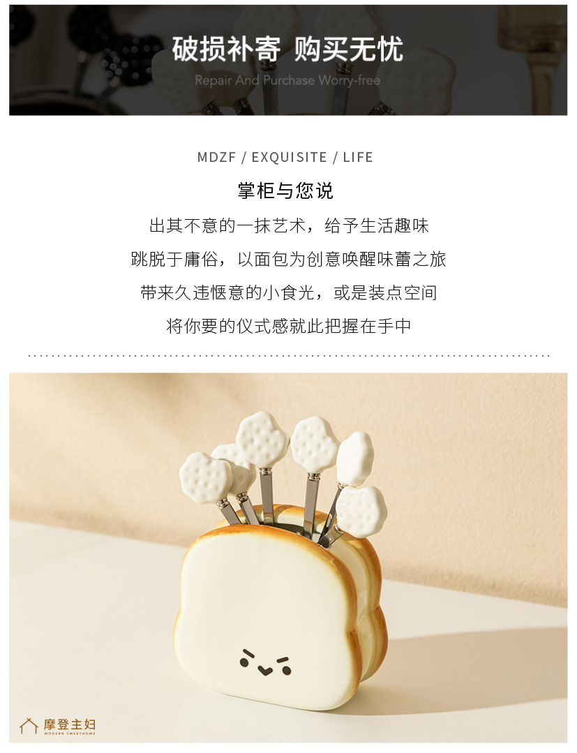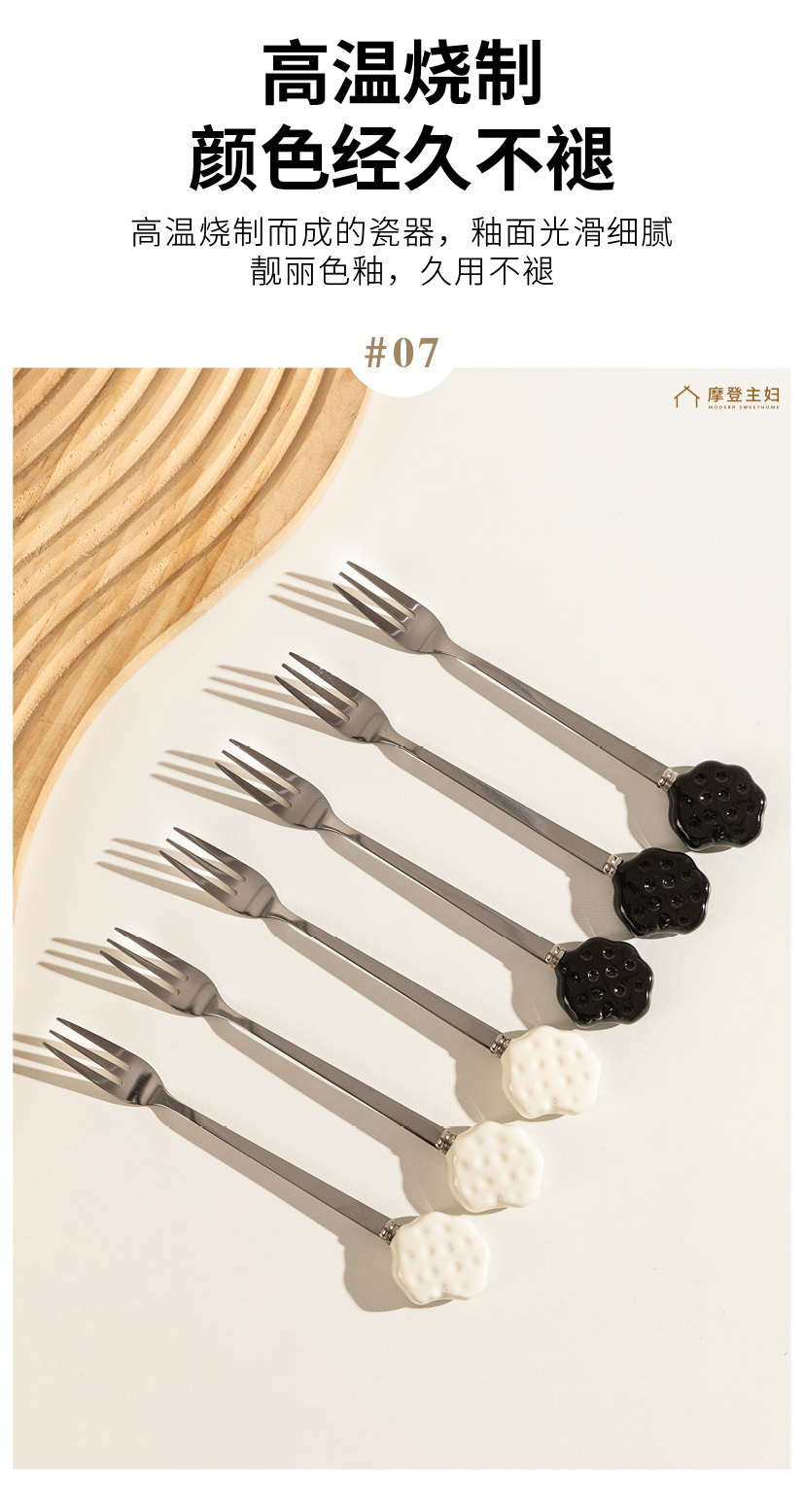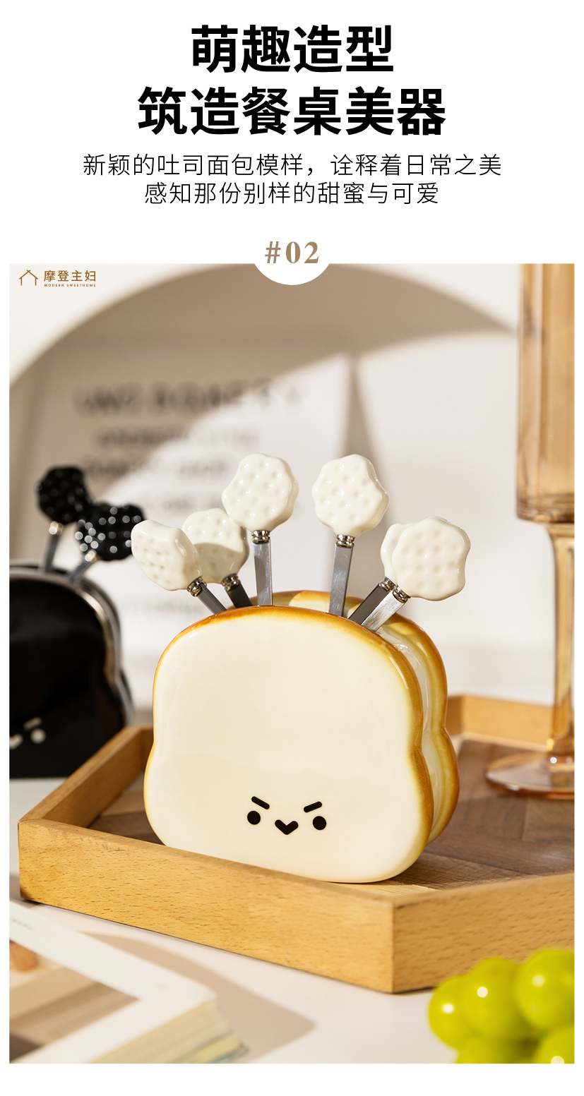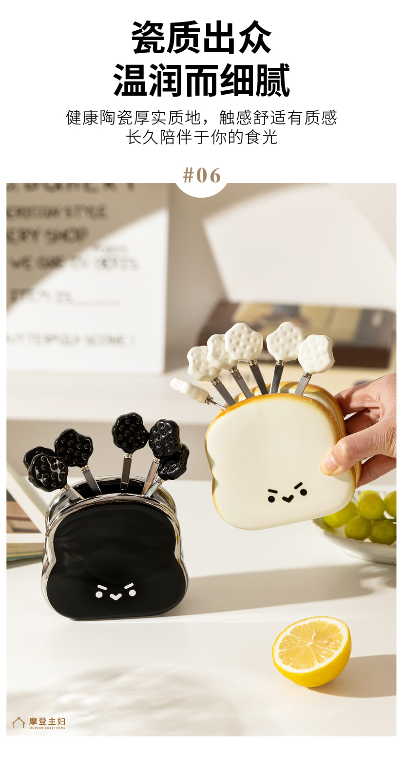 摩登主妇水果叉子收纳罐不锈钢水果签轻奢高级感可爱儿童甜品叉子