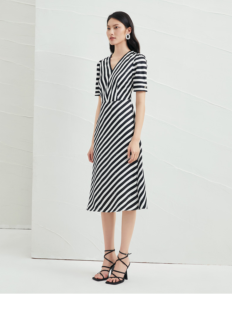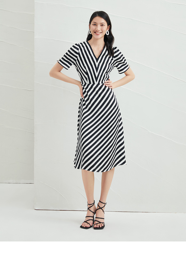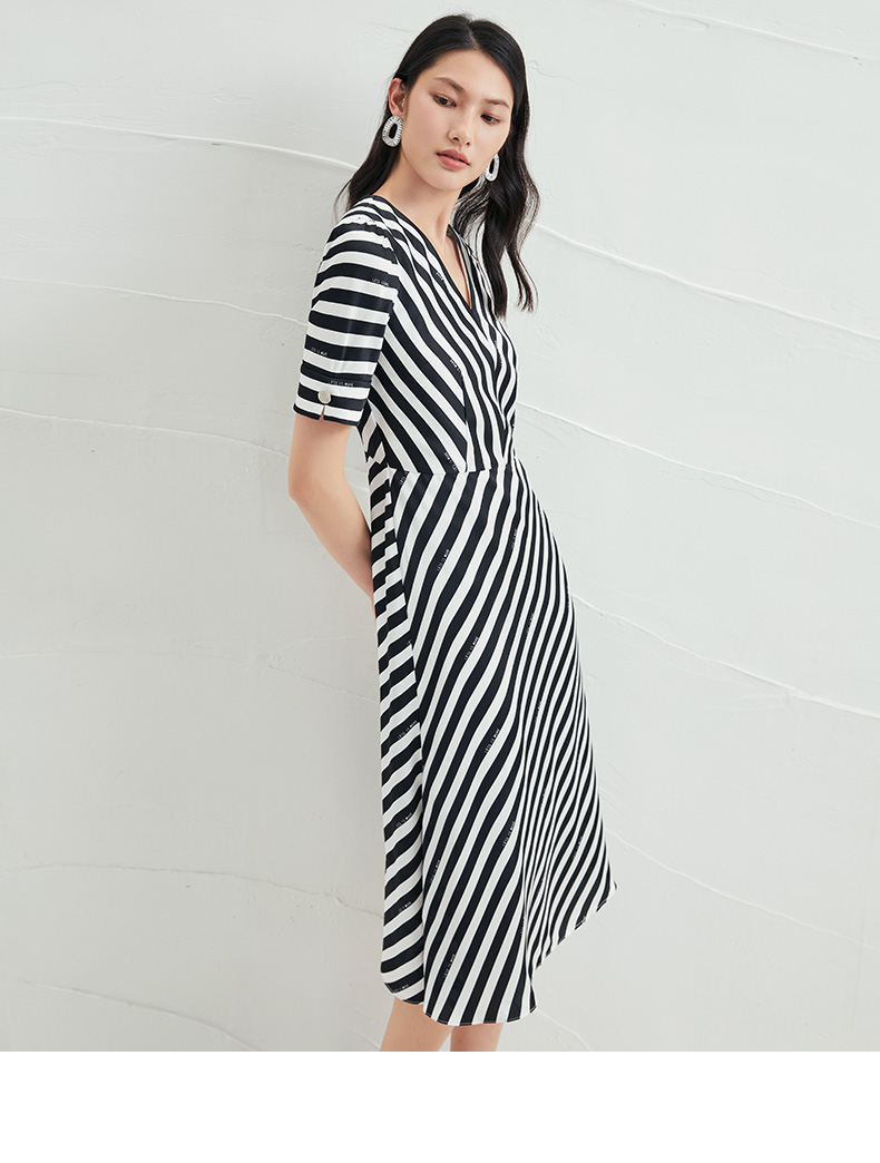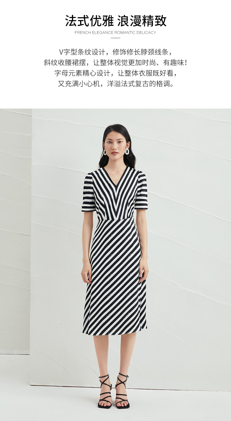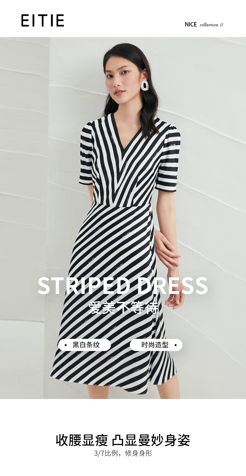 EITIE爱特爱春季新款翻领绣花A字连衣裙中长款女A2007421